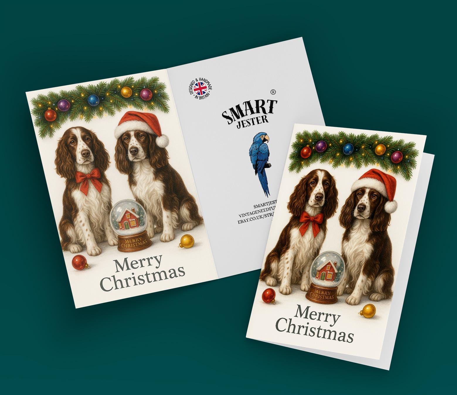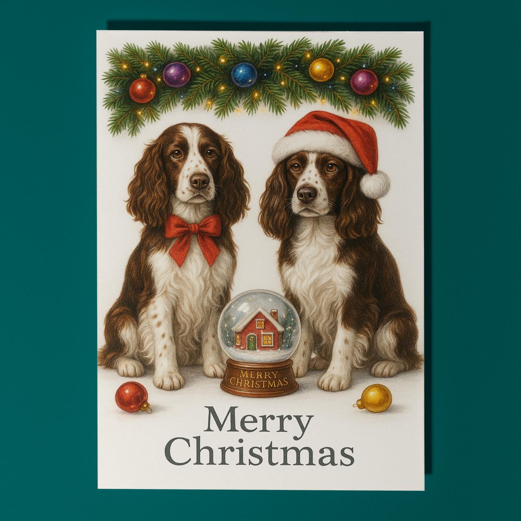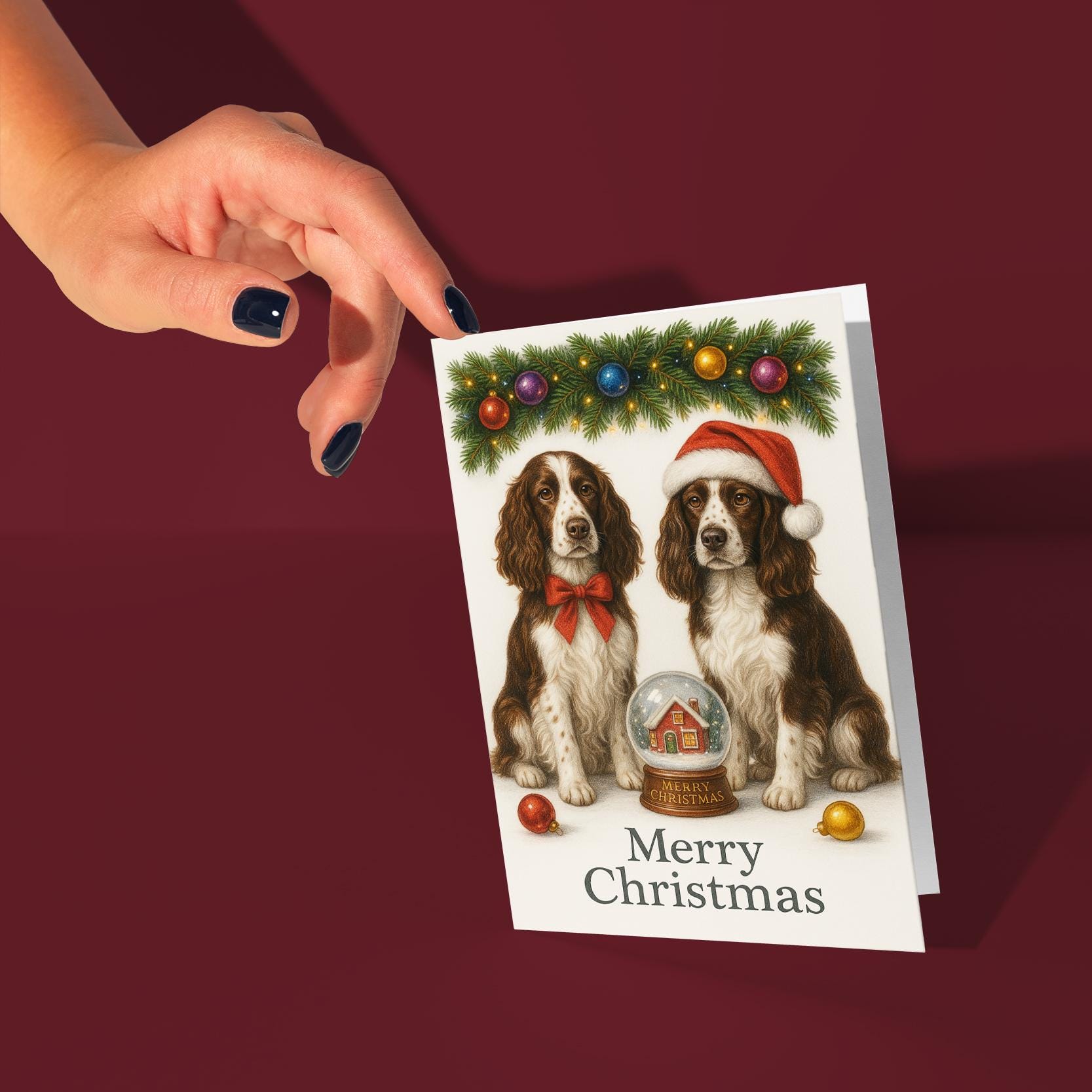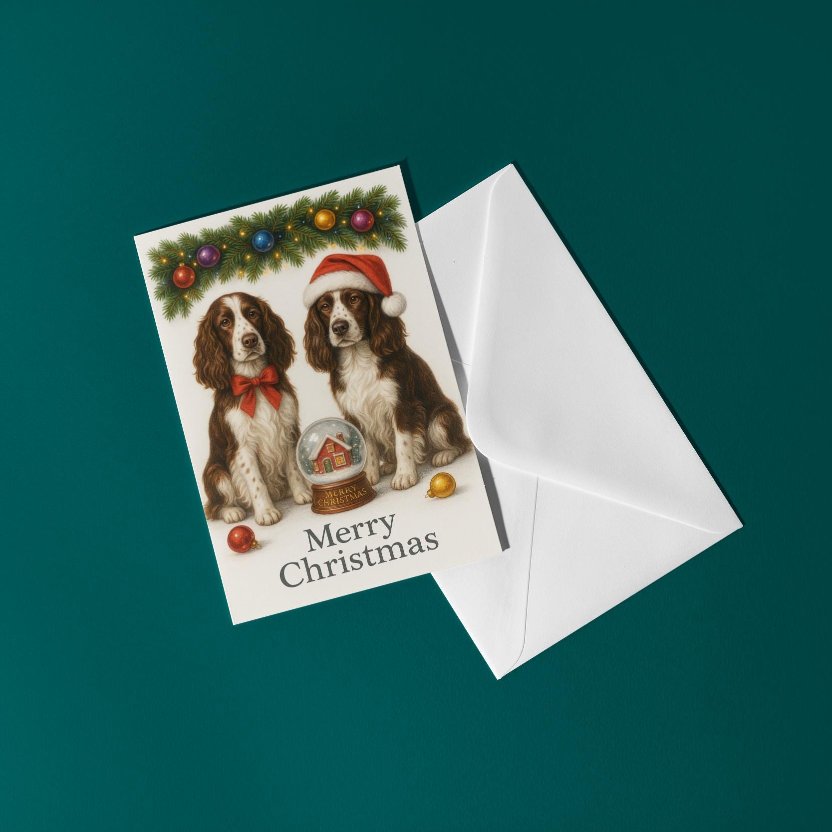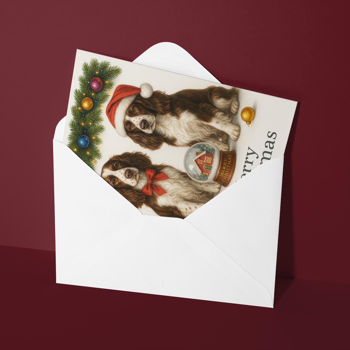 BLANK INTERIOR FOR A PERSONAL TOUCH: Part of the - Dog Breeds Collection - Santa’s Helpers Collection - Springer Spaniel Dogs Duo - Cozy Nose and Snow Globe - Merry Christmas! Card and other whimsical designs feature a blank interior, giving you ample space to write a personal message from the heart. Perfect for any occasion, each card comes with a matching white envelope, making it easy to send your unique sentiments to loved ones.