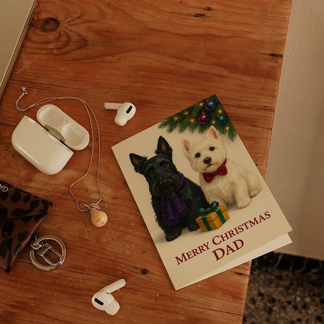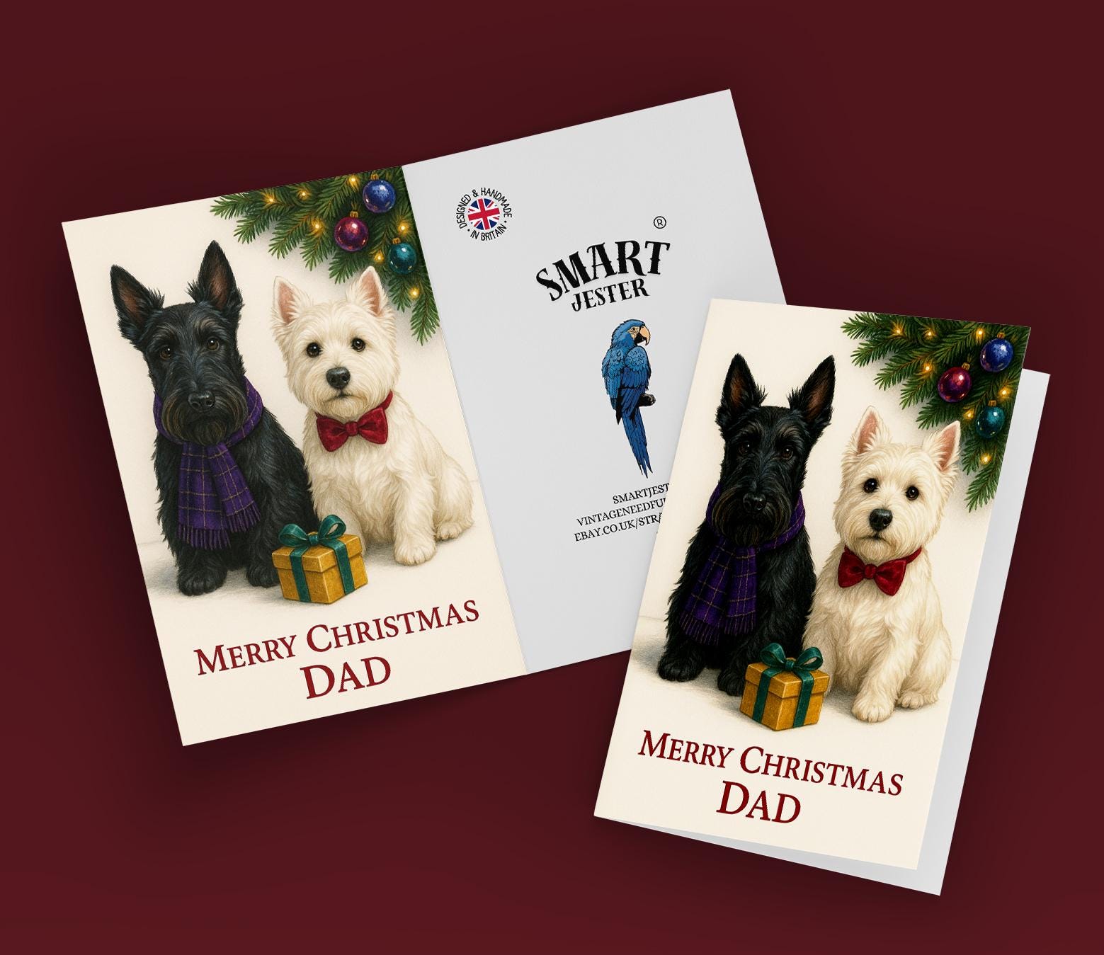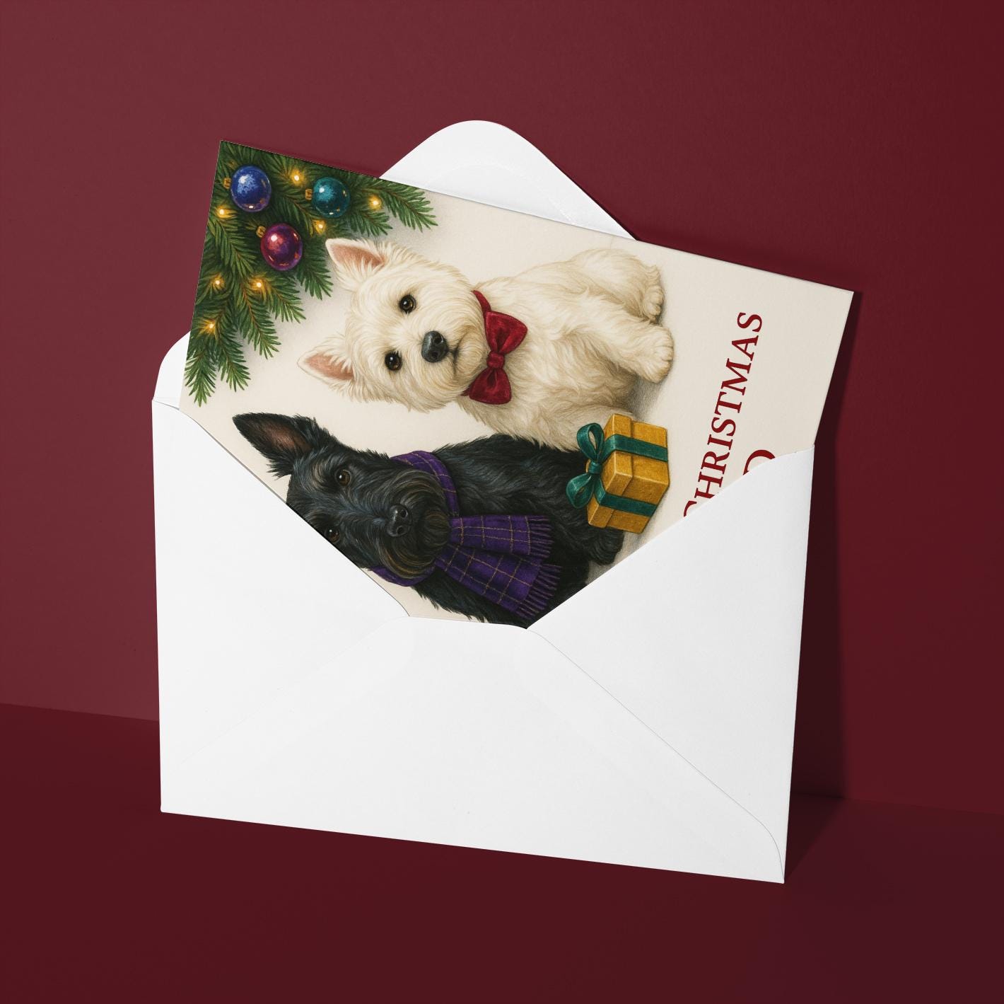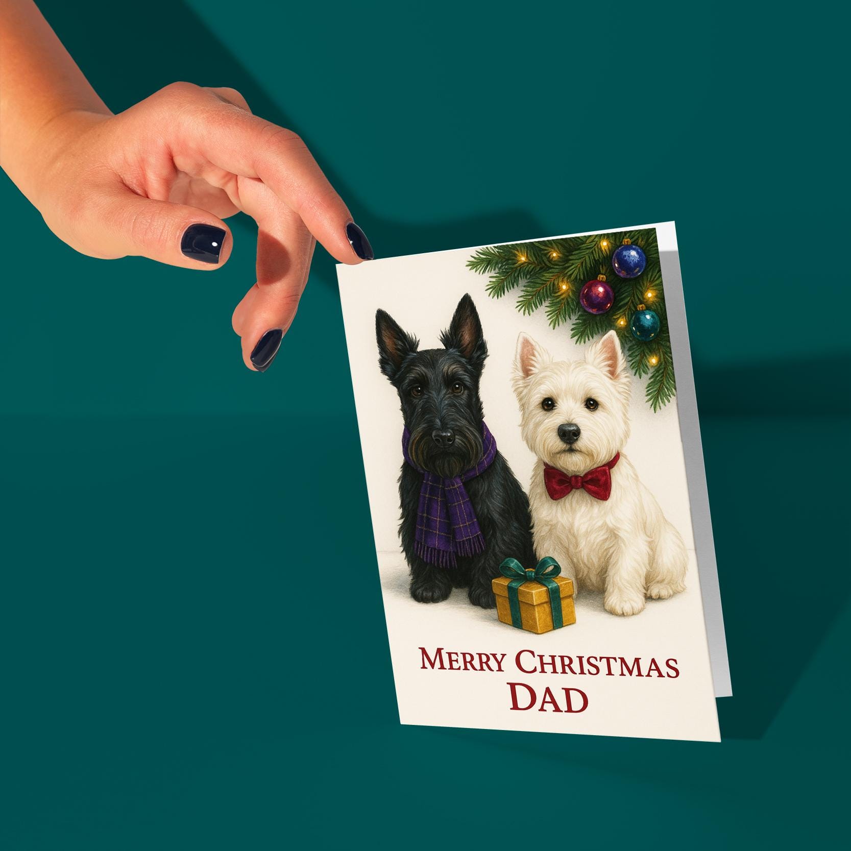 BLANK INTERIOR FOR A PERSONAL TOUCH: Part of the - Dog Breeds Collection - Santa’s Helpers Collection - West highland white terrier and Scottish Terrier Dogs Duo - Merry Christmas Dad Card and other whimsical designs feature a blank interior, giving you ample space to write a personal message from the heart. Perfect for any occasion, each card comes with a matching white envelope, making it easy to send your unique sentiments to loved ones.