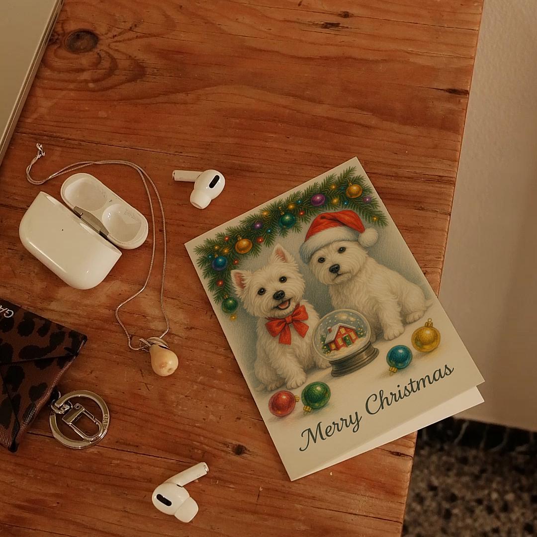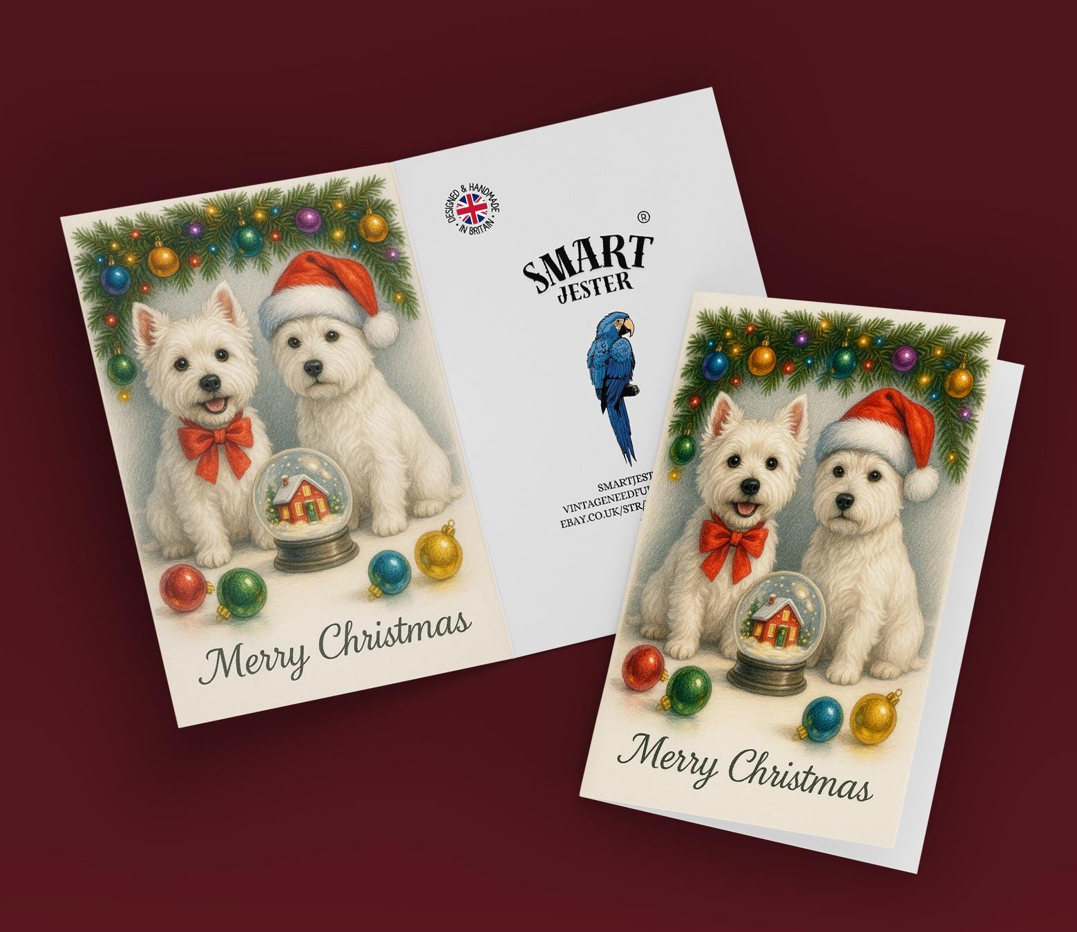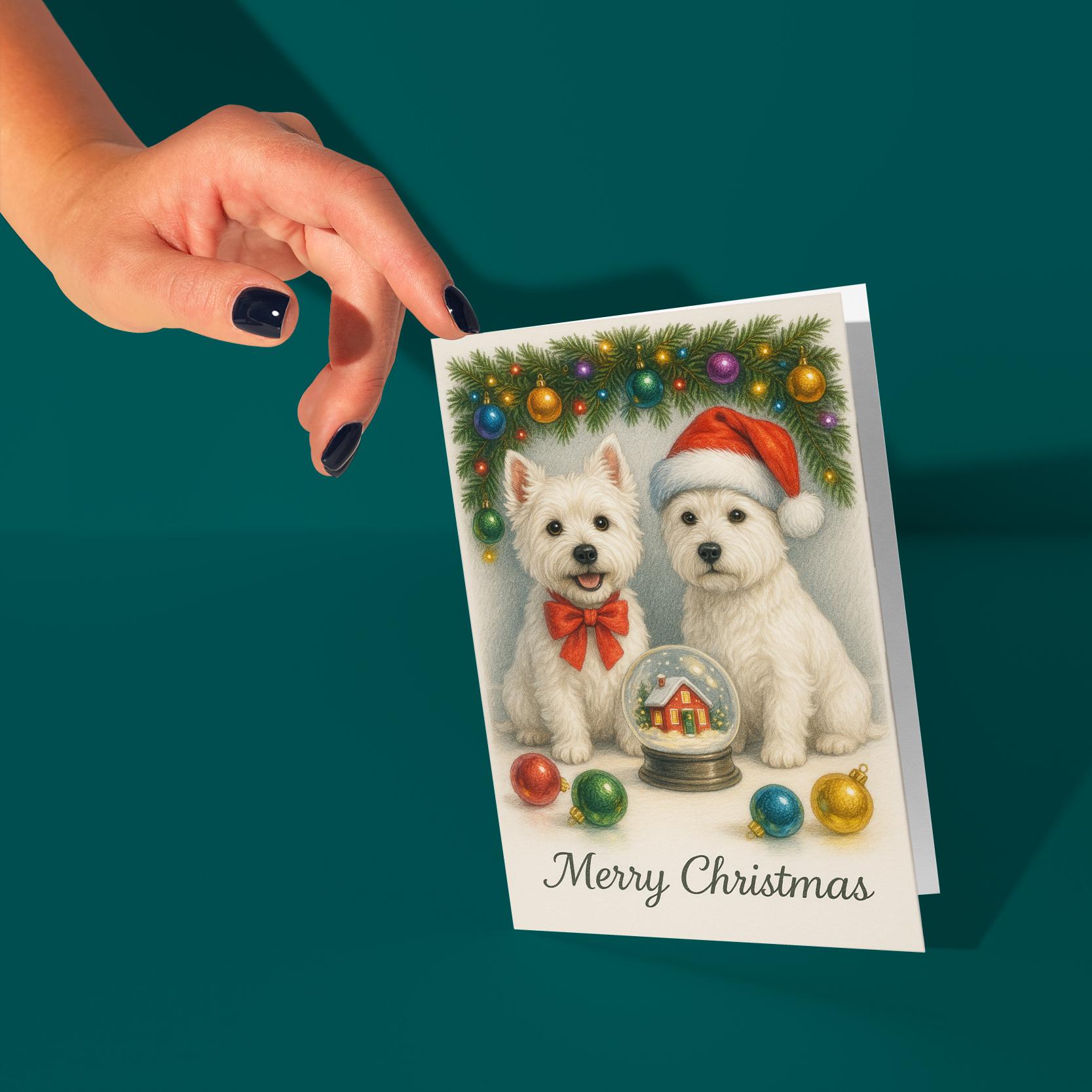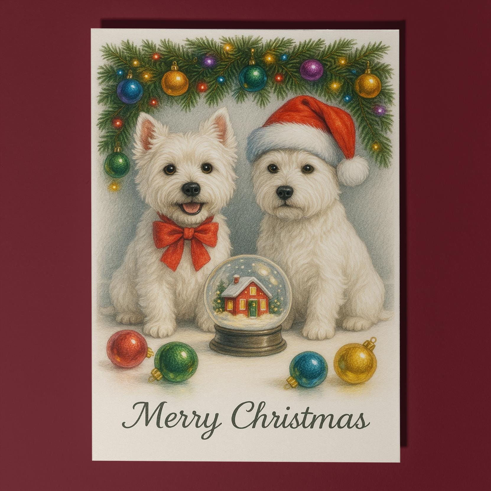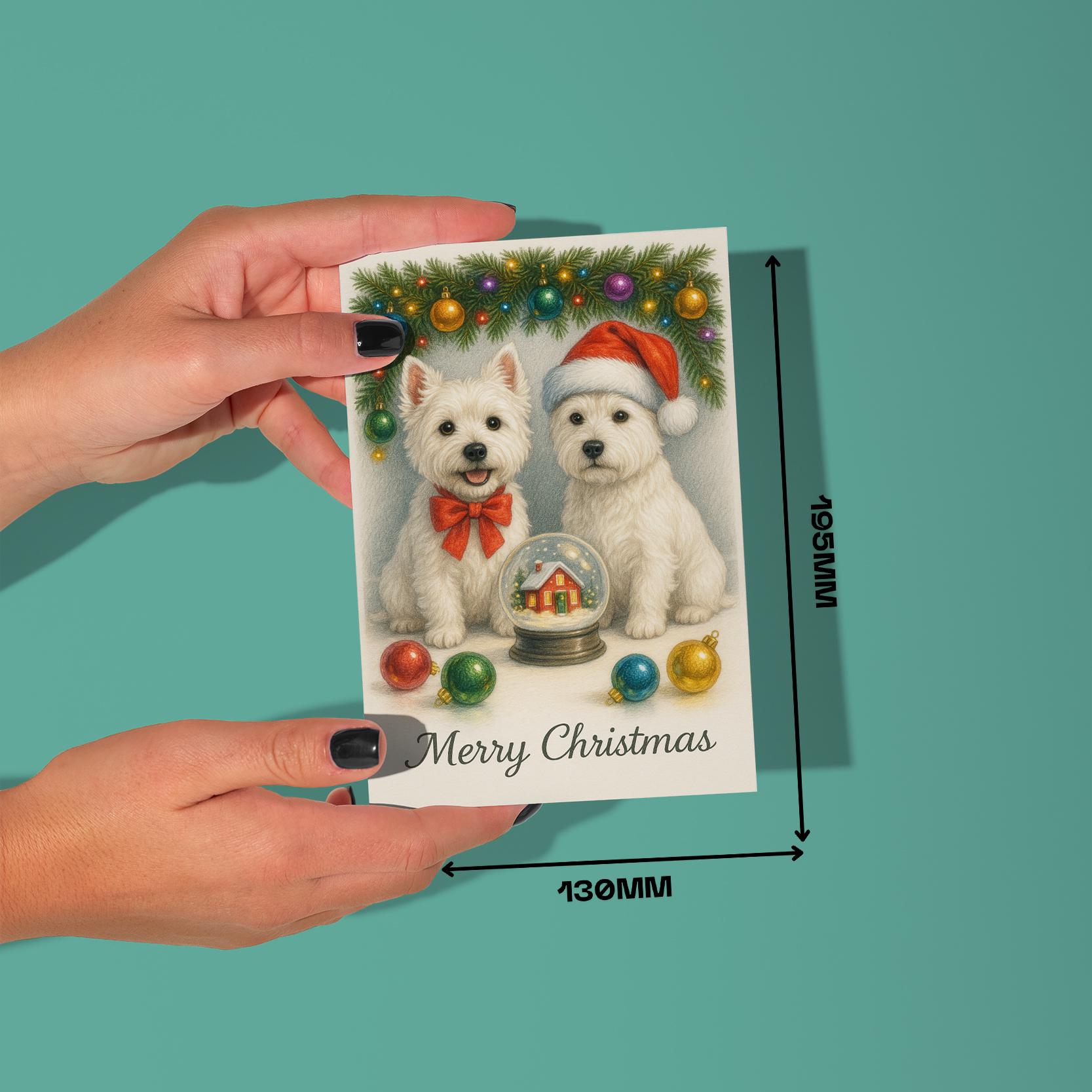 BLANK INTERIOR FOR A PERSONAL TOUCH: Part of the - Dog Breeds Collection - Santa’s Helpers Collection - West Highland Terriers Dogs Duo - Cozy Nose and Snow Globe - Merry Christmas! Card and other whimsical designs feature a blank interior, giving you ample space to write a personal message from the heart. Perfect for any occasion, each card comes with a matching white envelope, making it easy to send your unique sentiments to loved ones.