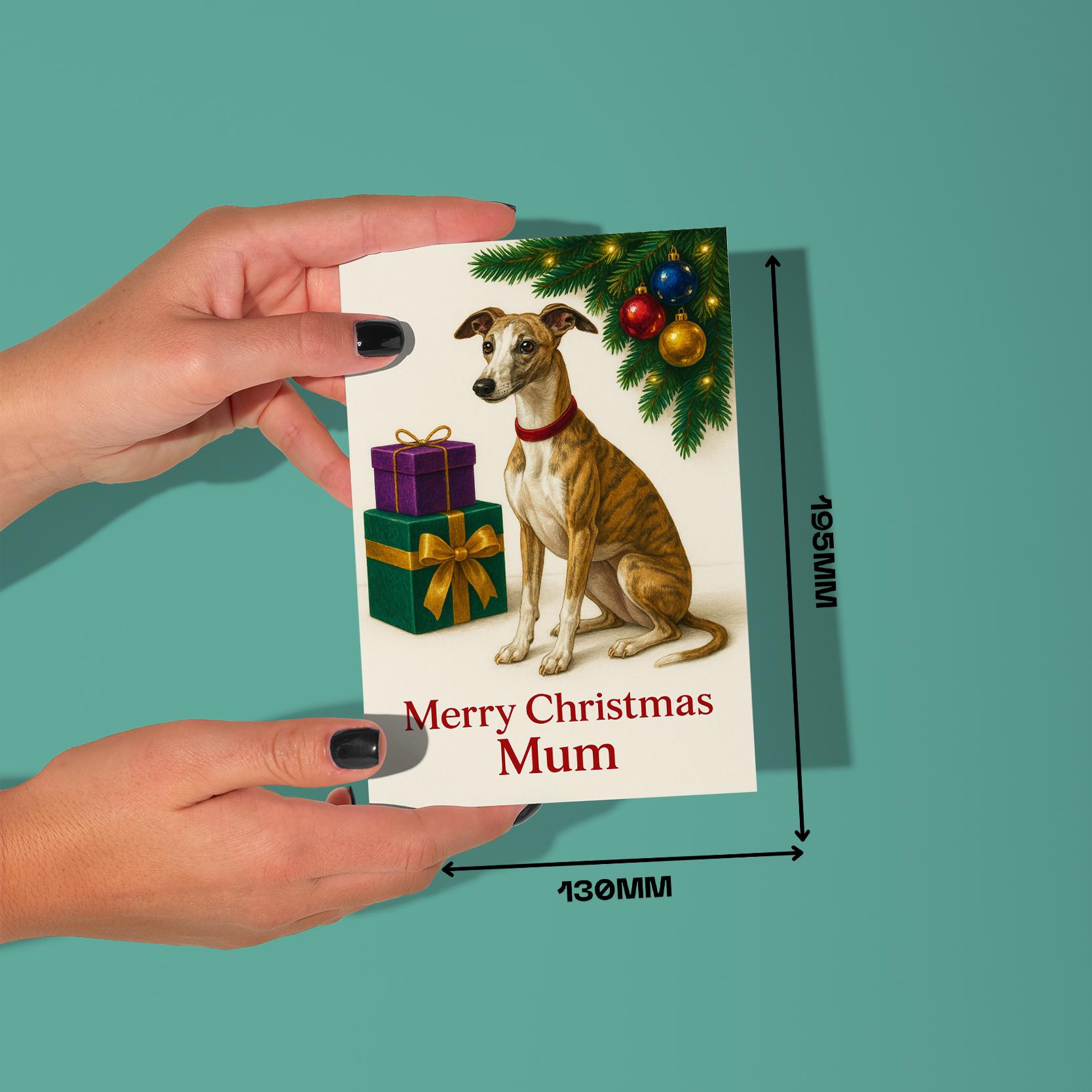 BLANK INTERIOR FOR A PERSONAL TOUCH: Part of the - Dog Breeds Collection - Santa’s Helpers Collection - Whippet Dog - Merry Christmas Mum Card and other whimsical designs feature a blank interior, giving you ample space to write a personal message from the heart. Perfect for any occasion, each card comes with a matching white envelope, making it easy to send your unique sentiments to loved ones.