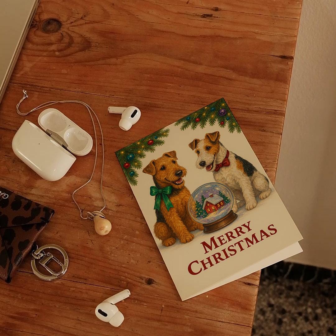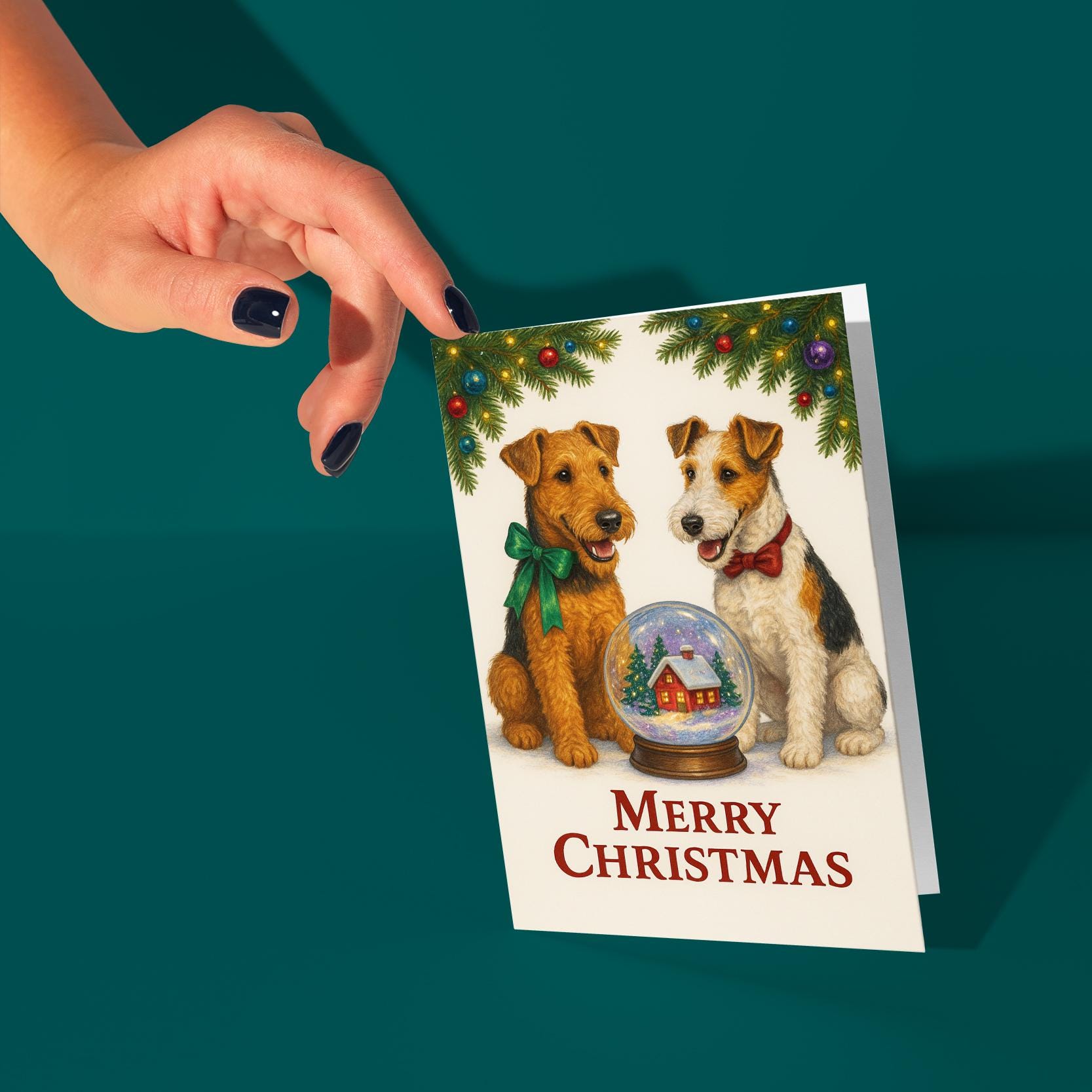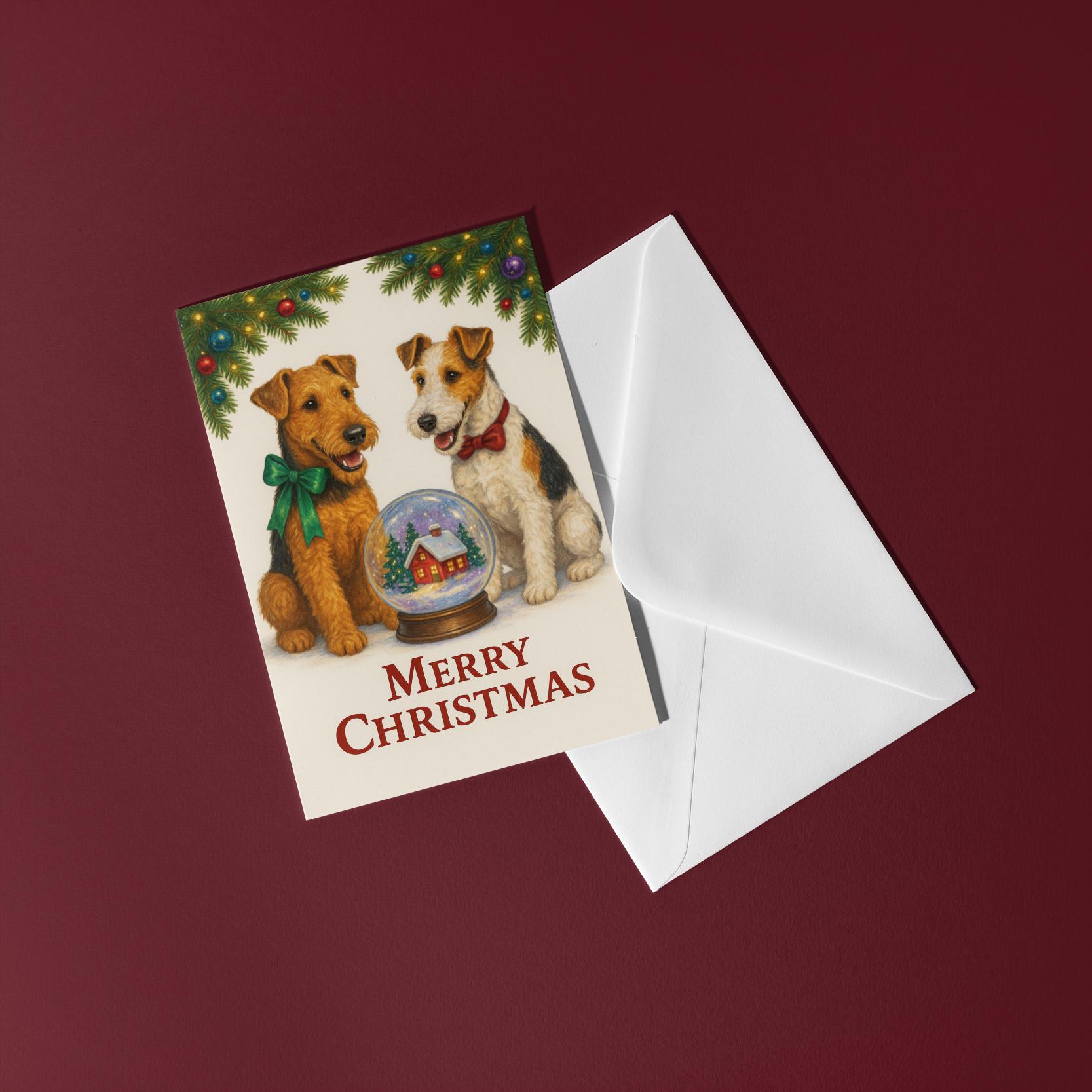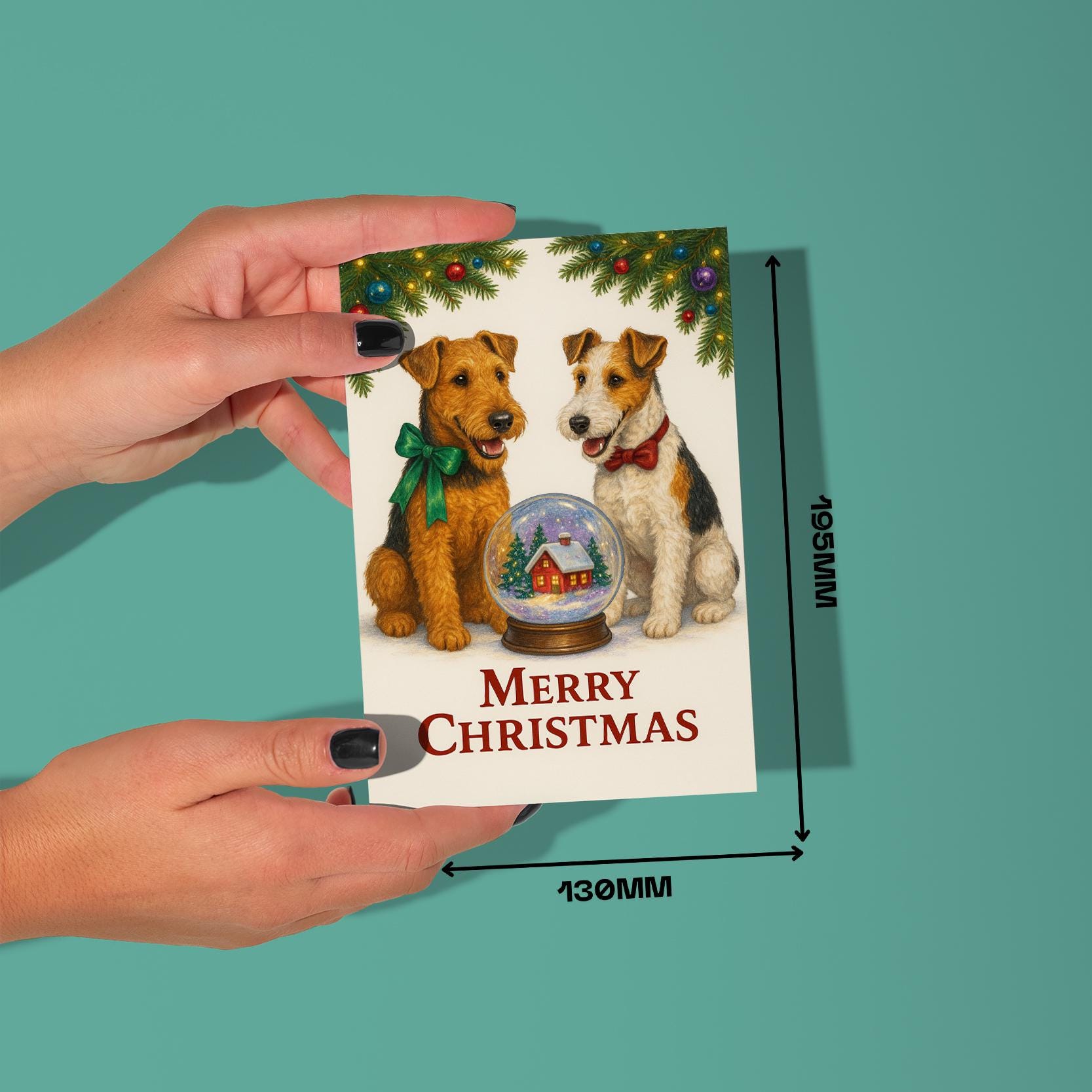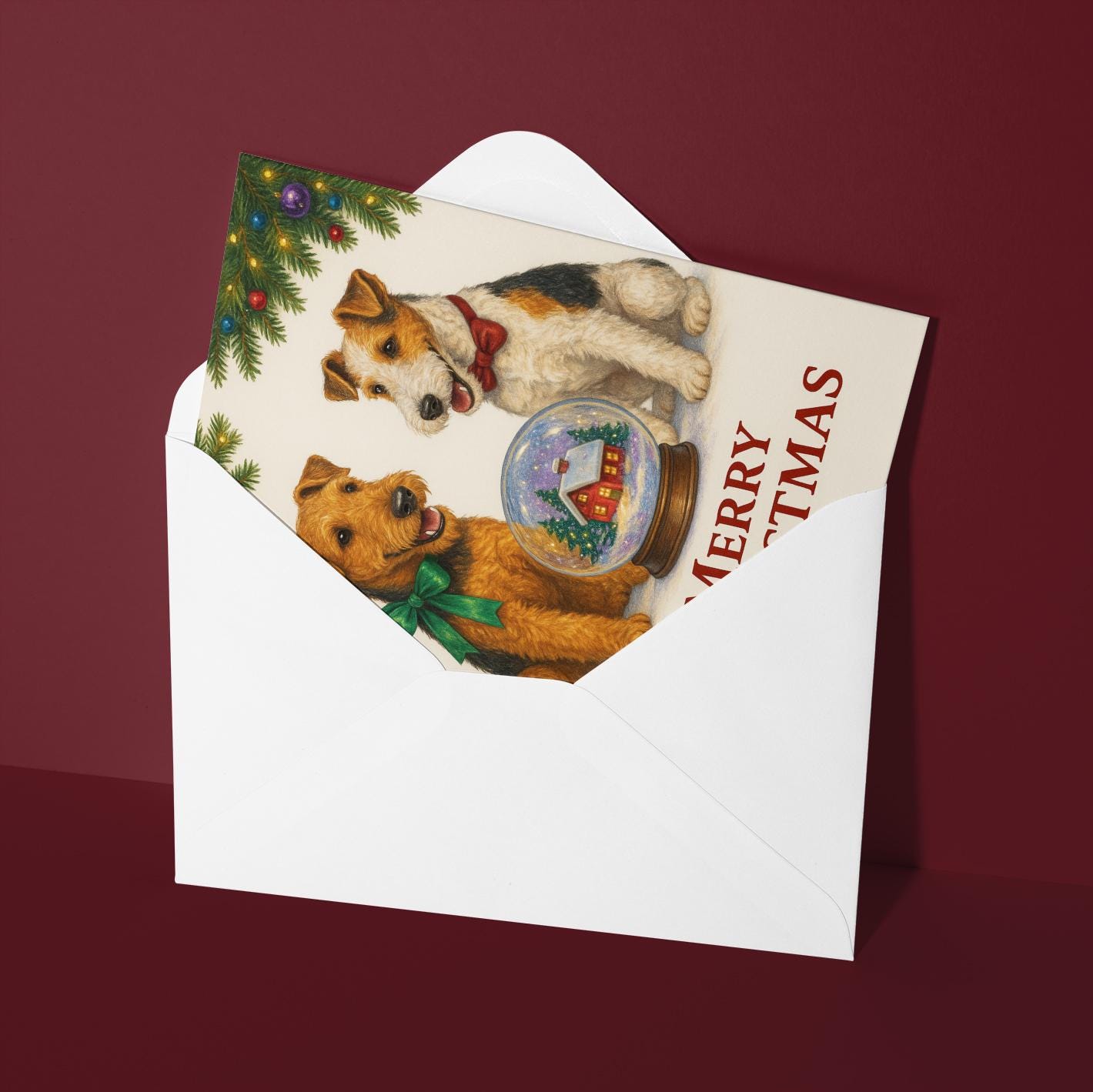 BLANK INTERIOR FOR A PERSONAL TOUCH: Part of the - Dog Breeds Collection - Santa’s Helpers Collection - Airedale Terrier and Wire Fox Terrier Dogs Duo - Cozy Nose and Snow Globe - Merry Christmas! Card and other whimsical designs feature a blank interior, giving you ample space to write a personal message from the heart. Perfect for any occasion, each card comes with a matching white envelope, making it easy to send your unique sentiments to loved ones.