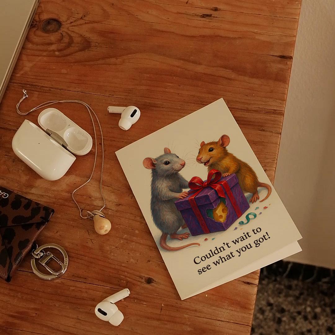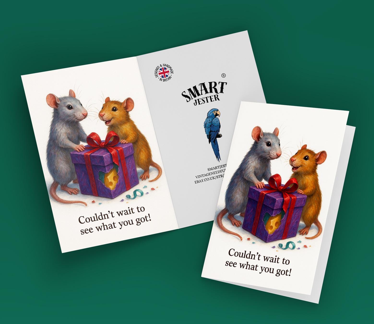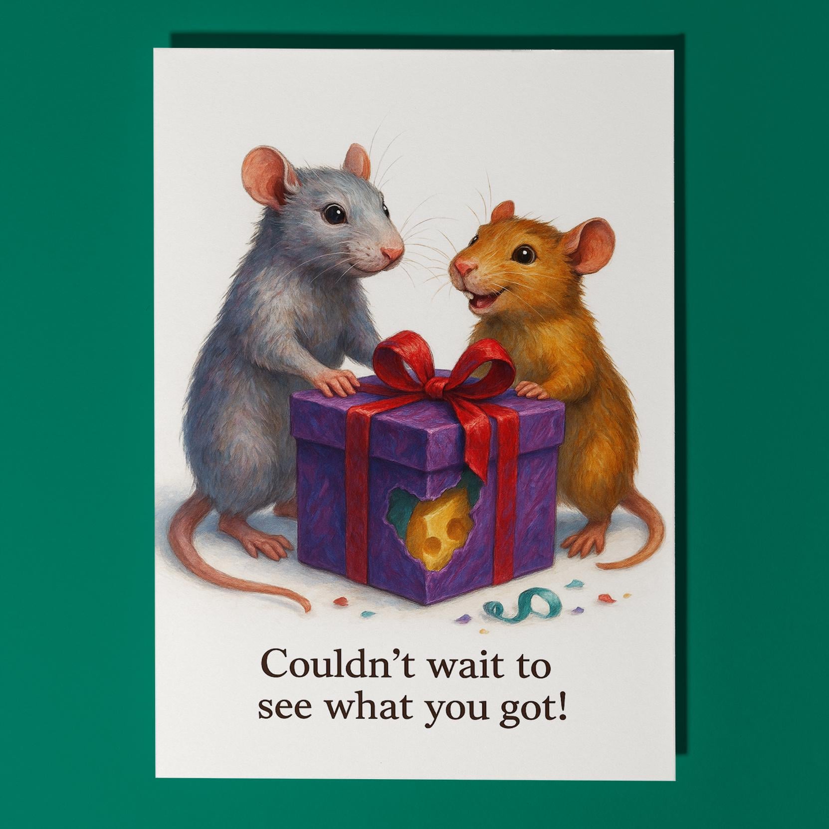 BLANK INTERIOR FOR A PERSONAL TOUCH: Our Rats collection - Two Happy Rats - What’s in the Box? Couldn't wait to see what you got - Happy Birthday Card and other whimsical designs feature a blank interior, giving you ample space to write a personal message from the heart. Perfect for any occasion, each card comes with a matching white envelope, making it easy to send your unique sentiments to loved ones