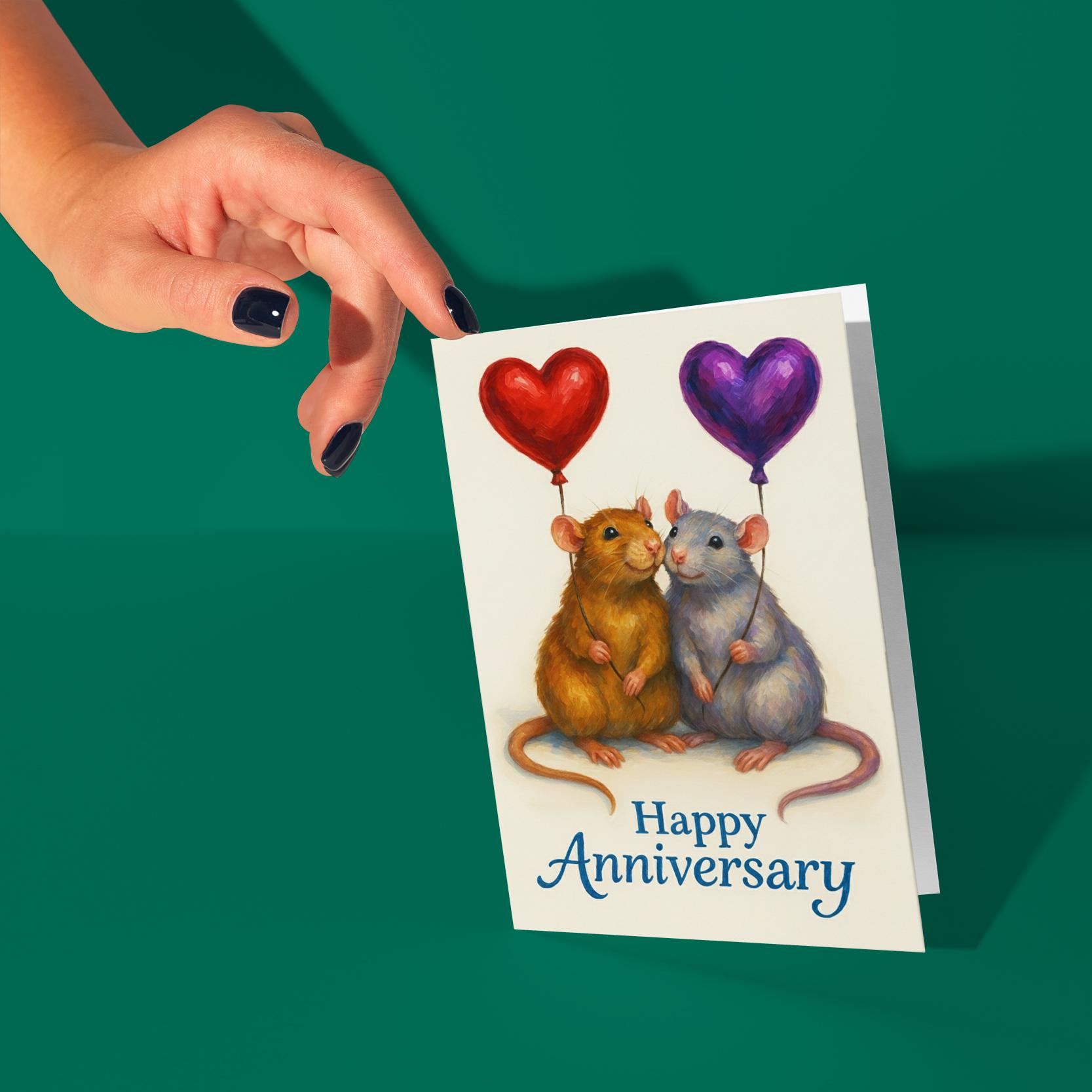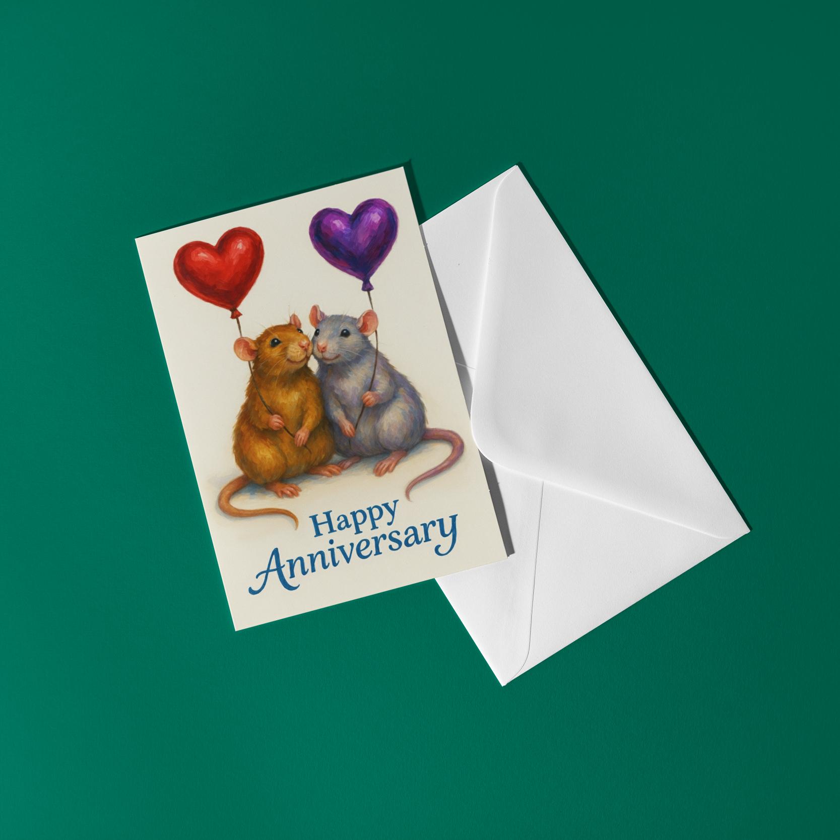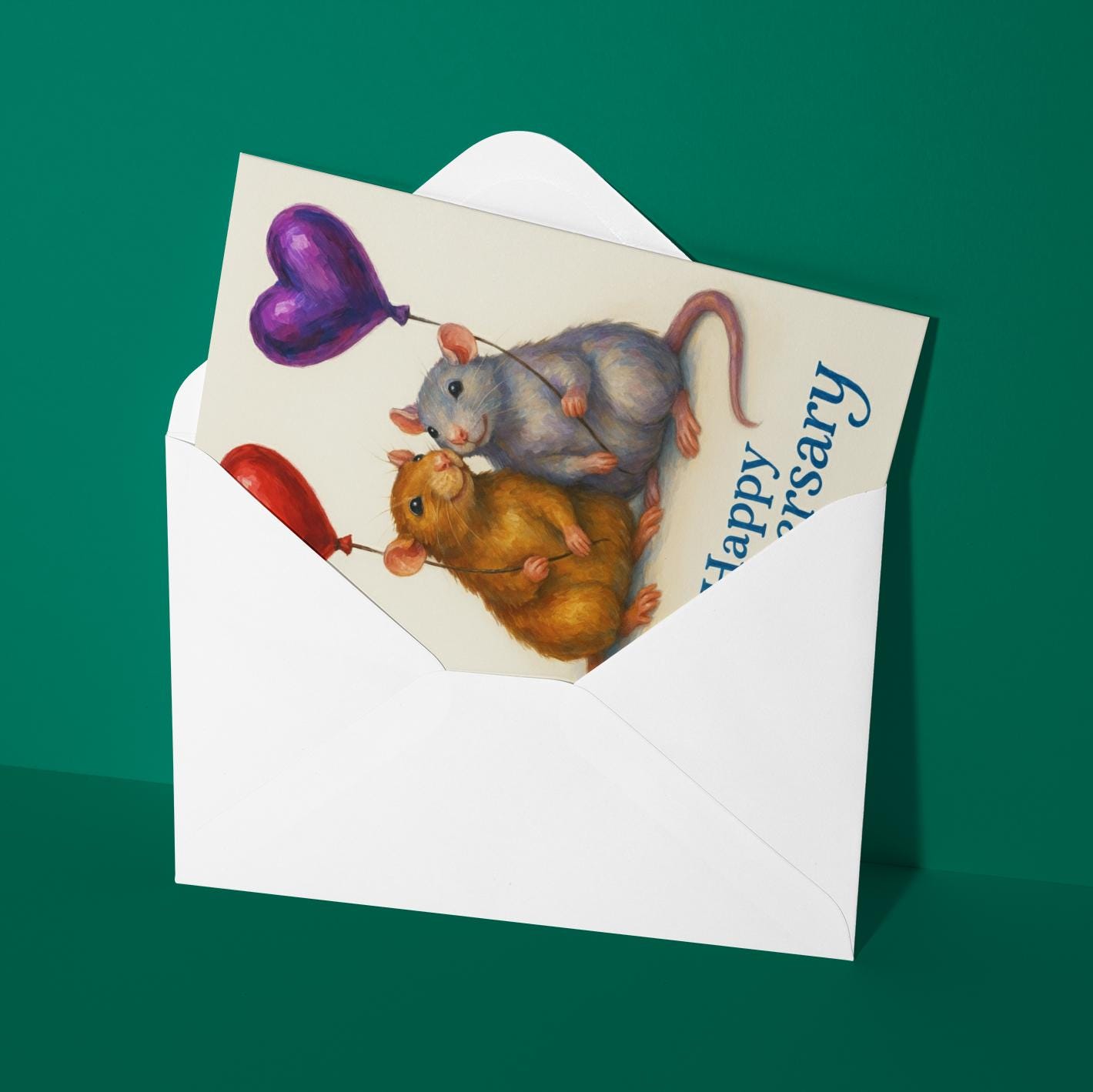 BLANK INTERIOR FOR A PERSONAL TOUCH: Our Rats collection - Two happy rats - Balloon Hearts & Whiskers - Happy Anniversary Card and other whimsical designs feature a blank interior, giving you ample space to write a personal message from the heart. Perfect for any occasion, each card comes with a matching white envelope, making it easy to send your unique sentiments to loved ones