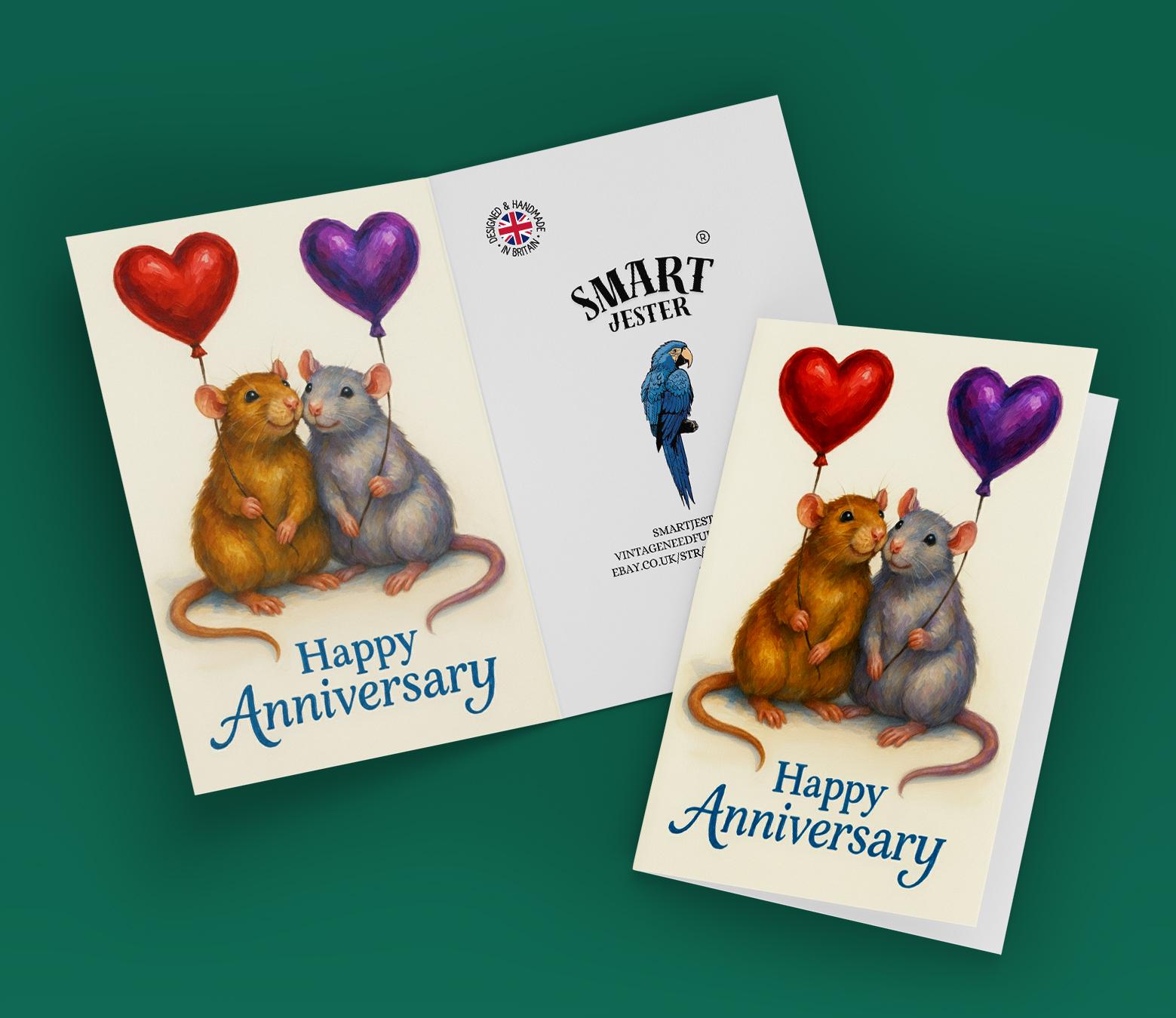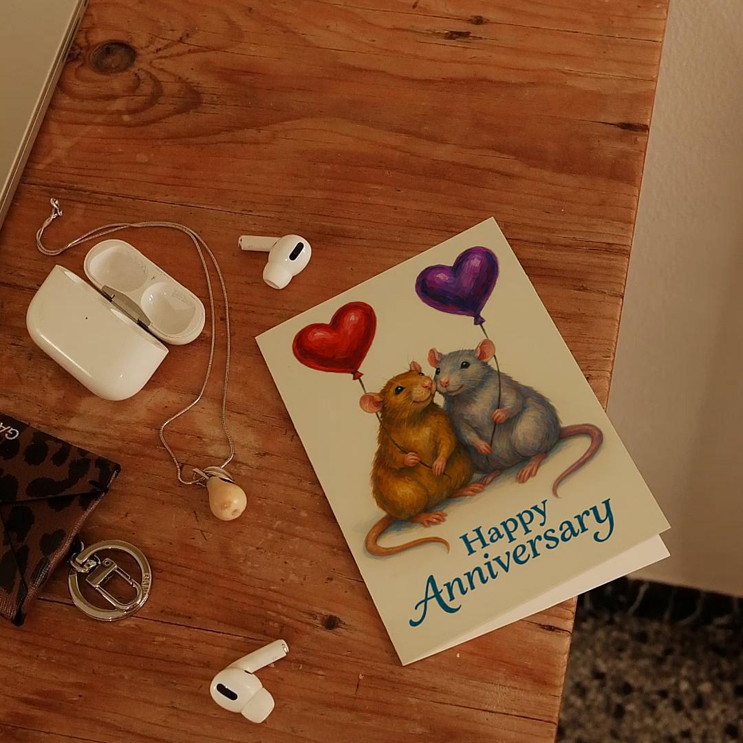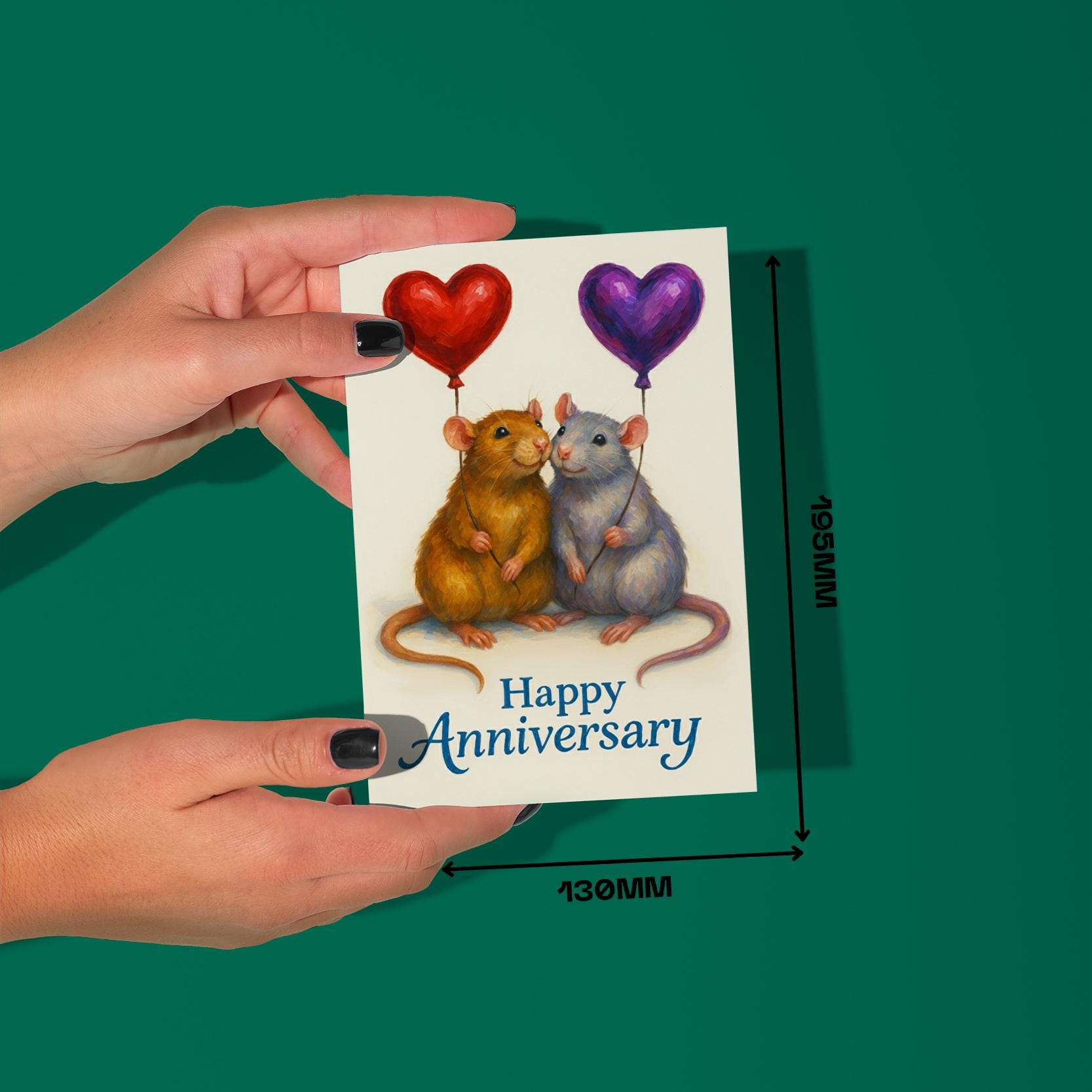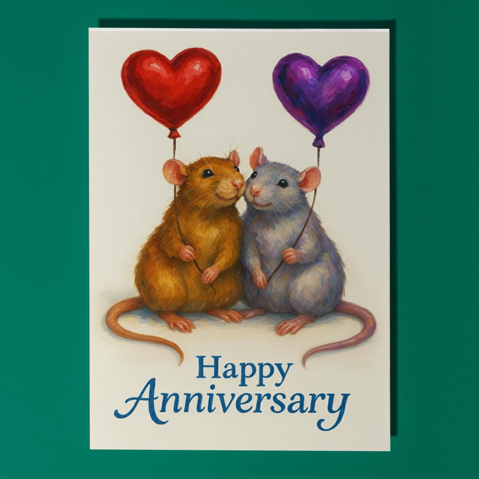 BLANK INTERIOR FOR A PERSONAL TOUCH: Our Rats collection - Two happy rats - Balloon Hearts & Whiskers - Happy Anniversary Card and other whimsical designs feature a blank interior, giving you ample space to write a personal message from the heart. Perfect for any occasion, each card comes with a matching white envelope, making it easy to send your unique sentiments to loved ones
