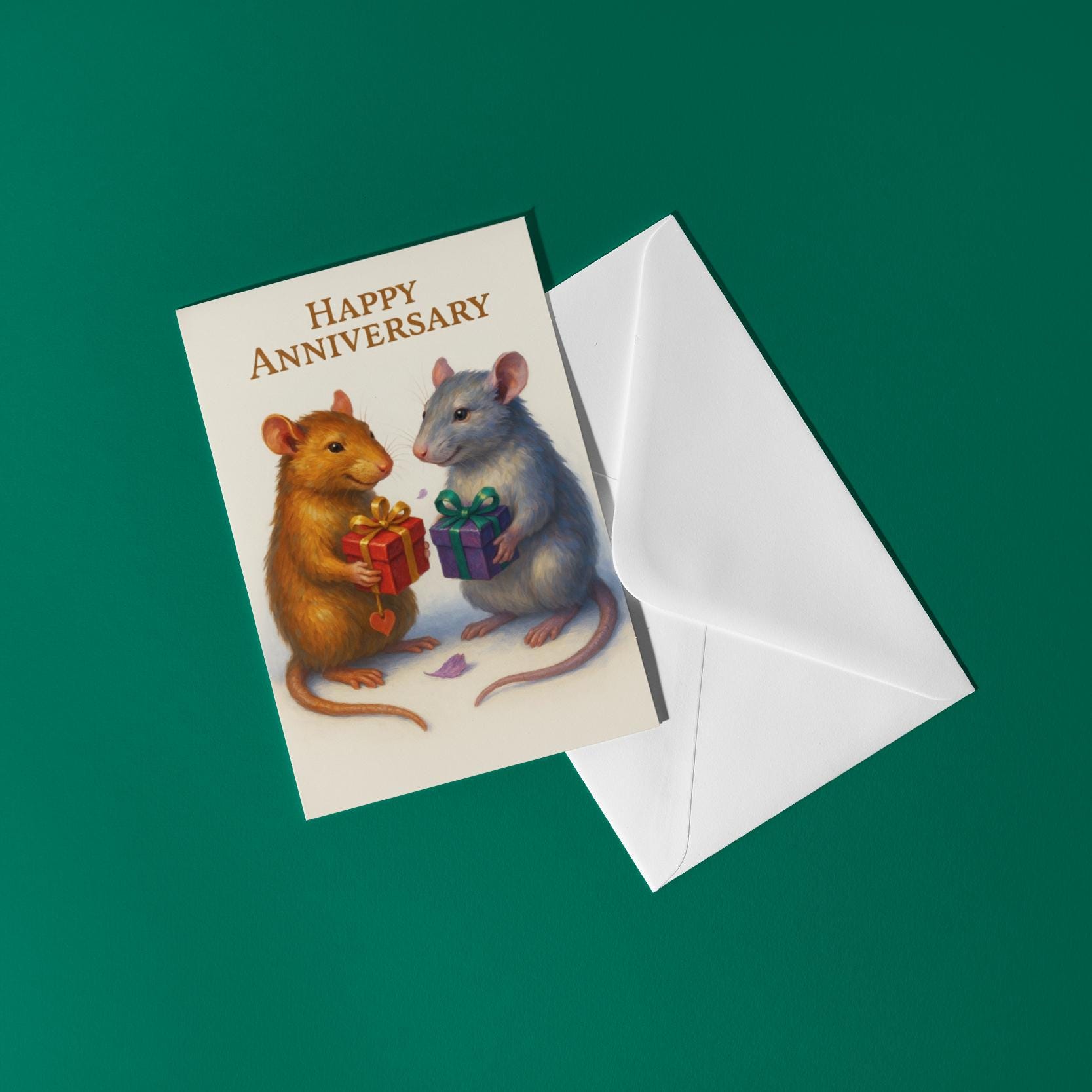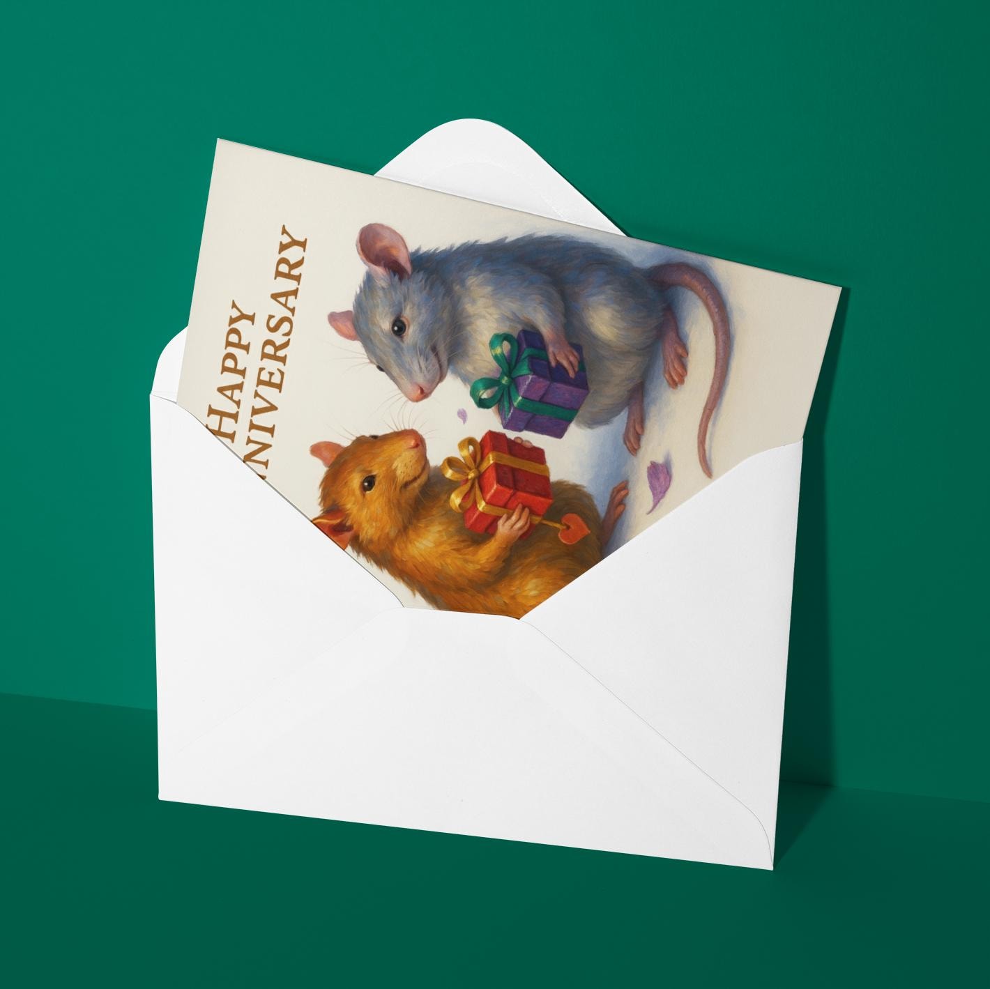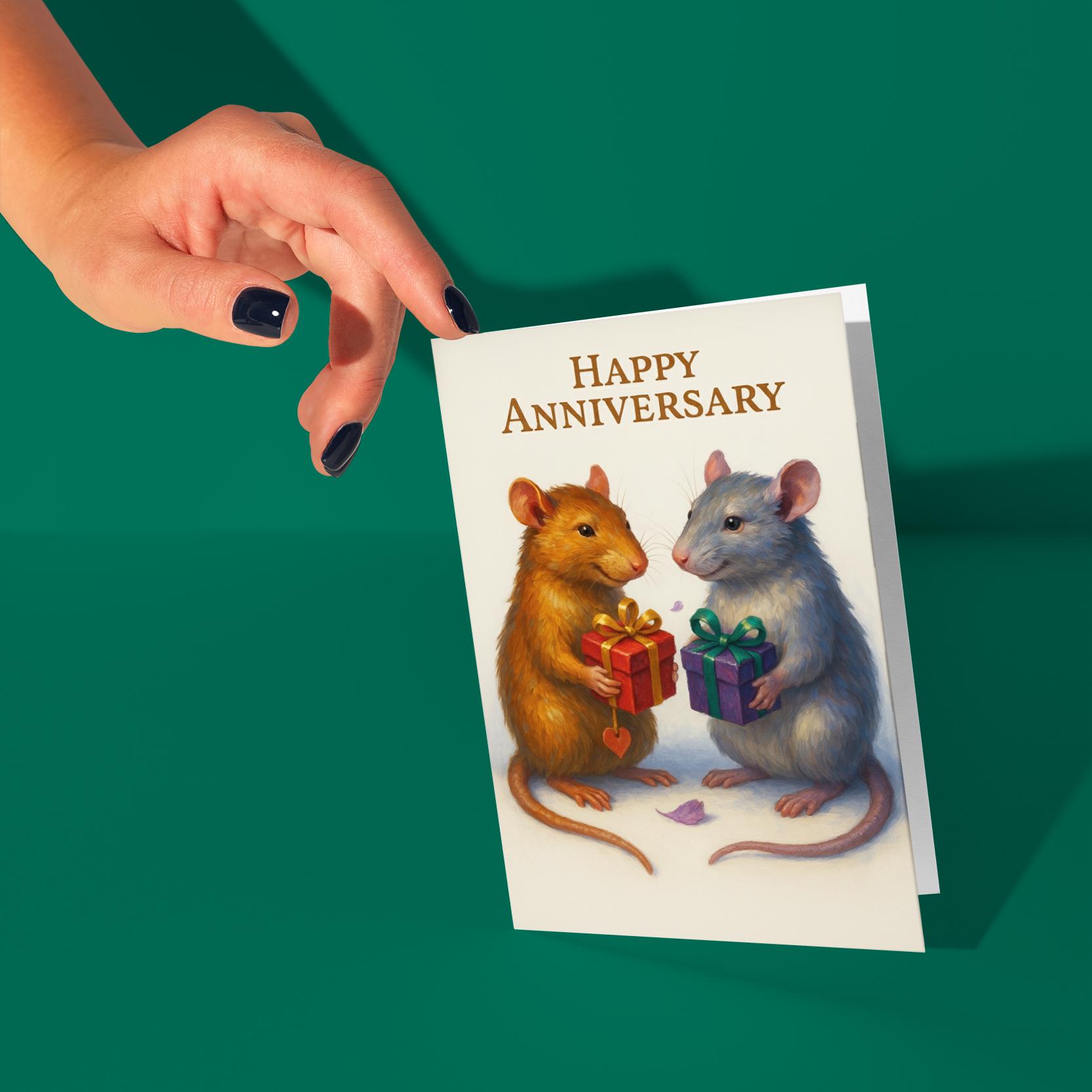 BLANK INTERIOR FOR A PERSONAL TOUCH: Our Rats collection - Two happy rats - You Give, I Give, We Love - Happy Anniversary Card and other whimsical designs feature a blank interior, giving you ample space to write a personal message from the heart. Perfect for any occasion, each card comes with a matching white envelope, making it easy to send your unique sentiments to loved ones