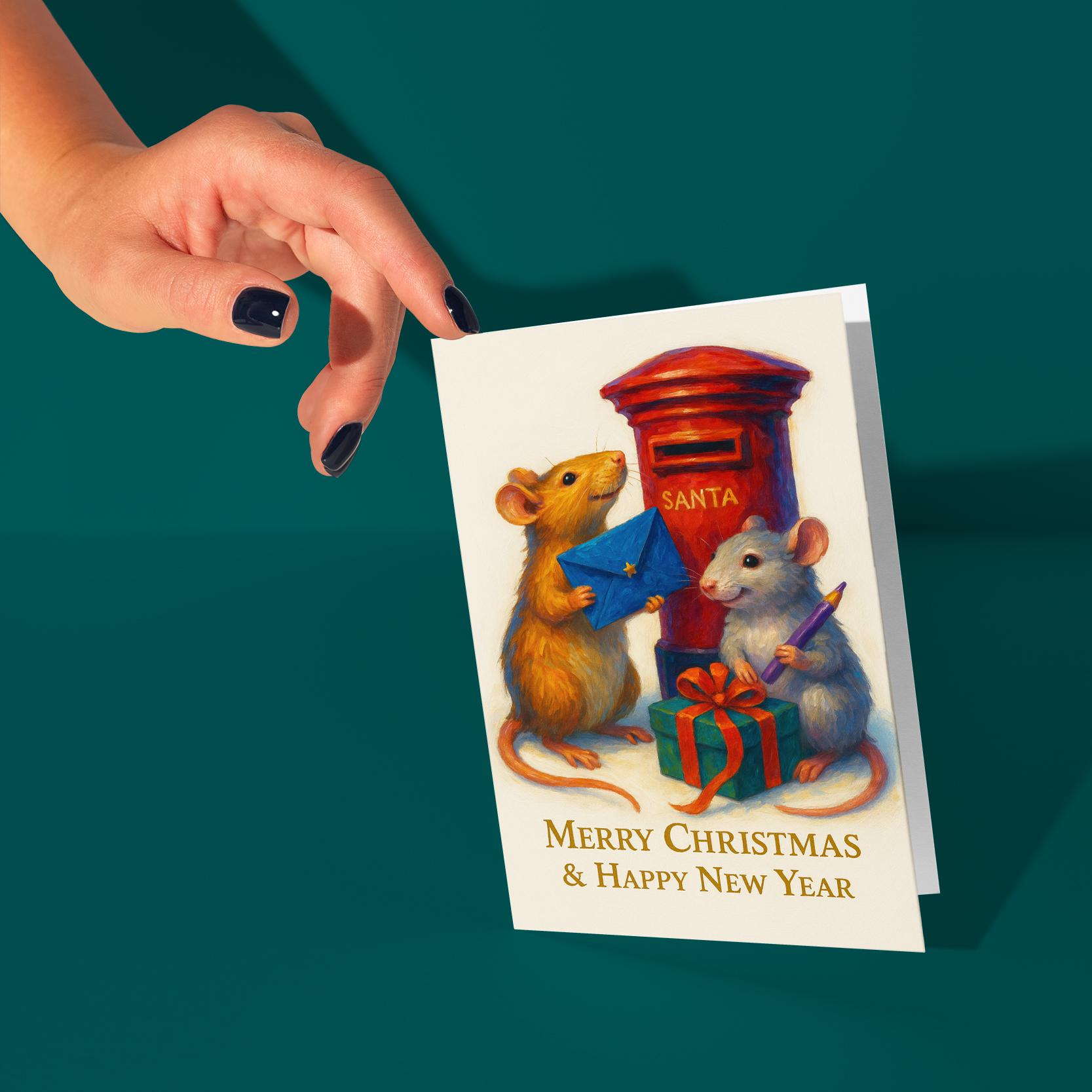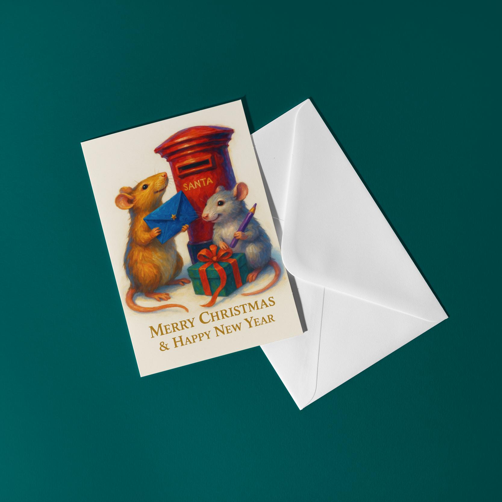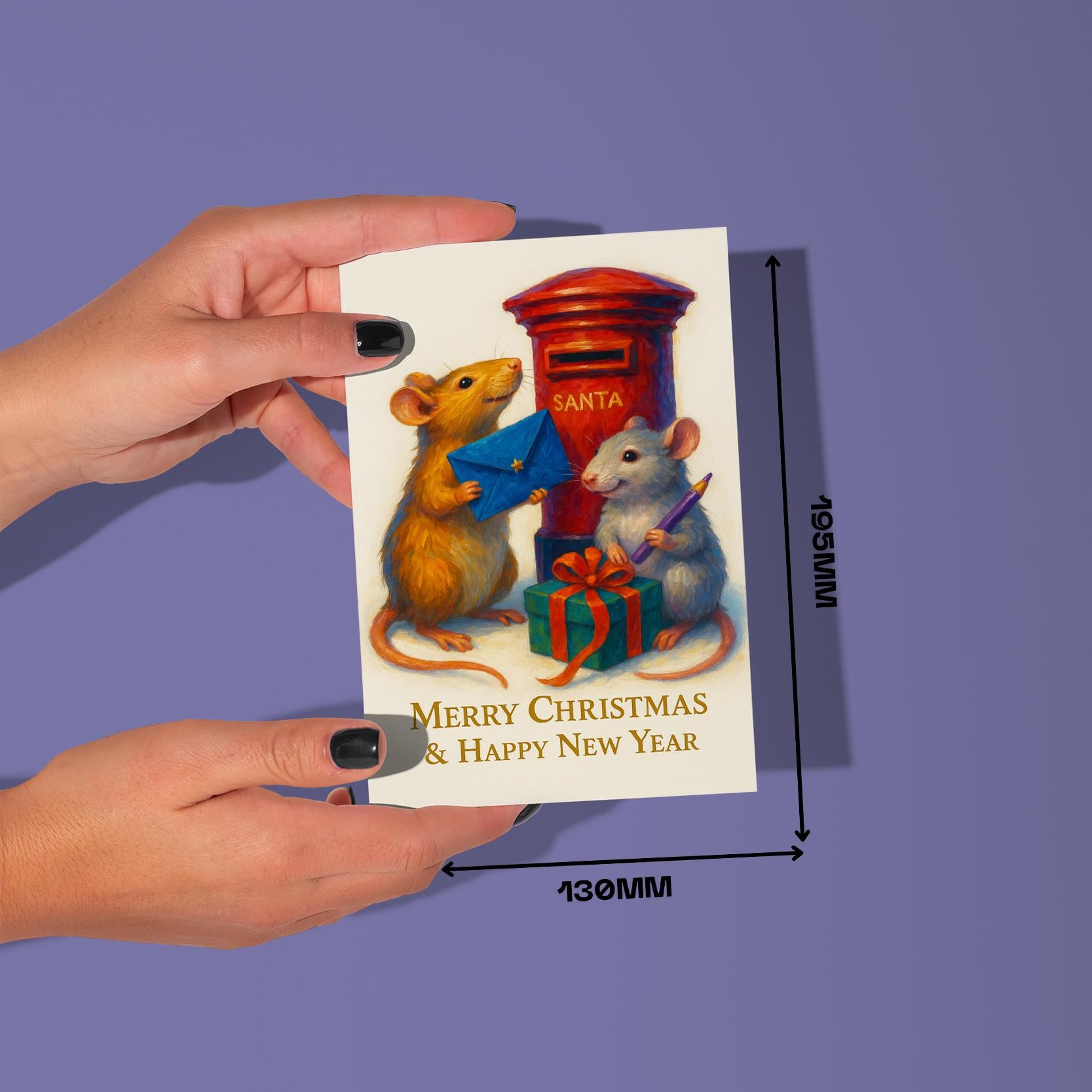 BLANK INTERIOR FOR A PERSONAL TOUCH: Festive Two Rats Posting to Santa - Merry Christmas & Happy New Year Card and other whimsical designs feature a blank interior, giving you ample space to write a personal message from the heart. Perfect for any occasion, each card comes with a matching white envelope, making it easy to send your unique sentiments to loved ones.