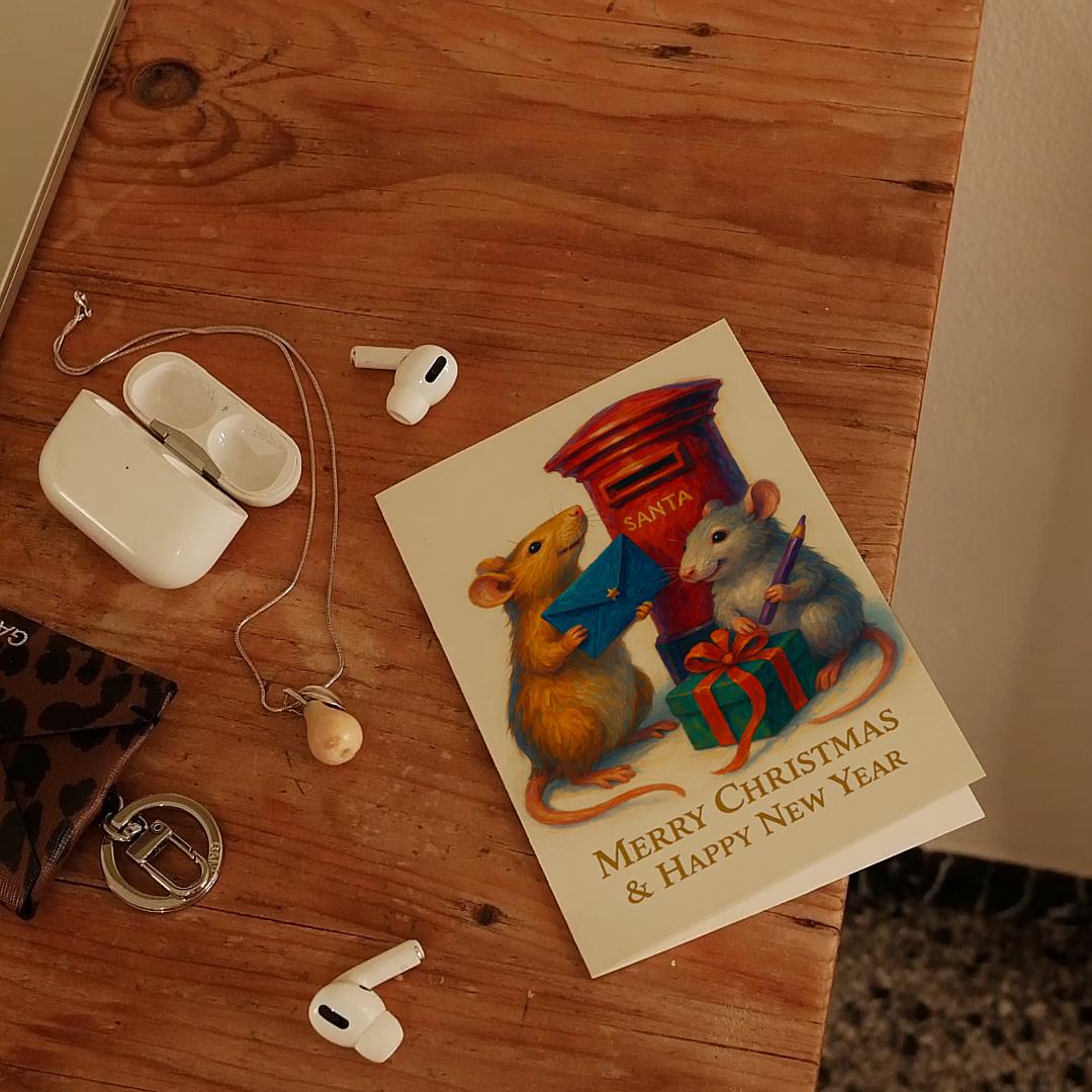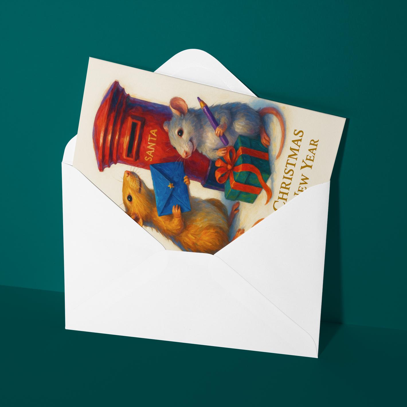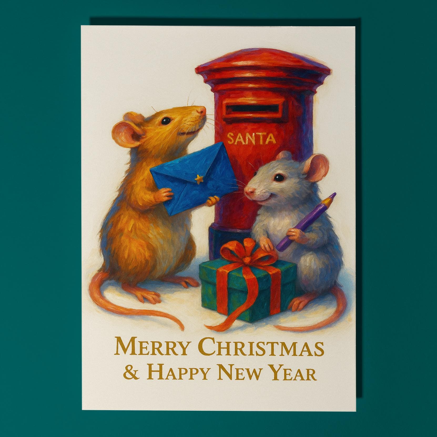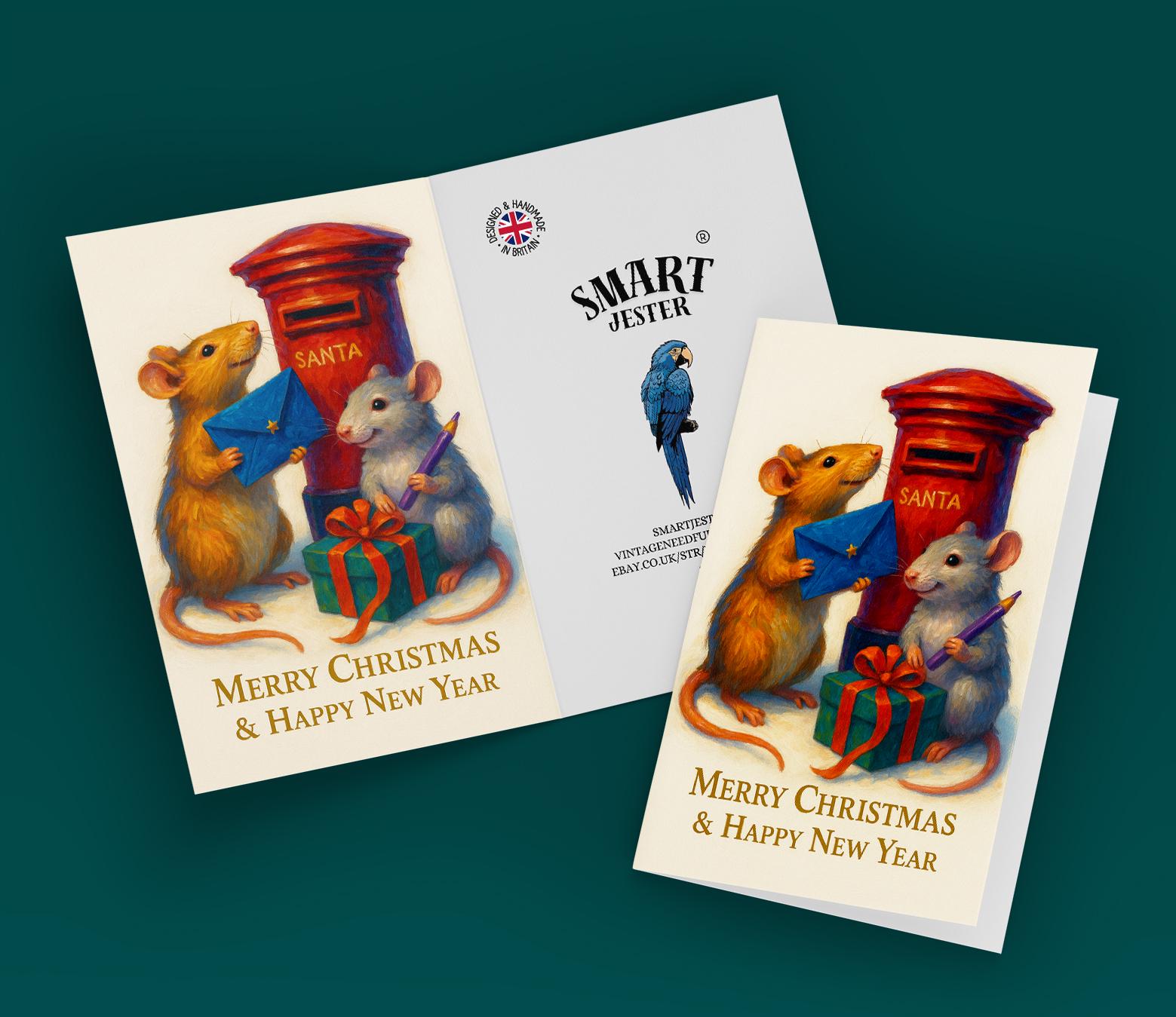 BLANK INTERIOR FOR A PERSONAL TOUCH: Festive Two Rats Posting to Santa - Merry Christmas & Happy New Year Card and other whimsical designs feature a blank interior, giving you ample space to write a personal message from the heart. Perfect for any occasion, each card comes with a matching white envelope, making it easy to send your unique sentiments to loved ones.