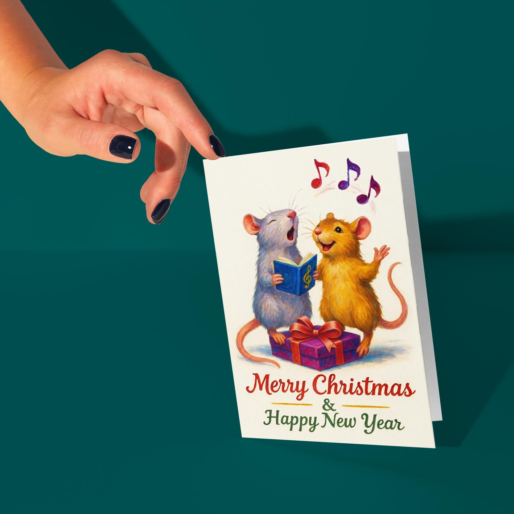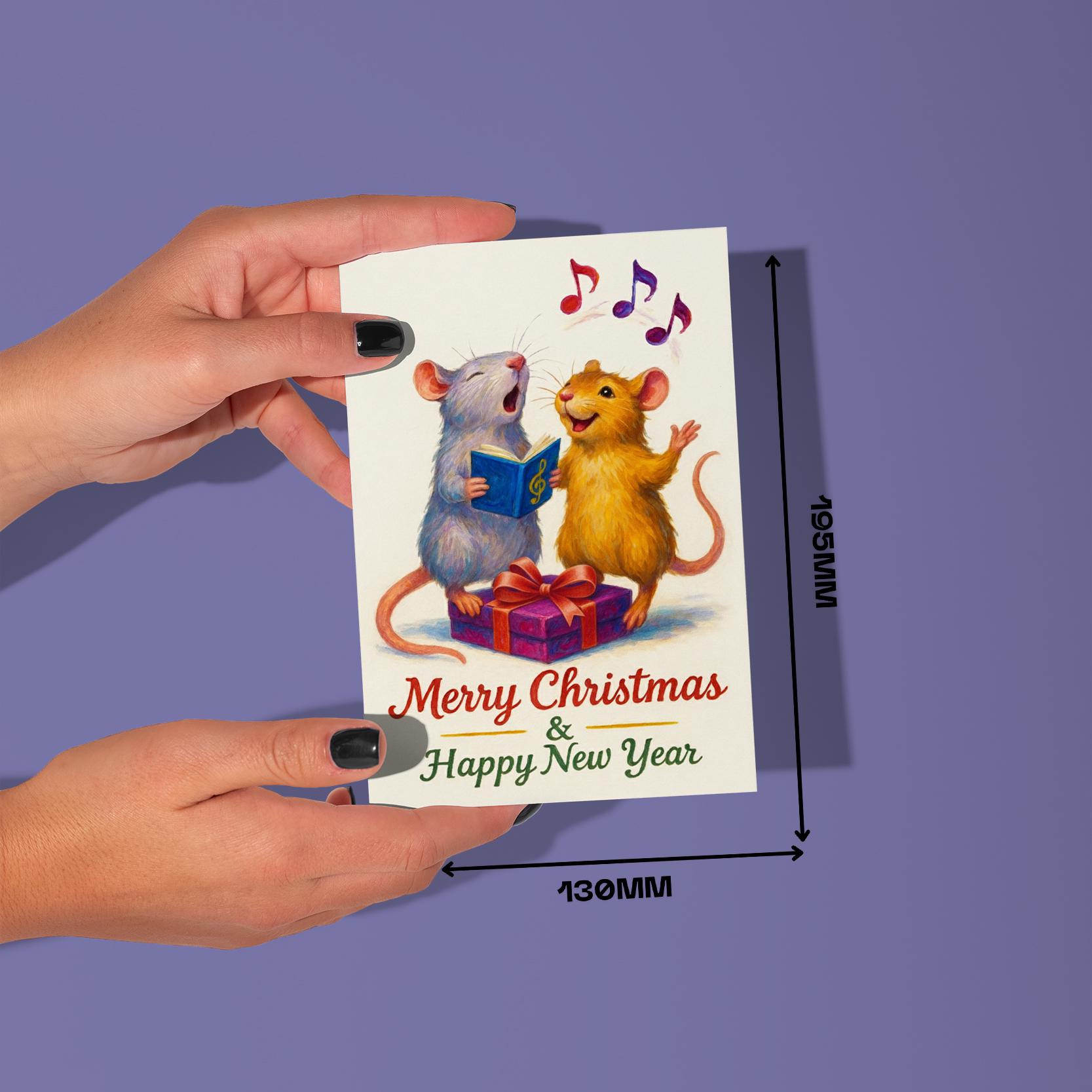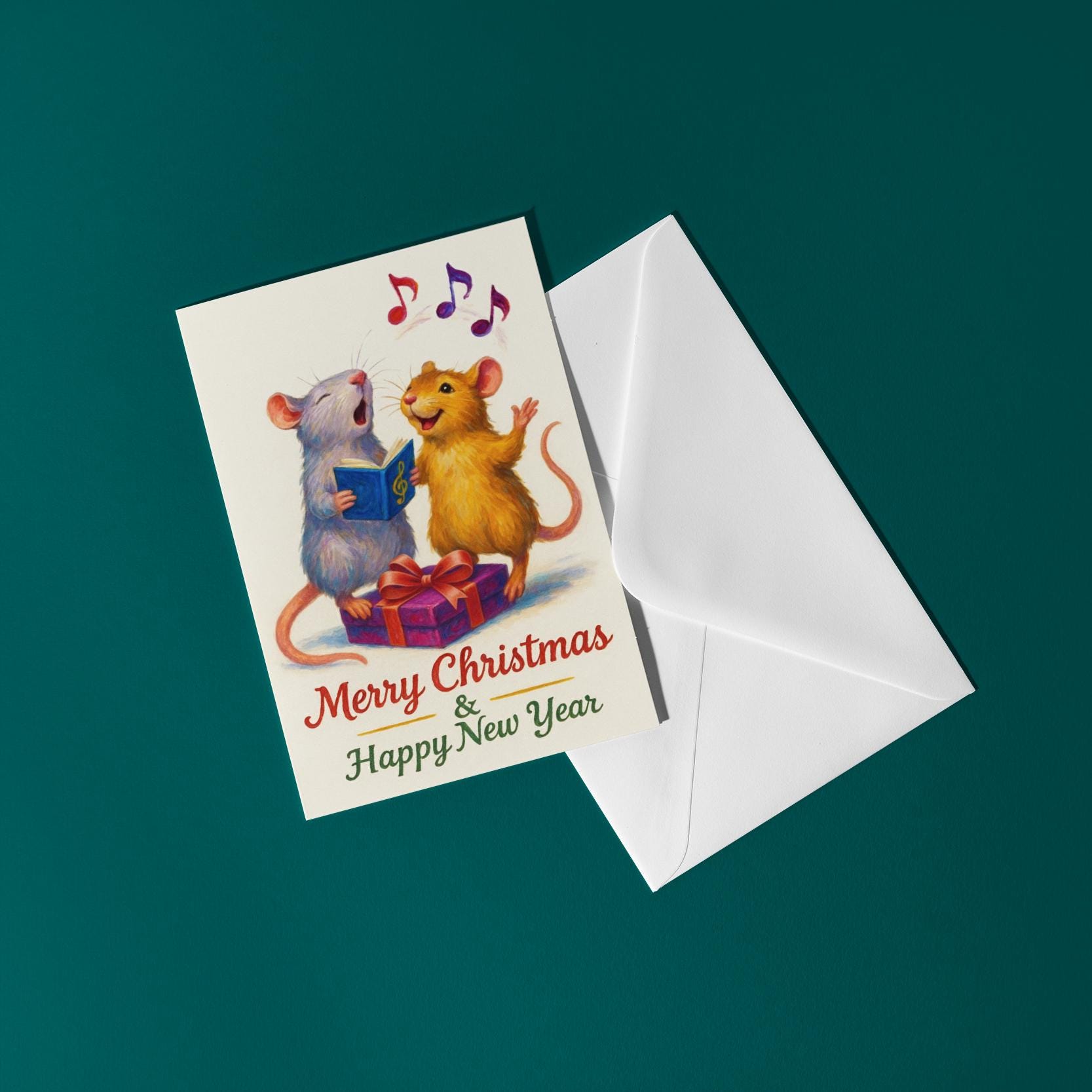 BLANK INTERIOR FOR A PERSONAL TOUCH: Festive Two Rats Christmas Chorus - Merry Christmas & Happy New Year Card and other whimsical designs feature a blank interior, giving you ample space to write a personal message from the heart. Perfect for any occasion, each card comes with a matching white envelope, making it easy to send your unique sentiments to loved ones.