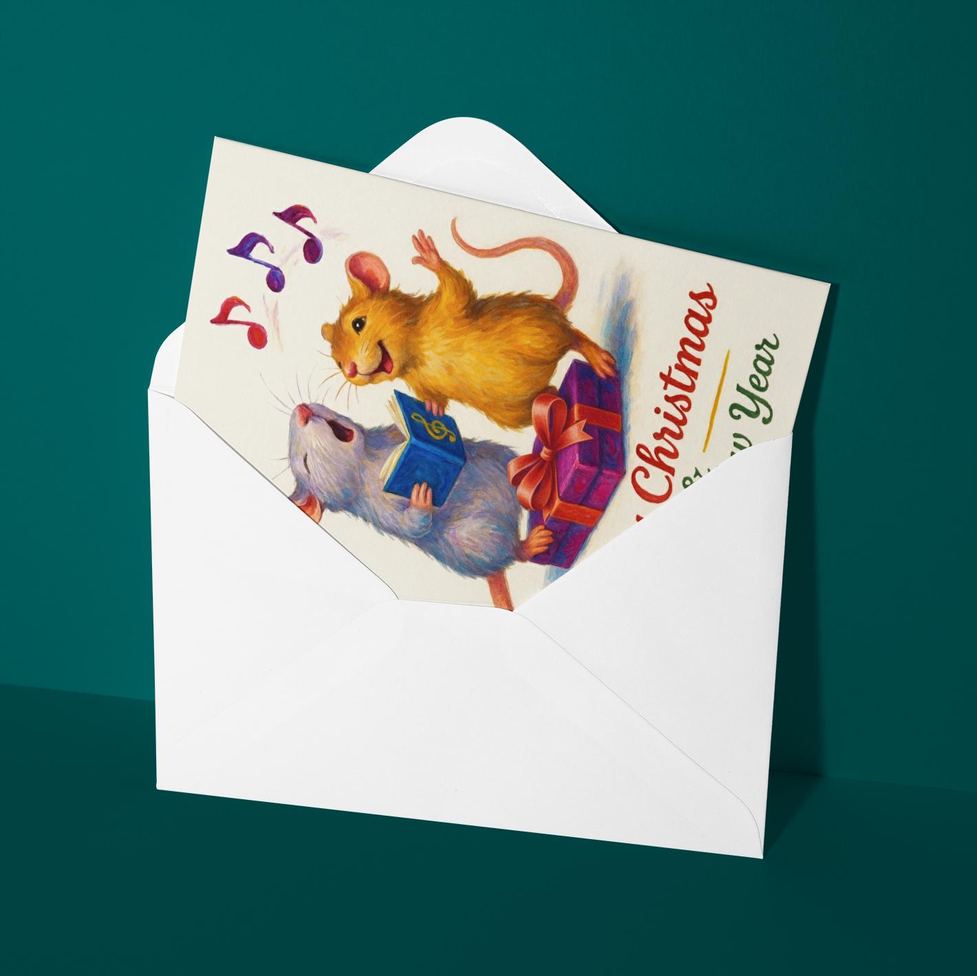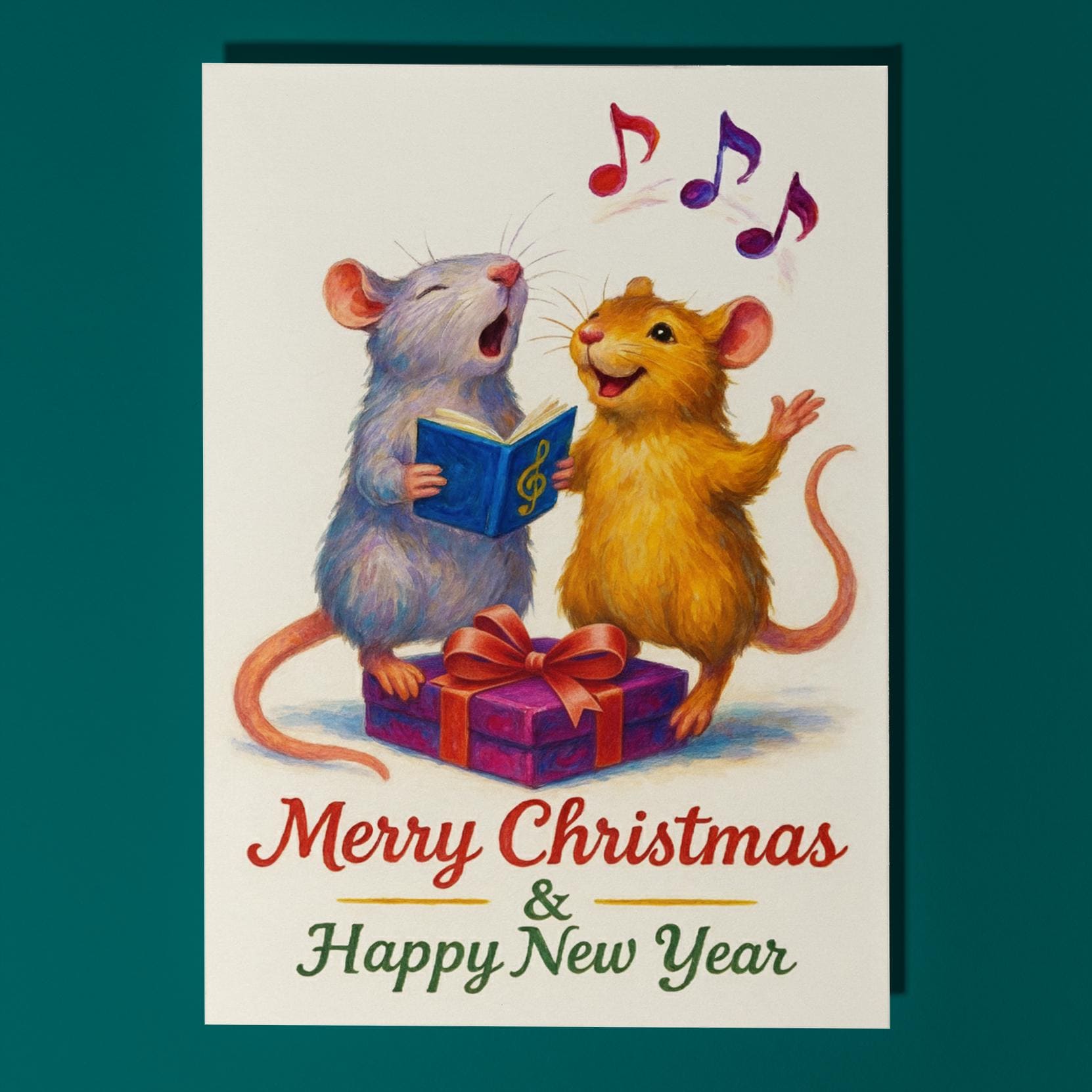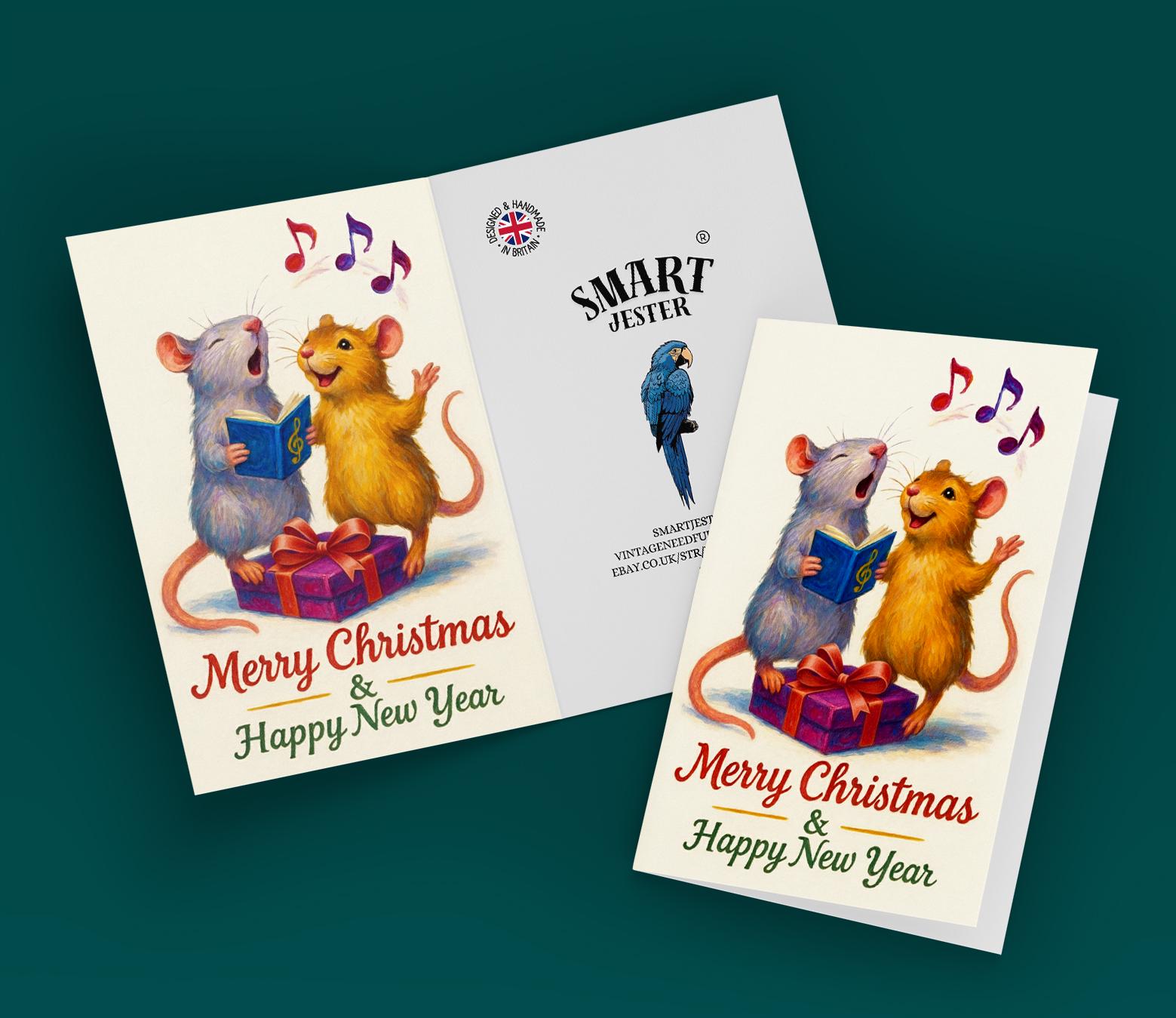 BLANK INTERIOR FOR A PERSONAL TOUCH: Festive Two Rats Christmas Chorus - Merry Christmas & Happy New Year Card and other whimsical designs feature a blank interior, giving you ample space to write a personal message from the heart. Perfect for any occasion, each card comes with a matching white envelope, making it easy to send your unique sentiments to loved ones.
