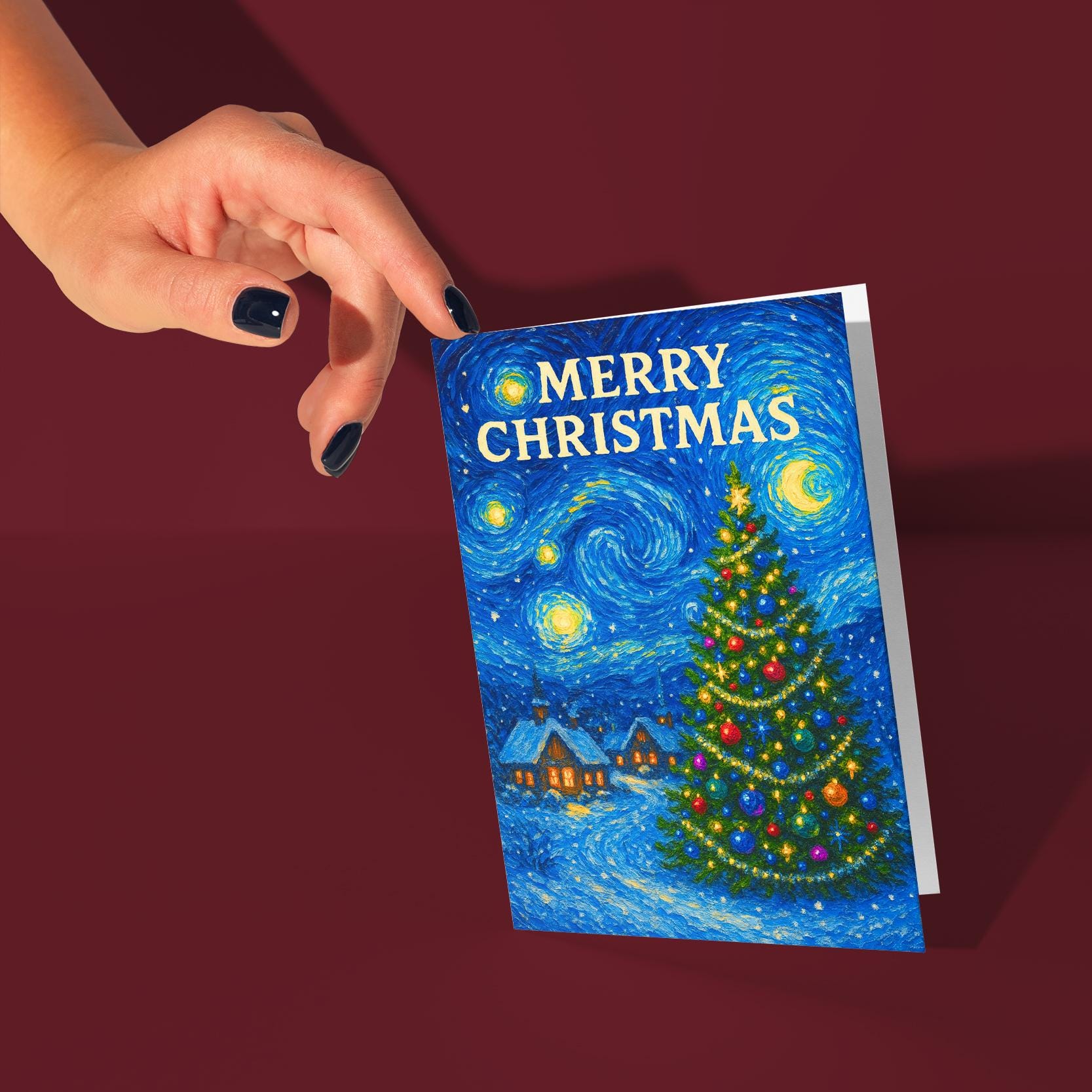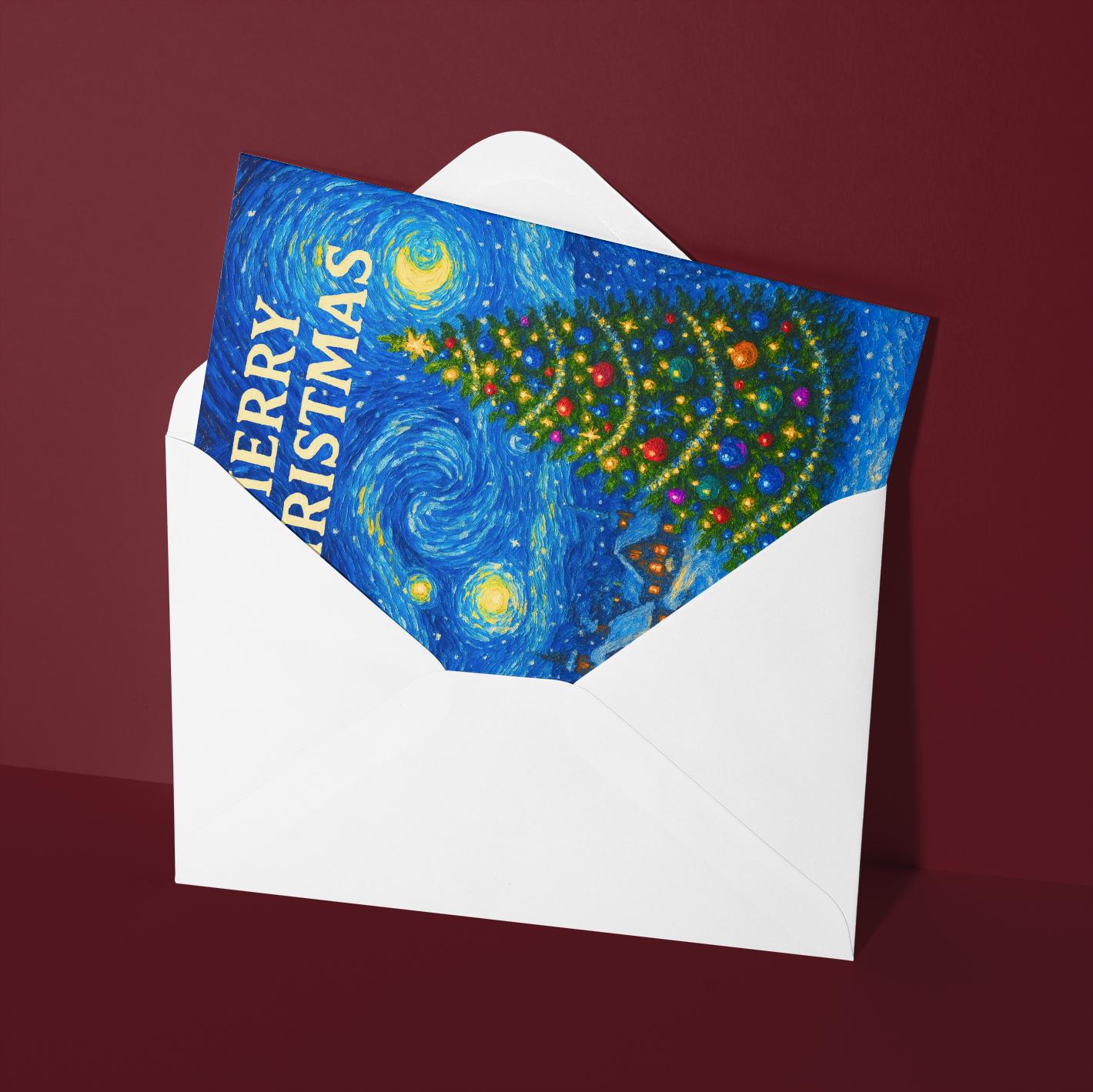 BLANK INTERIOR FOR A PERSONAL TOUCH: Starry Night Christmas - Van Gogh  - Merry Christmas Card and other whimsical designs feature a blank interior, giving you ample space to write a personal message from the heart. Perfect for any occasion, each card comes with a matching white envelope, making it easy to send your unique sentiments to loved ones.
