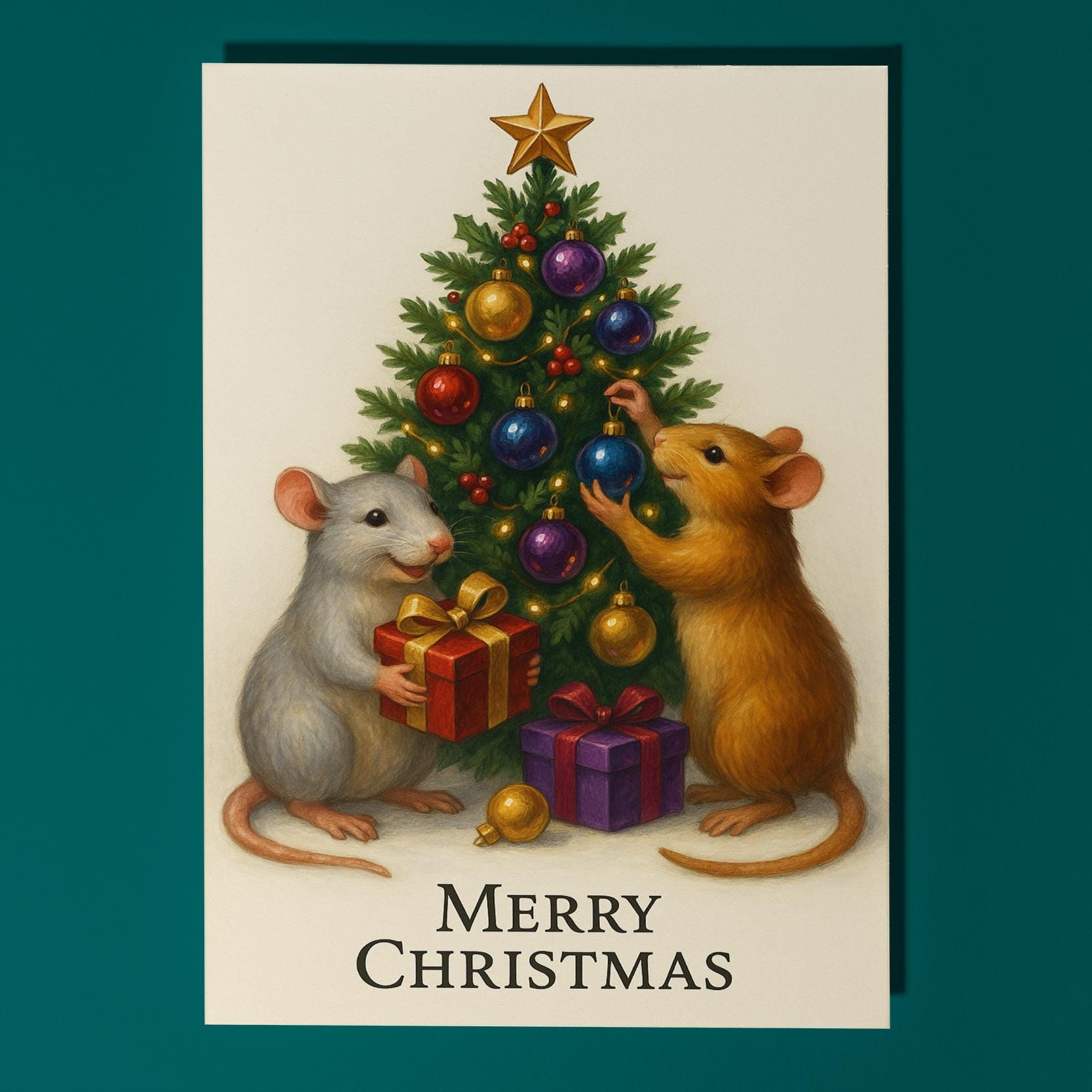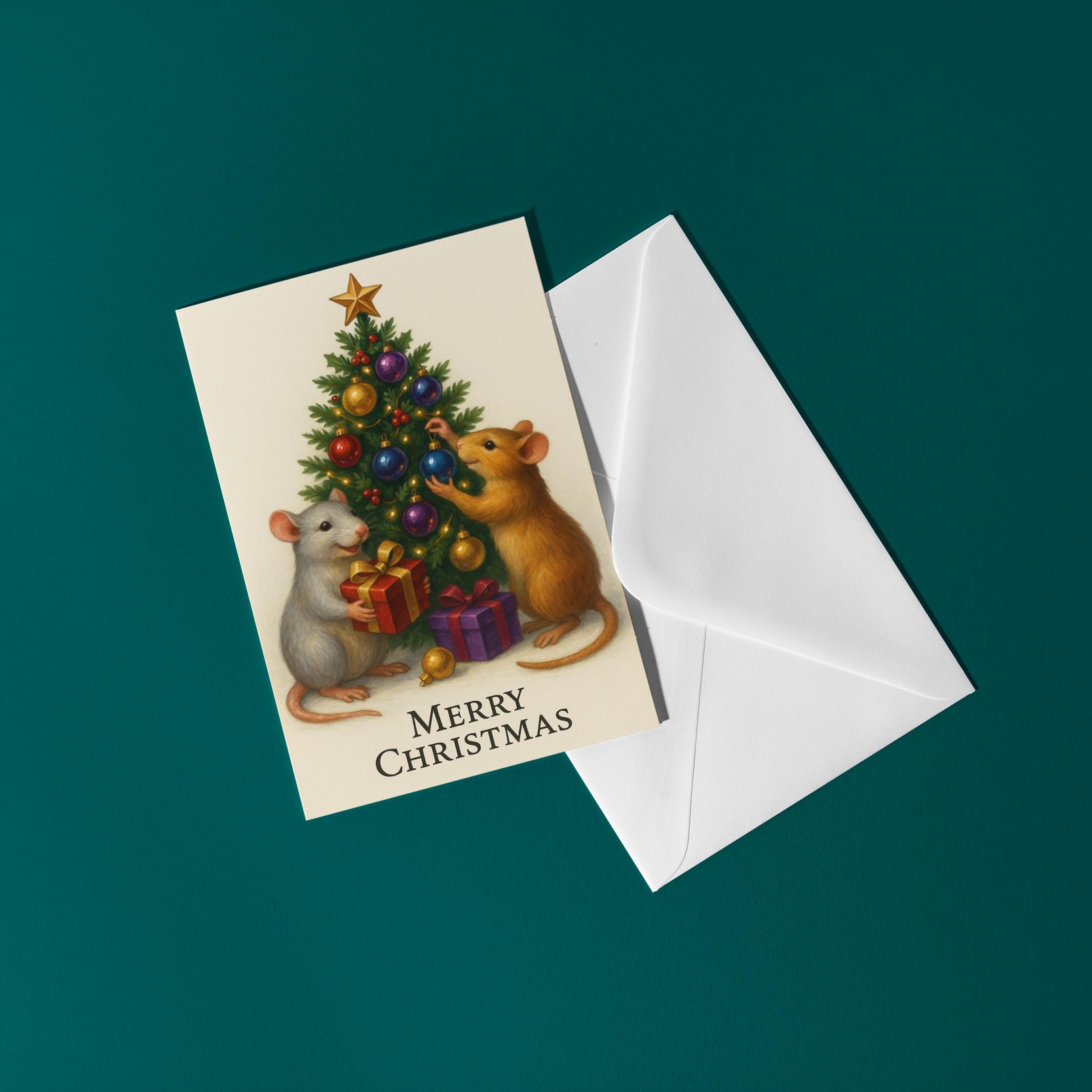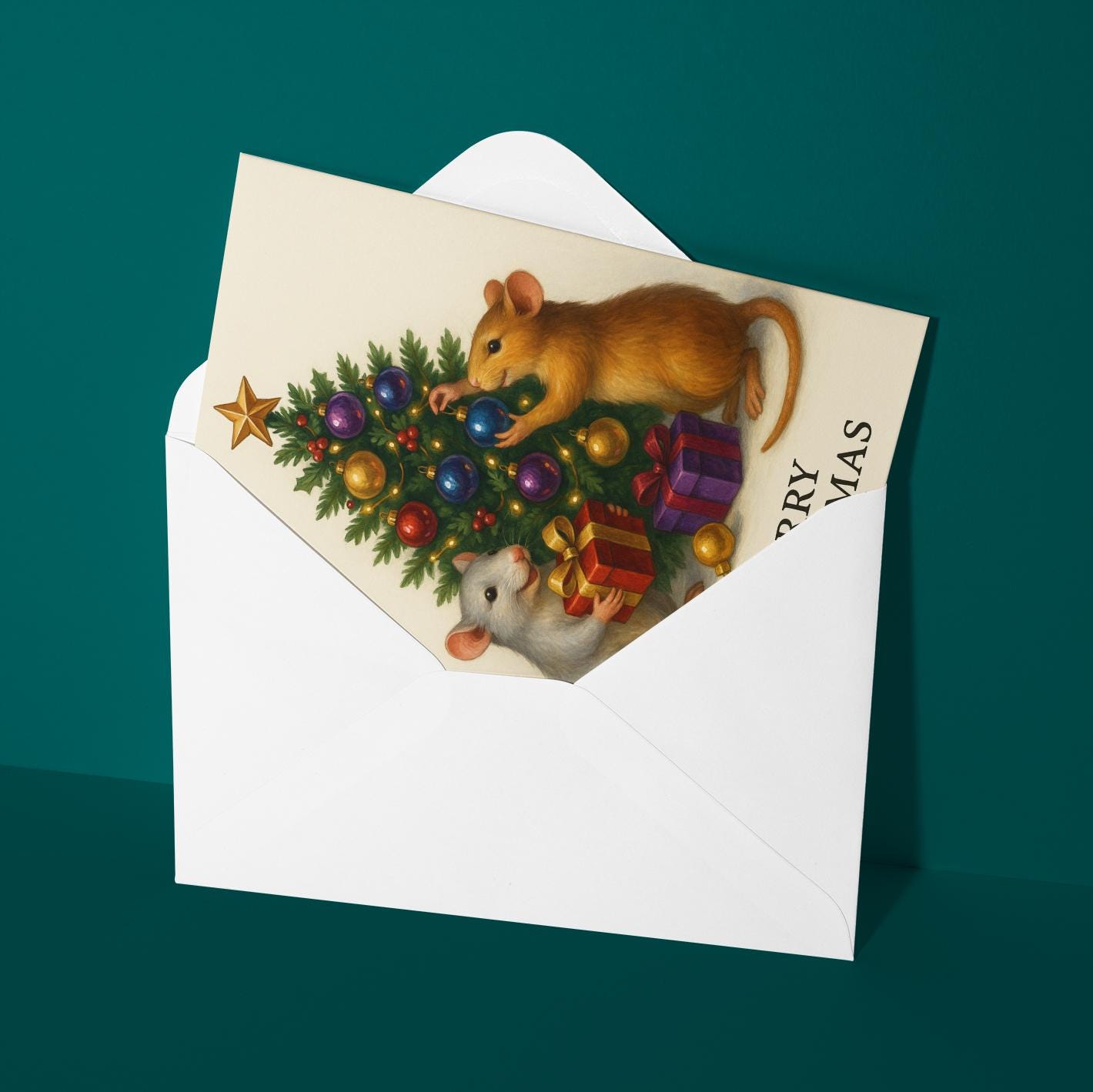 BLANK INTERIOR FOR A PERSONAL TOUCH: Festive Two Rats Trimming the Tree - Merry Christmas Card and other whimsical designs feature a blank interior, giving you ample space to write a personal message from the heart. Perfect for any occasion, each card comes with a matching white envelope, making it easy to send your unique sentiments to loved ones.