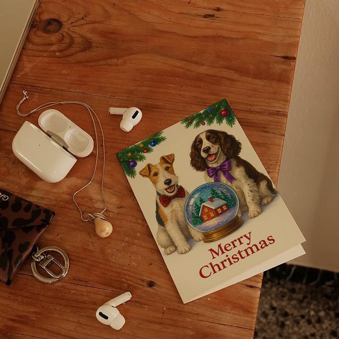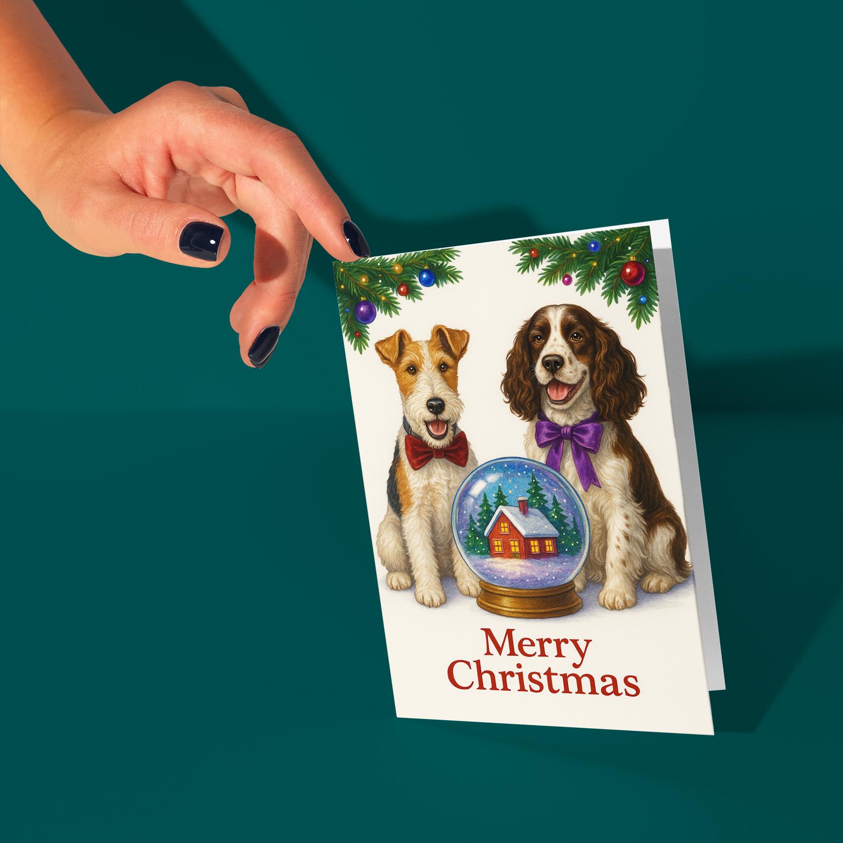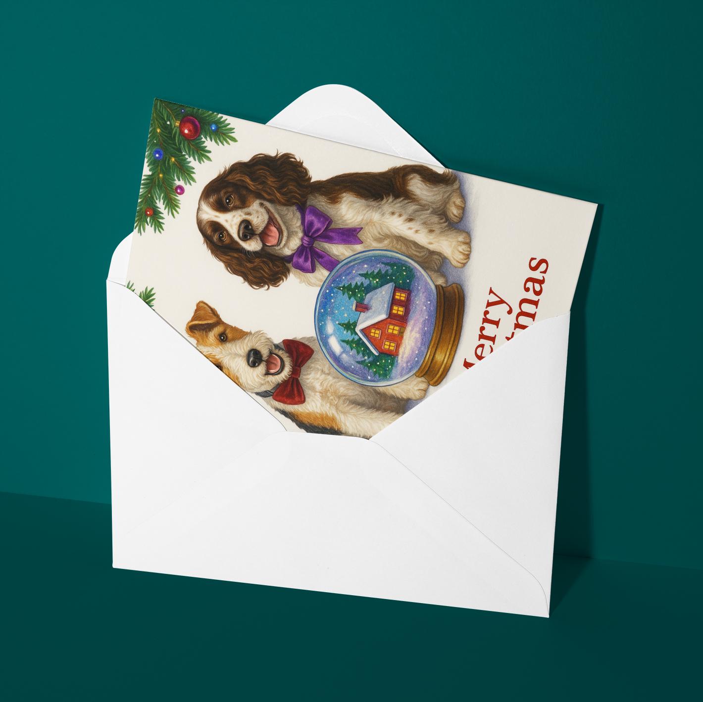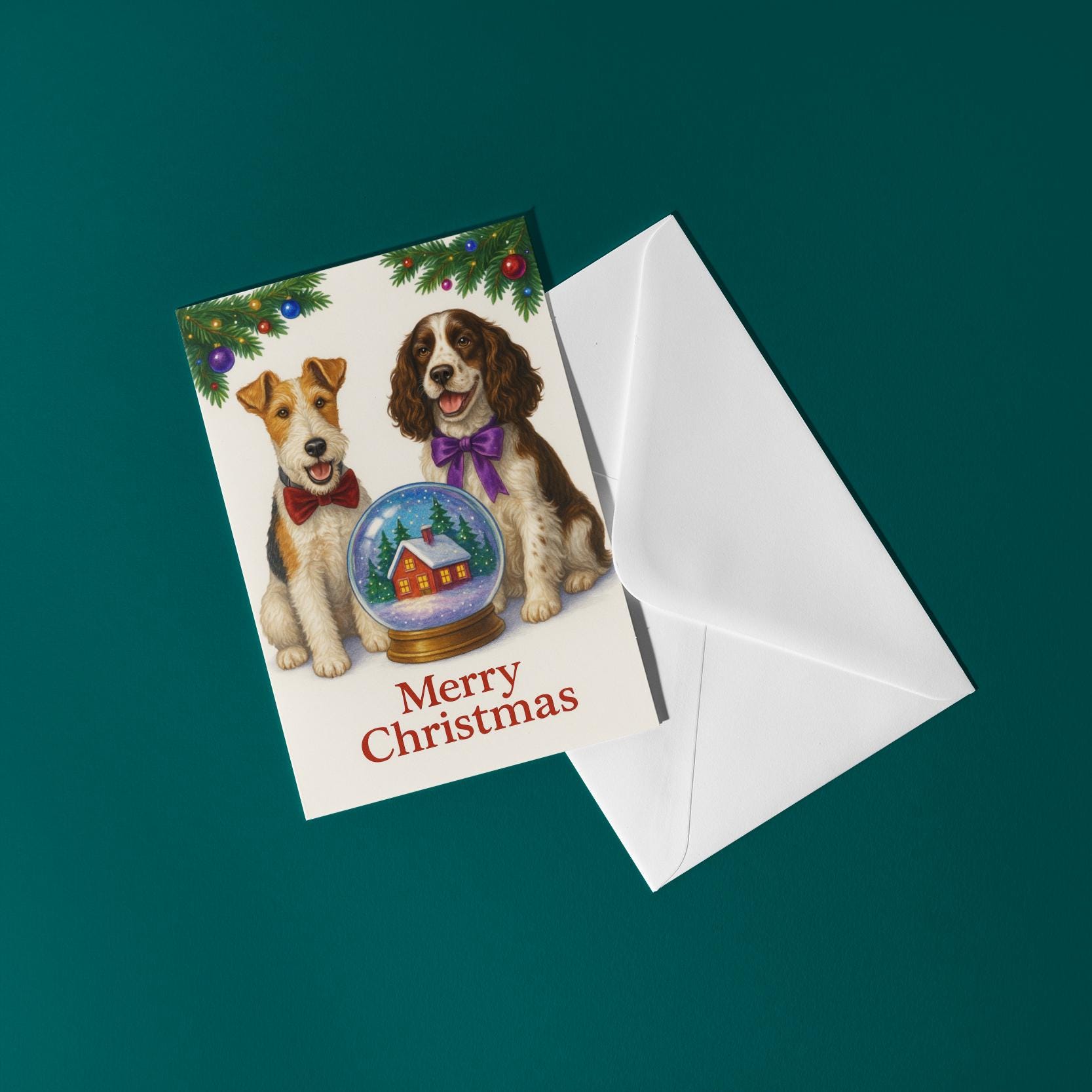BLANK INTERIOR FOR A PERSONAL TOUCH: Part of the - Dog Breeds Collection - Santa’s Helpers Collection - Wire Fox Terrier and Springer Spaniel Dogs Duo - Cozy Nose and Snow Globe - Merry Christmas! Card and other whimsical designs feature a blank interior, giving you ample space to write a personal message from the heart. Perfect for any occasion, each card comes with a matching white envelope, making it easy to send your unique sentiments to loved ones.
