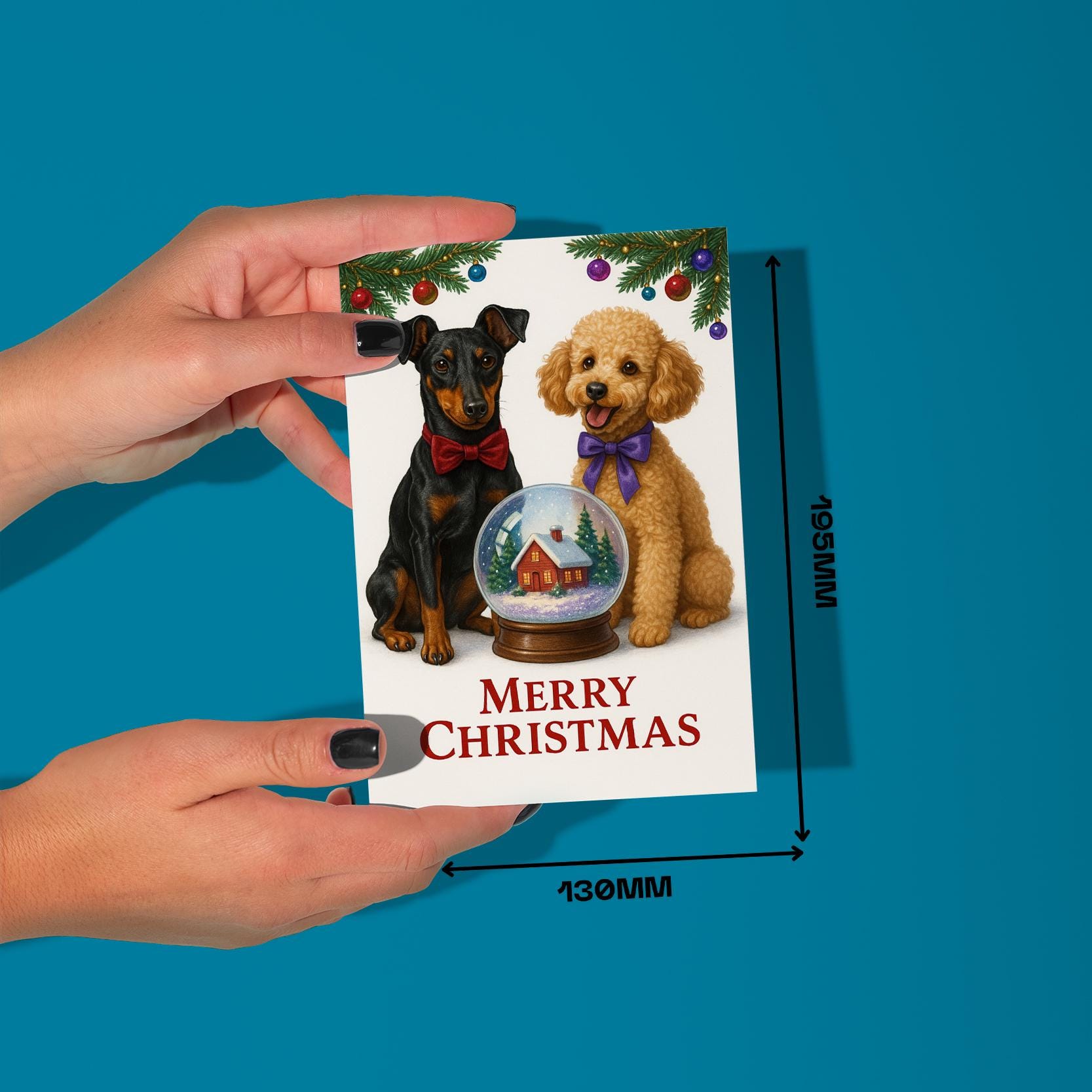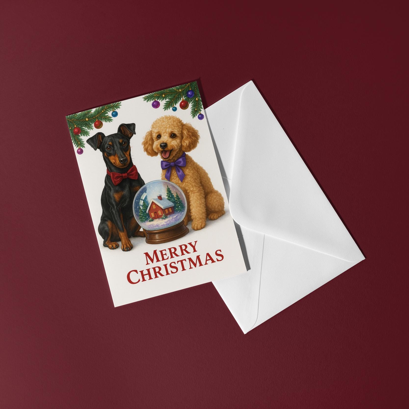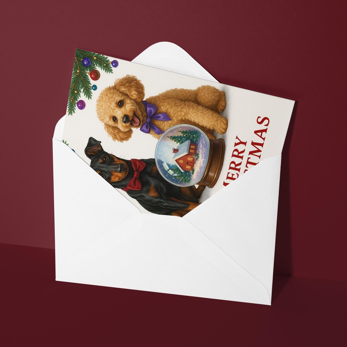 BLANK INTERIOR FOR A PERSONAL TOUCH: Part of the - Dog Breeds Collection - Santa’s Helpers Collection - Manchester Terrier and Poodle Dogs Duo - Cozy Nose and Snow Globe - Merry Christmas! Card and other whimsical designs feature a blank interior, giving you ample space to write a personal message from the heart. Perfect for any occasion, each card comes with a matching white envelope, making it easy to send your unique sentiments to loved ones.
