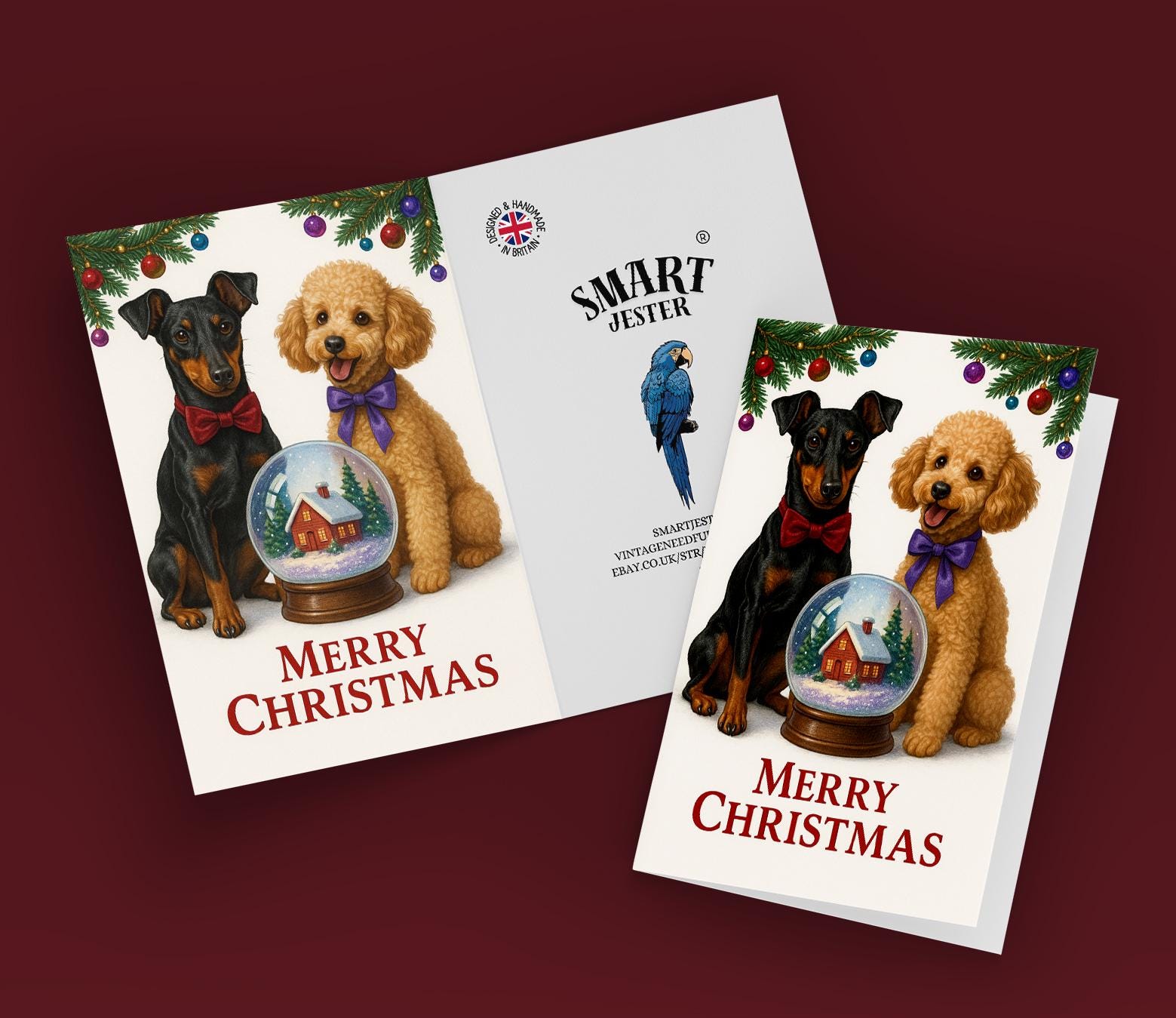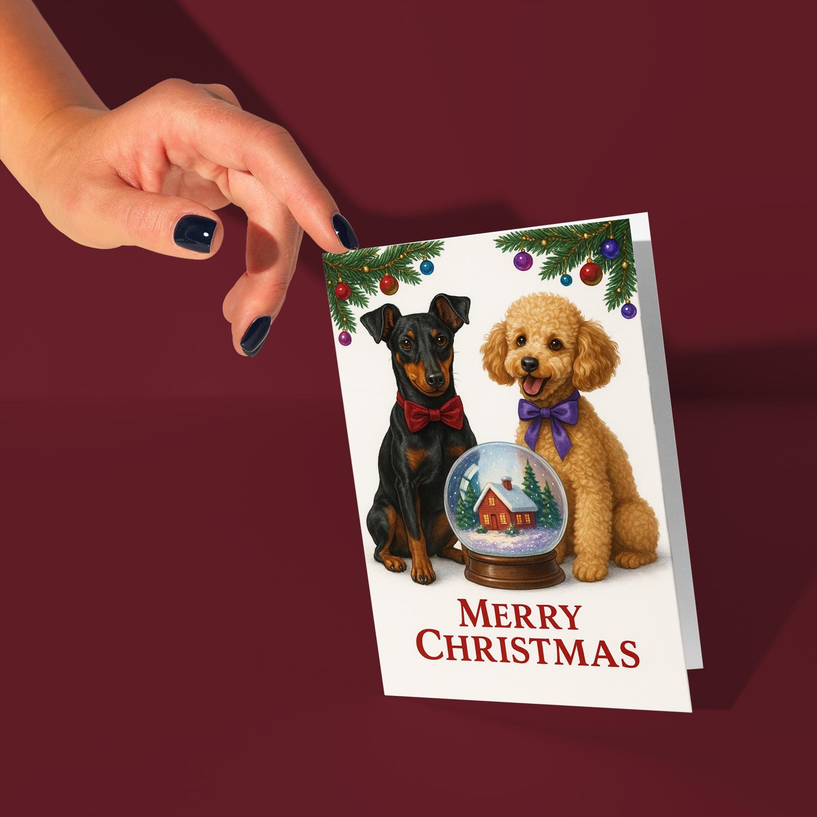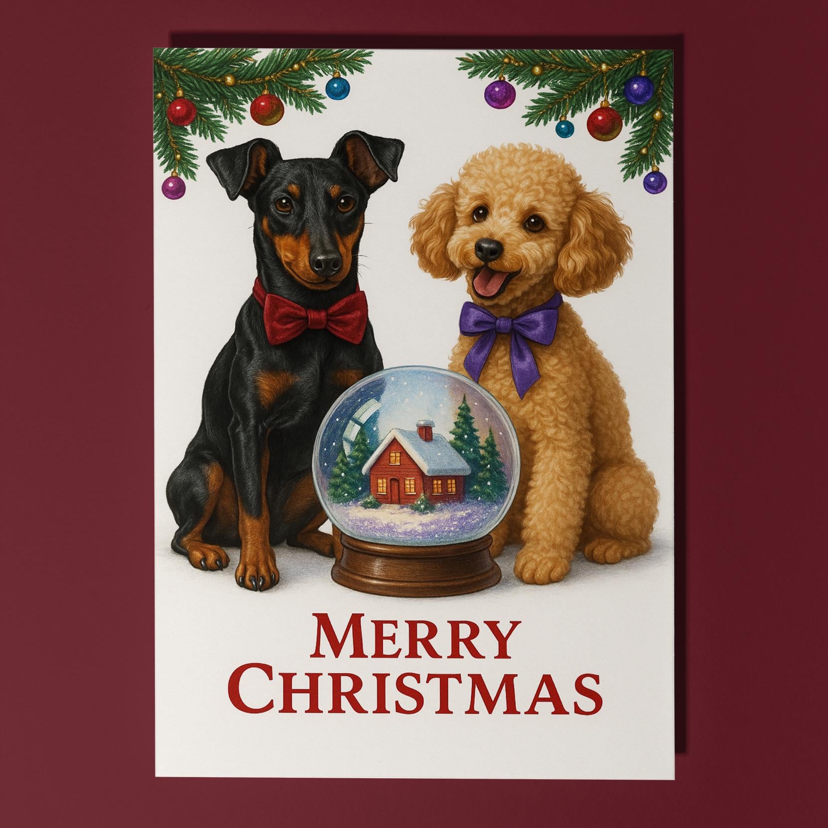 BLANK INTERIOR FOR A PERSONAL TOUCH: Part of the - Dog Breeds Collection - Santa’s Helpers Collection - Manchester Terrier and Poodle Dogs Duo - Cozy Nose and Snow Globe - Merry Christmas! Card and other whimsical designs feature a blank interior, giving you ample space to write a personal message from the heart. Perfect for any occasion, each card comes with a matching white envelope, making it easy to send your unique sentiments to loved ones.