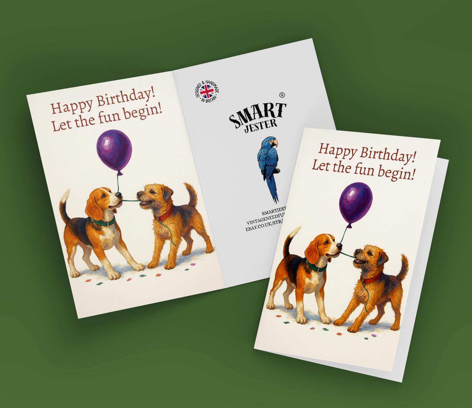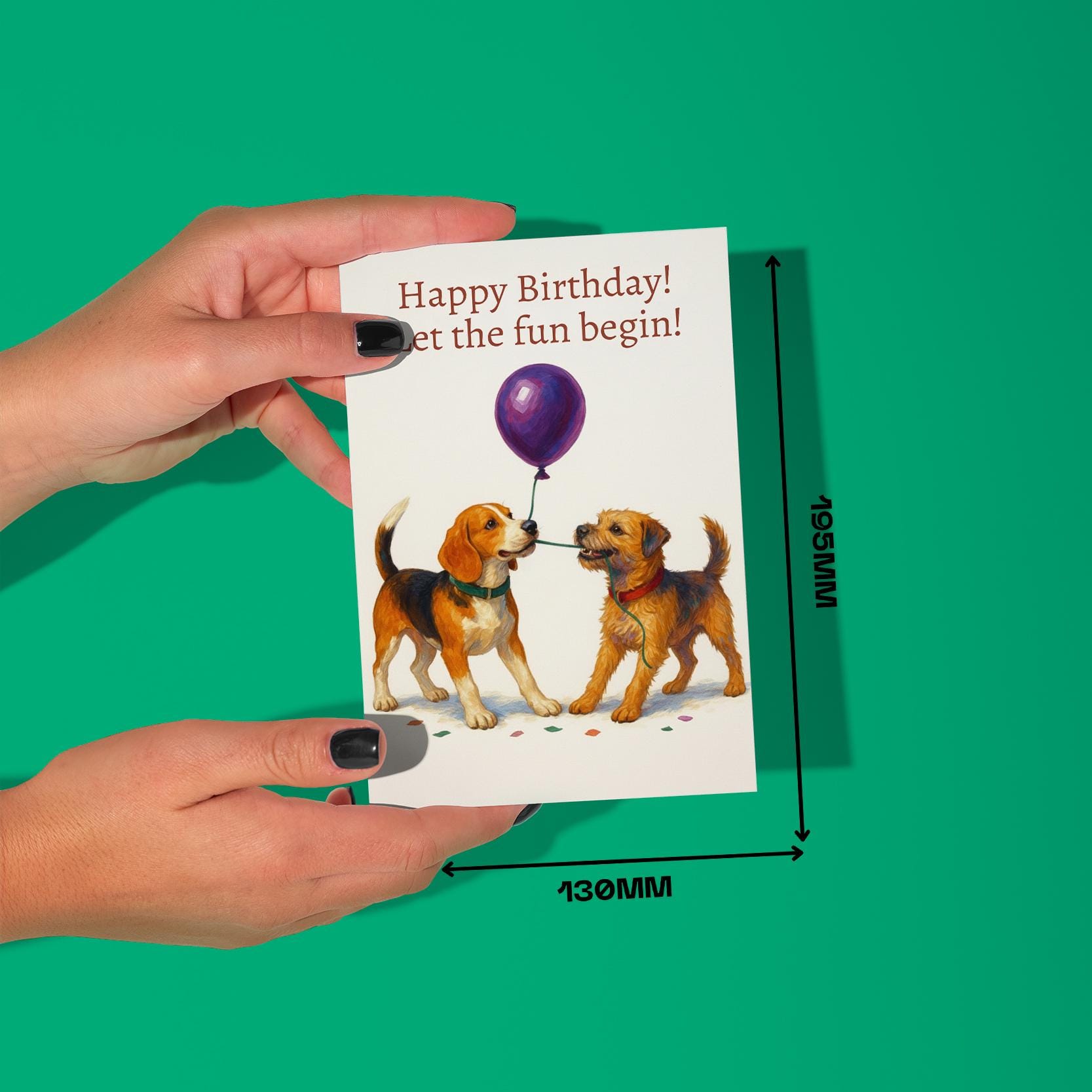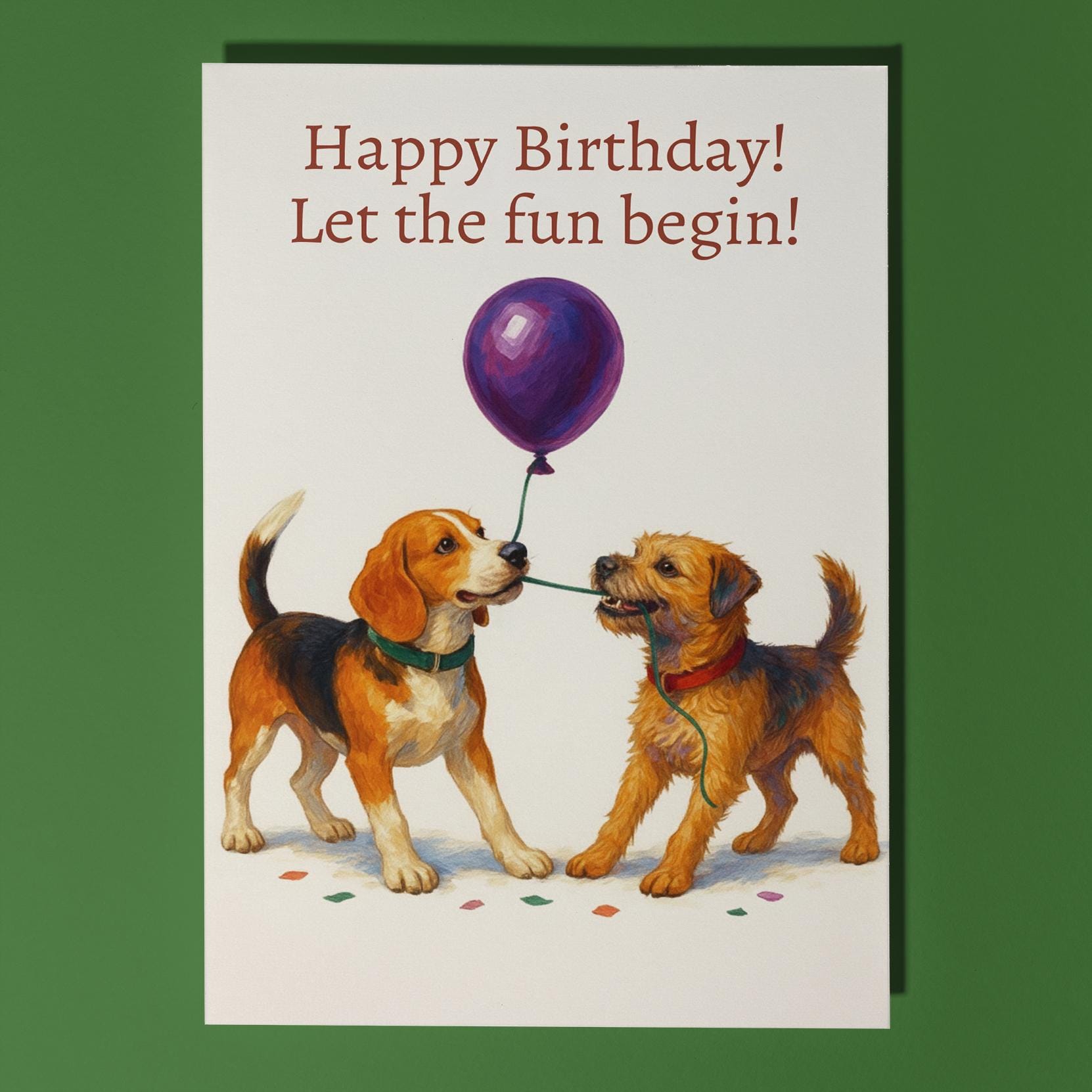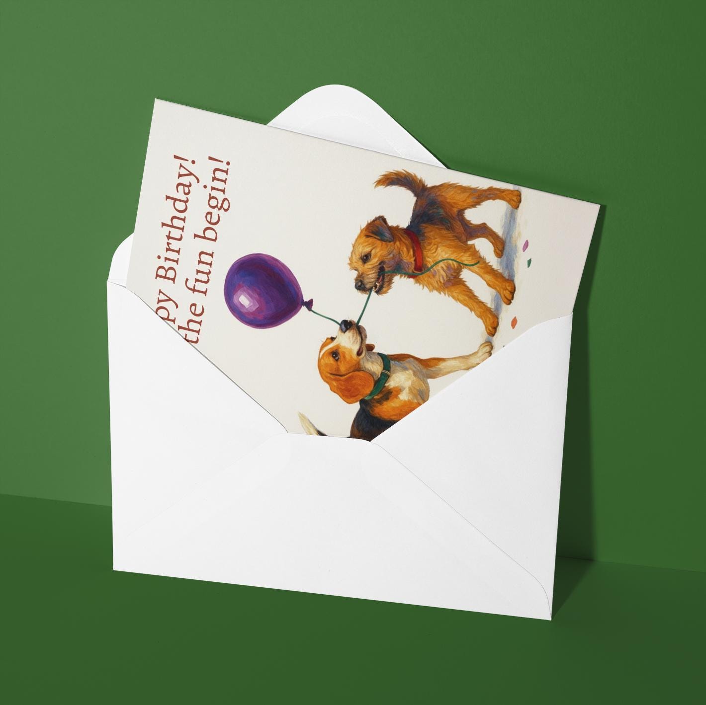 BLANK INTERIOR FOR A PERSONAL TOUCH: Our Dog Breeds Collection - Beagle and Border Terrier dogs - Let the fun begin - Happy Birthday! card and other whimsical designs feature a blank interior, giving you ample space to write a personal message from the heart. Perfect for any occasion, each card comes with a matching white envelope, making it easy to send your unique sentiments to loved ones.
