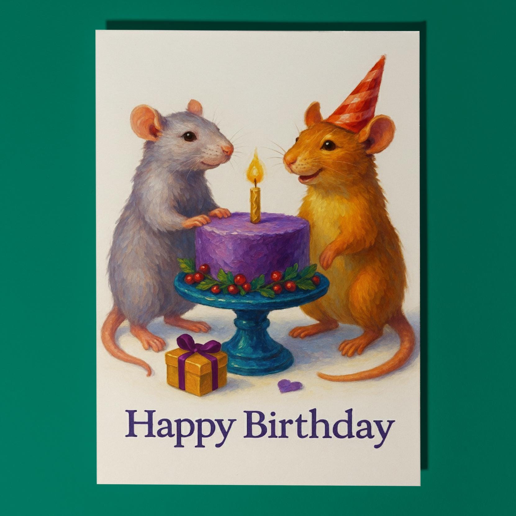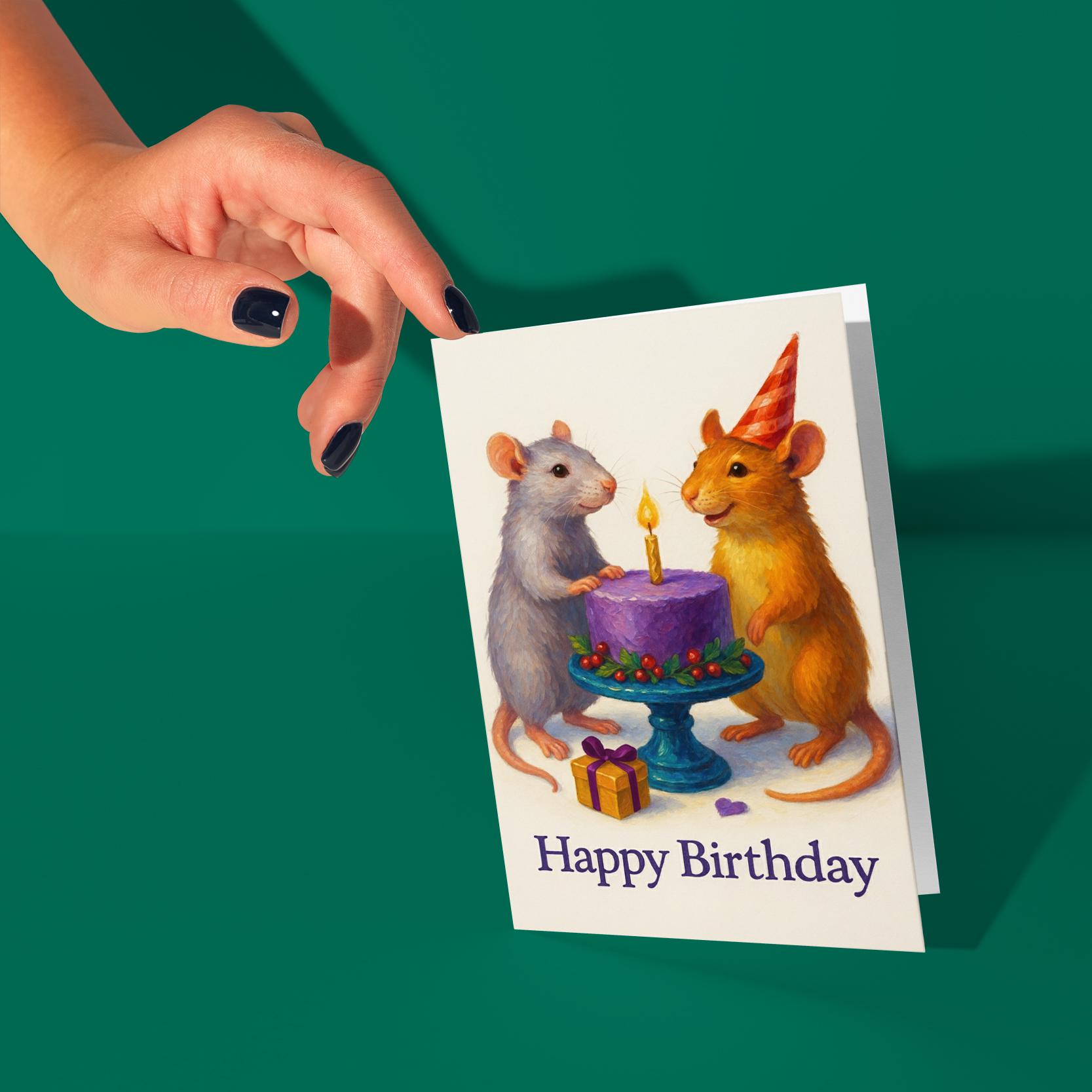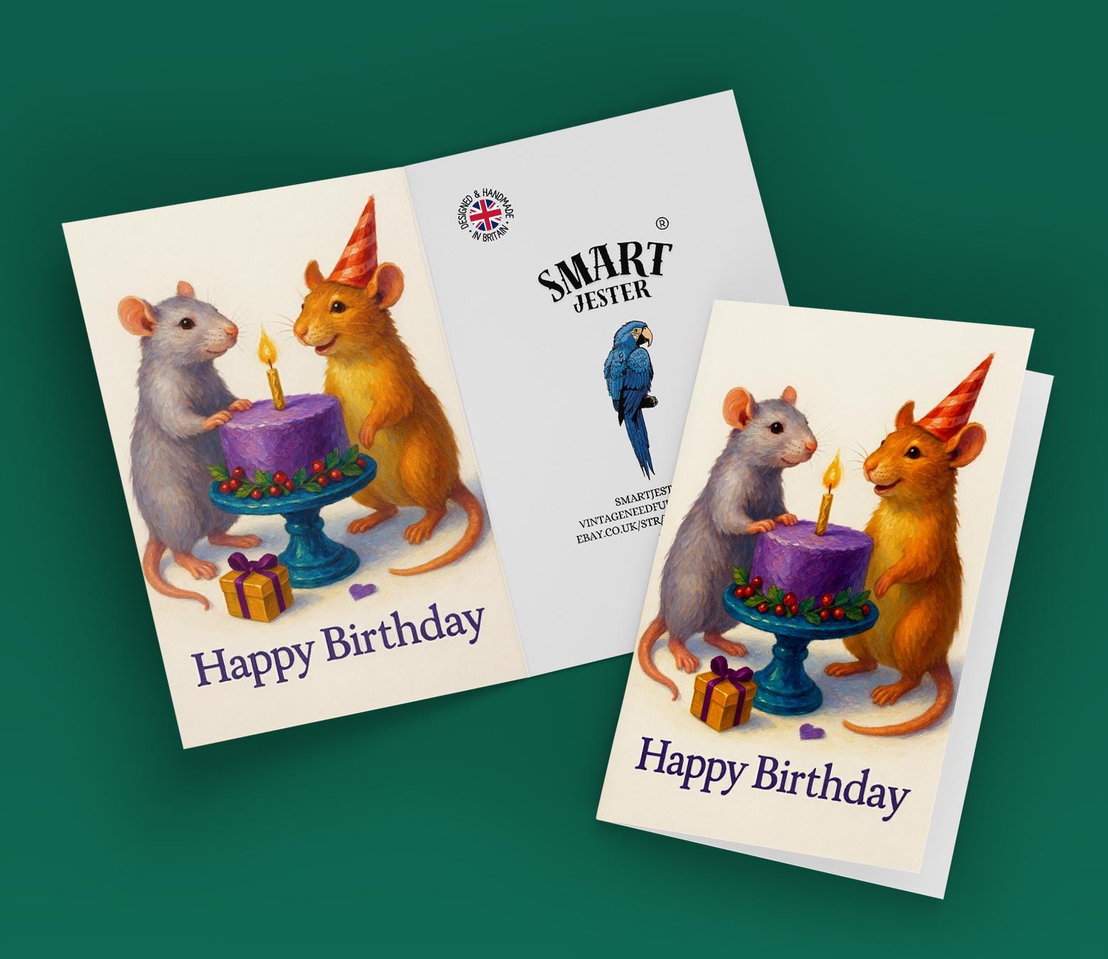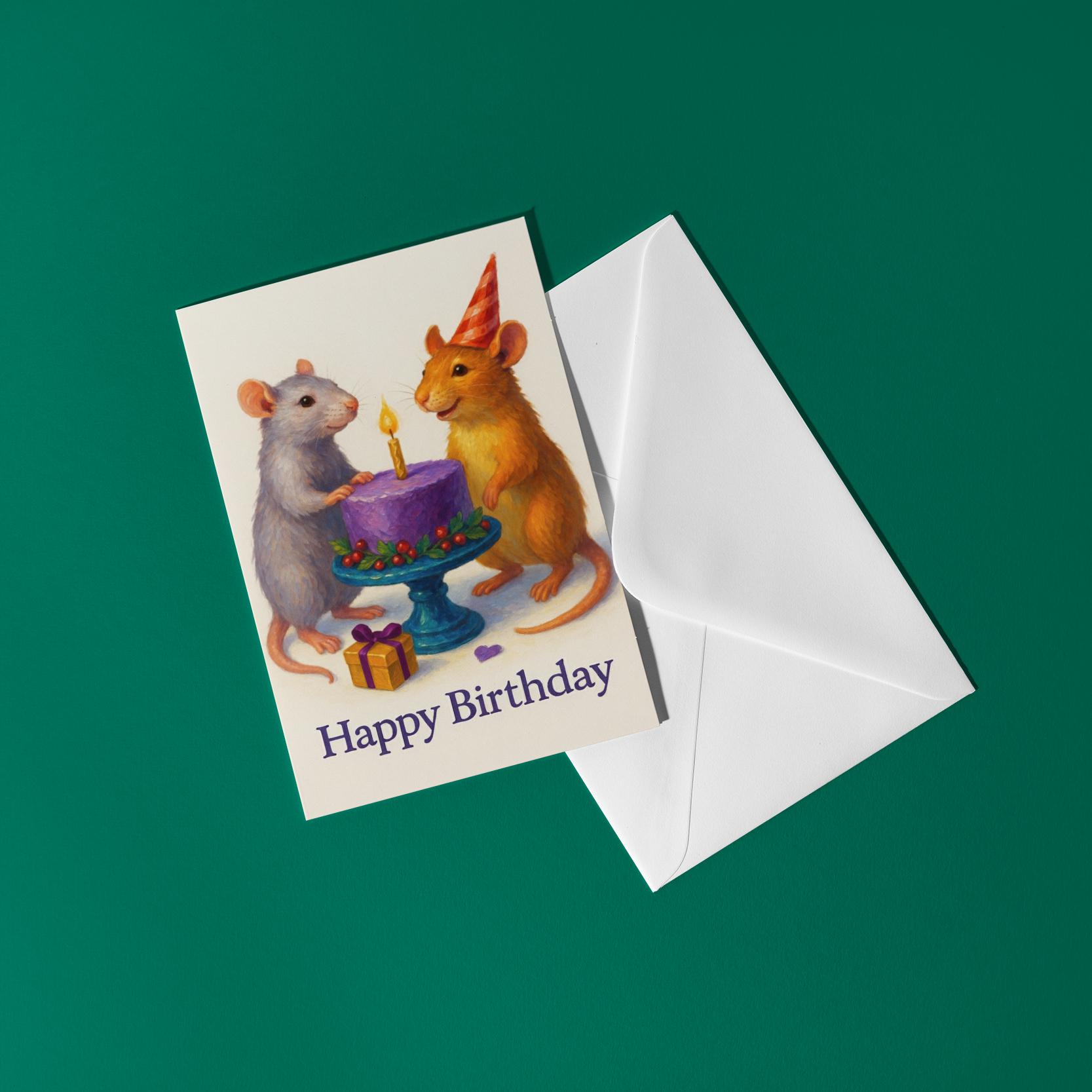 BLANK INTERIOR FOR A PERSONAL TOUCH: Our Rats collection - Two Happy Rats - A Perfect Birthday Moment Happy Birthday Card and other whimsical designs feature a blank interior, giving you ample space to write a personal message from the heart. Perfect for any occasion, each card comes with a matching white envelope, making it easy to send your unique sentiments to loved ones
