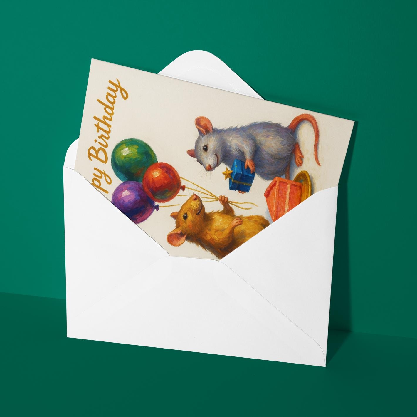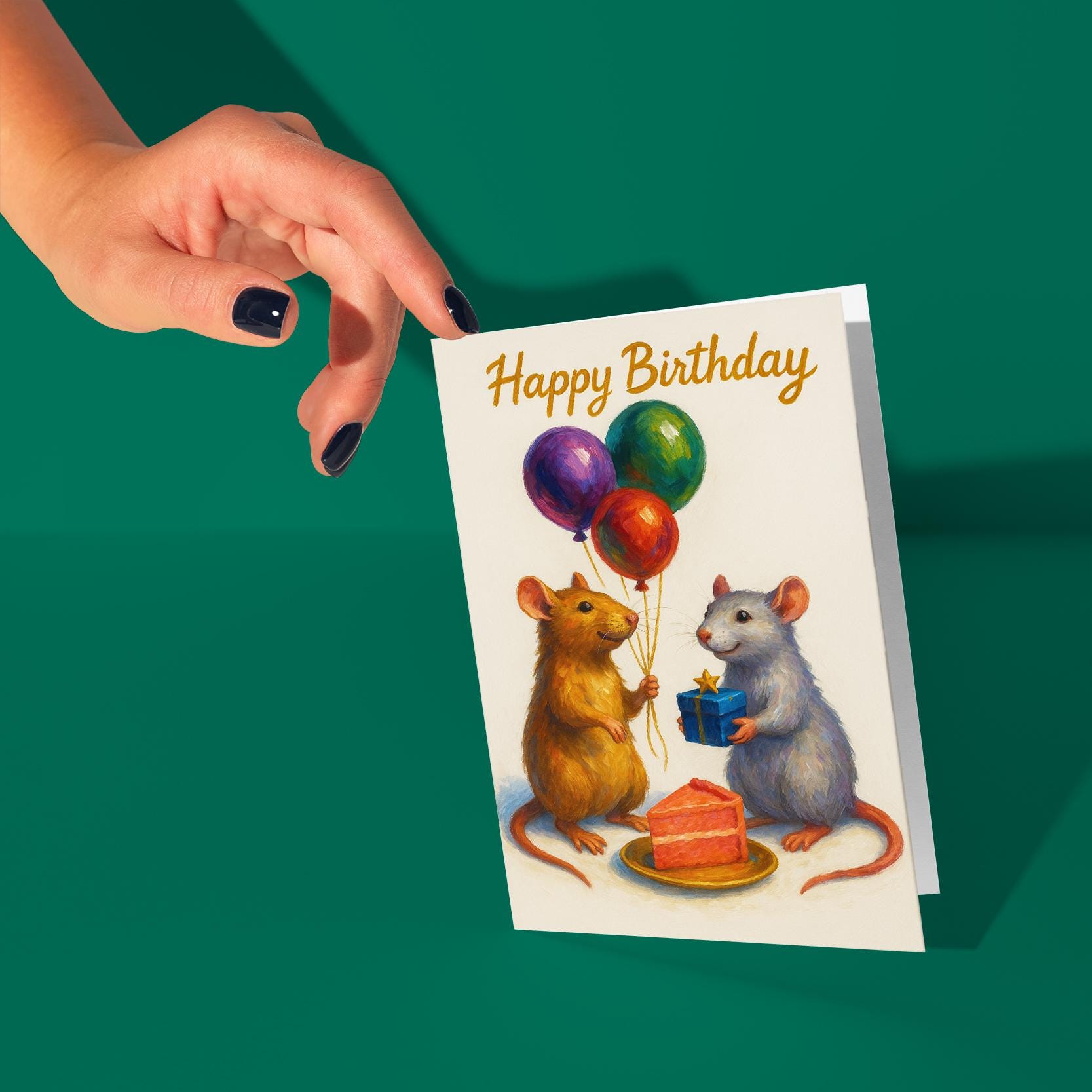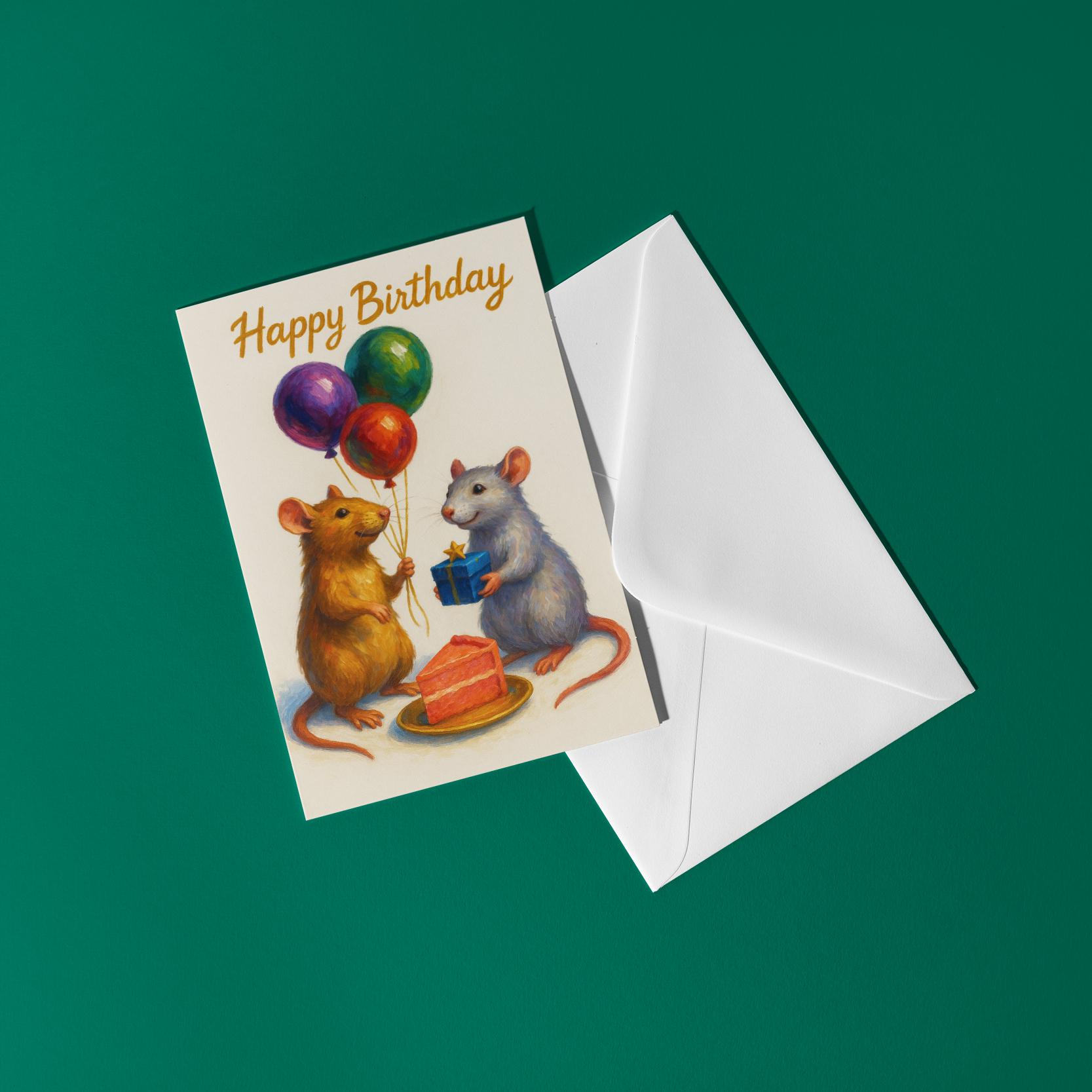 BLANK INTERIOR FOR A PERSONAL TOUCH: Our Rats collection - Two Happy Rats - We Brought Cake! - Happy Birthday Card and other whimsical designs feature a blank interior, giving you ample space to write a personal message from the heart. Perfect for any occasion, each card comes with a matching white envelope, making it easy to send your unique sentiments to loved ones