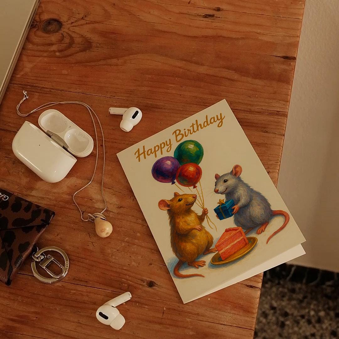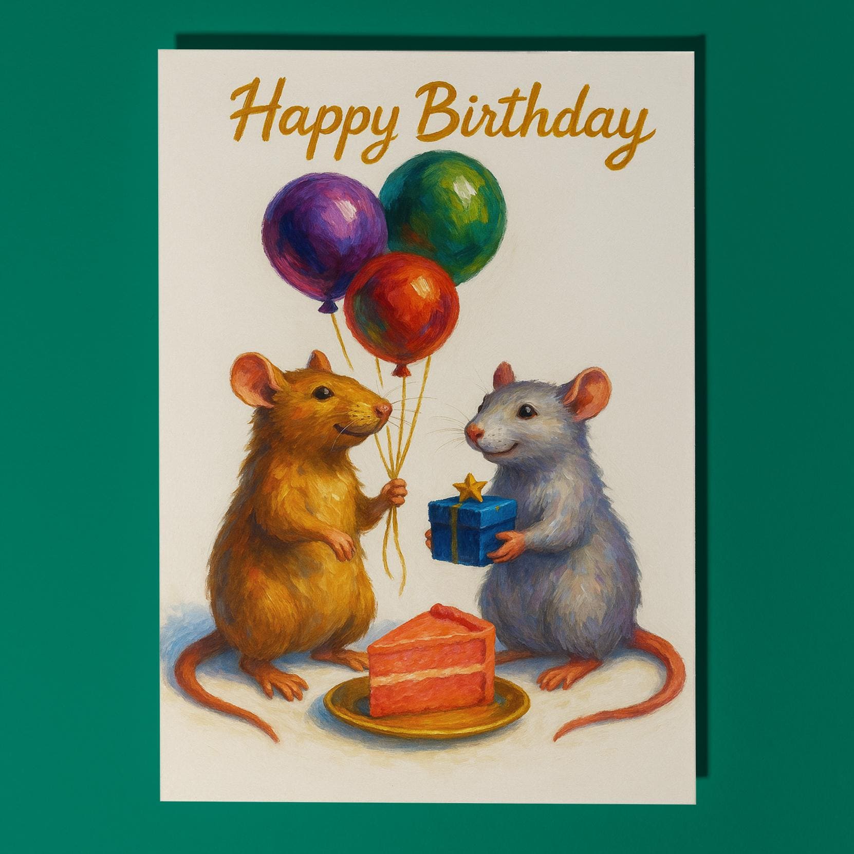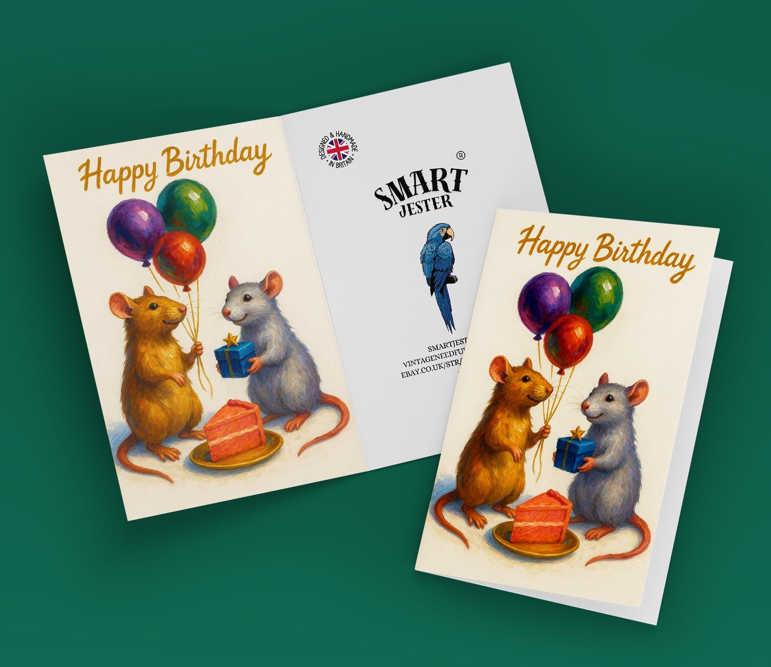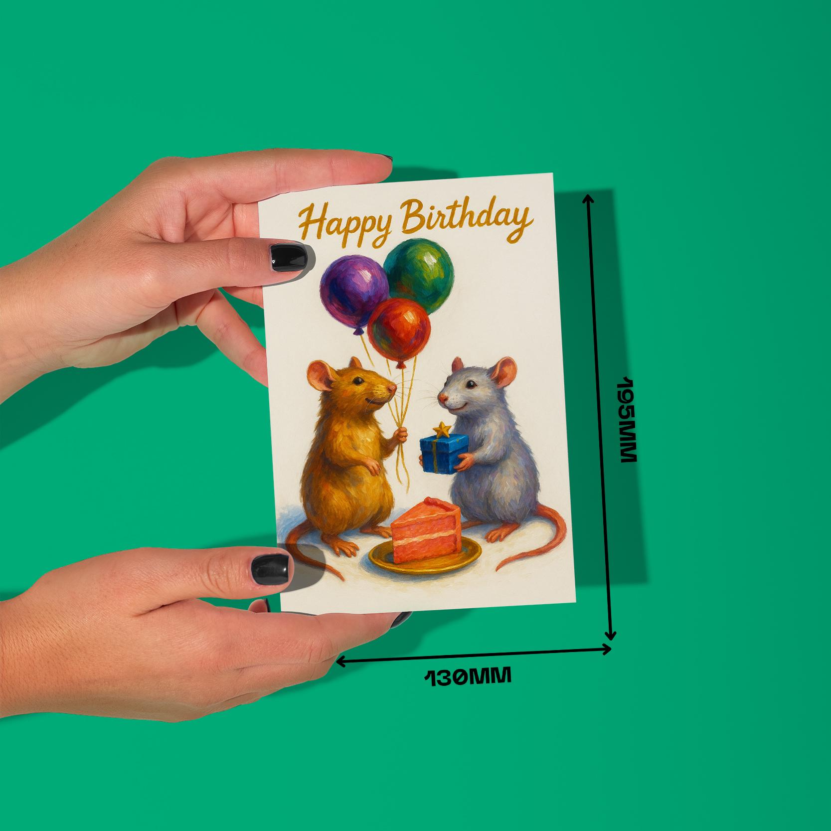 BLANK INTERIOR FOR A PERSONAL TOUCH: Our Rats collection - Two Happy Rats - We Brought Cake! - Happy Birthday Card and other whimsical designs feature a blank interior, giving you ample space to write a personal message from the heart. Perfect for any occasion, each card comes with a matching white envelope, making it easy to send your unique sentiments to loved ones