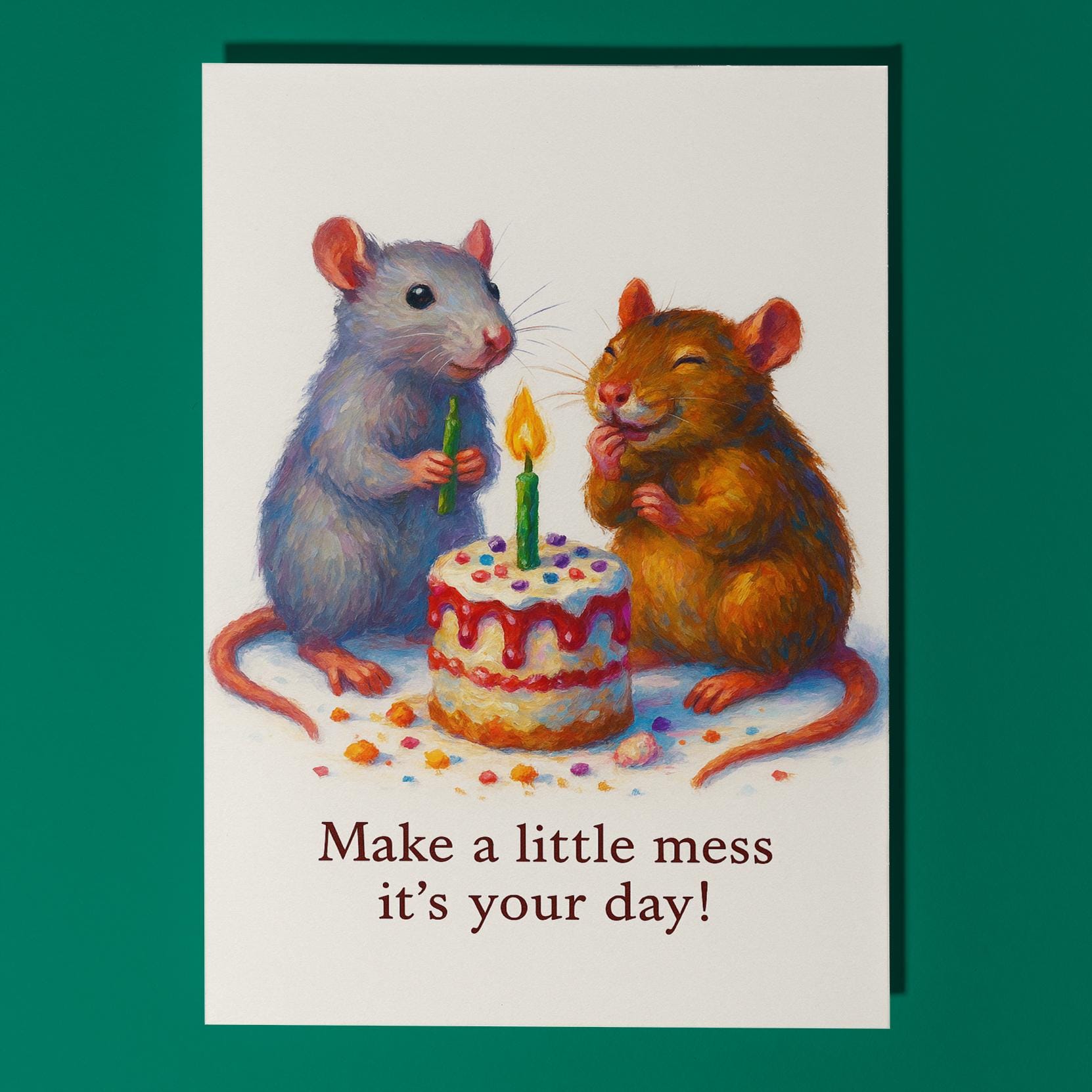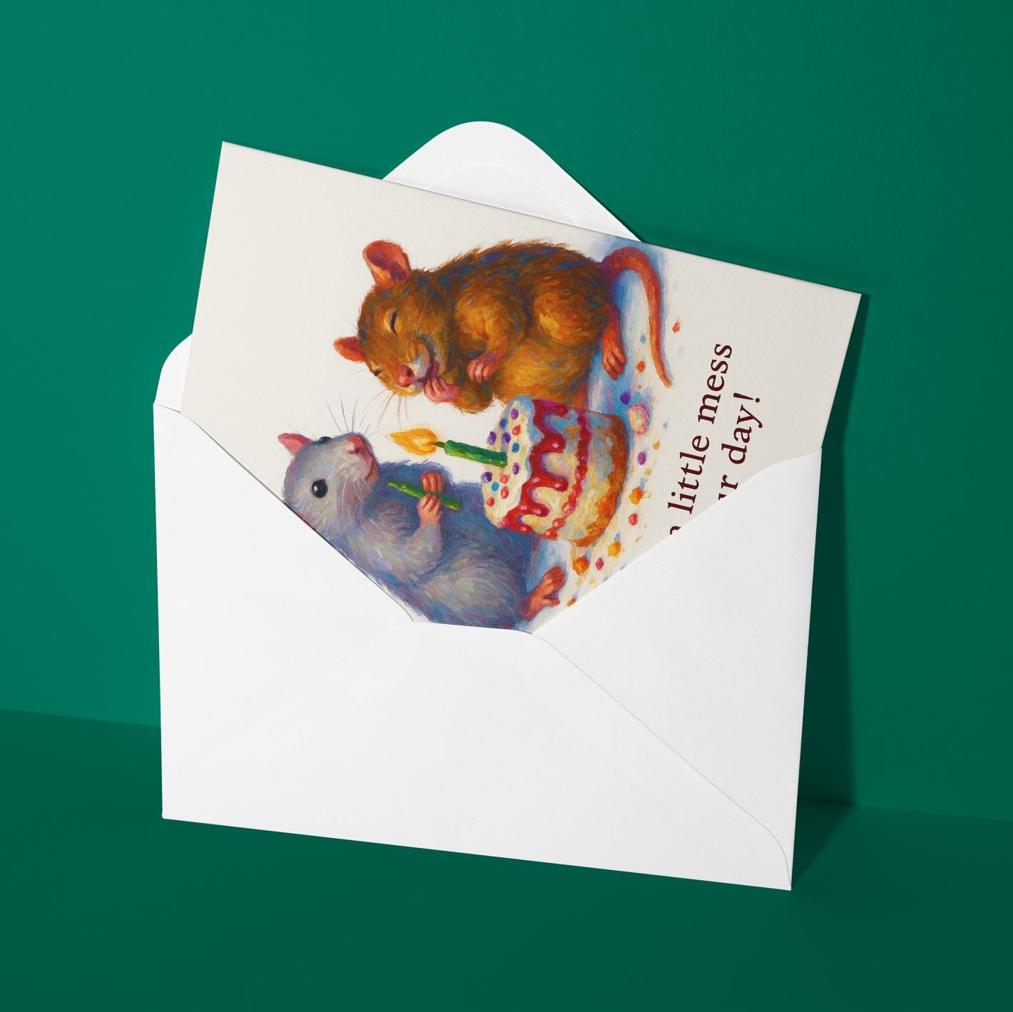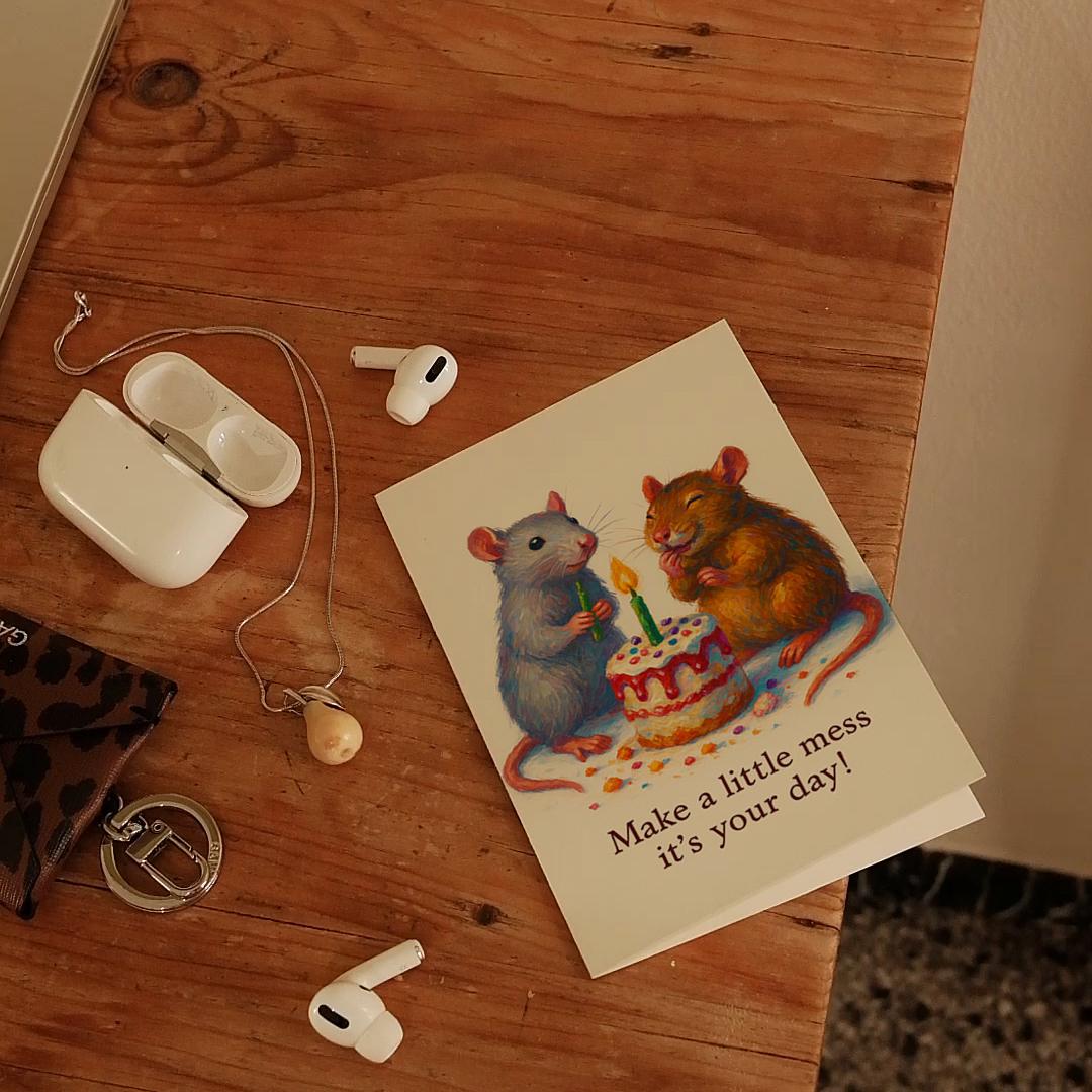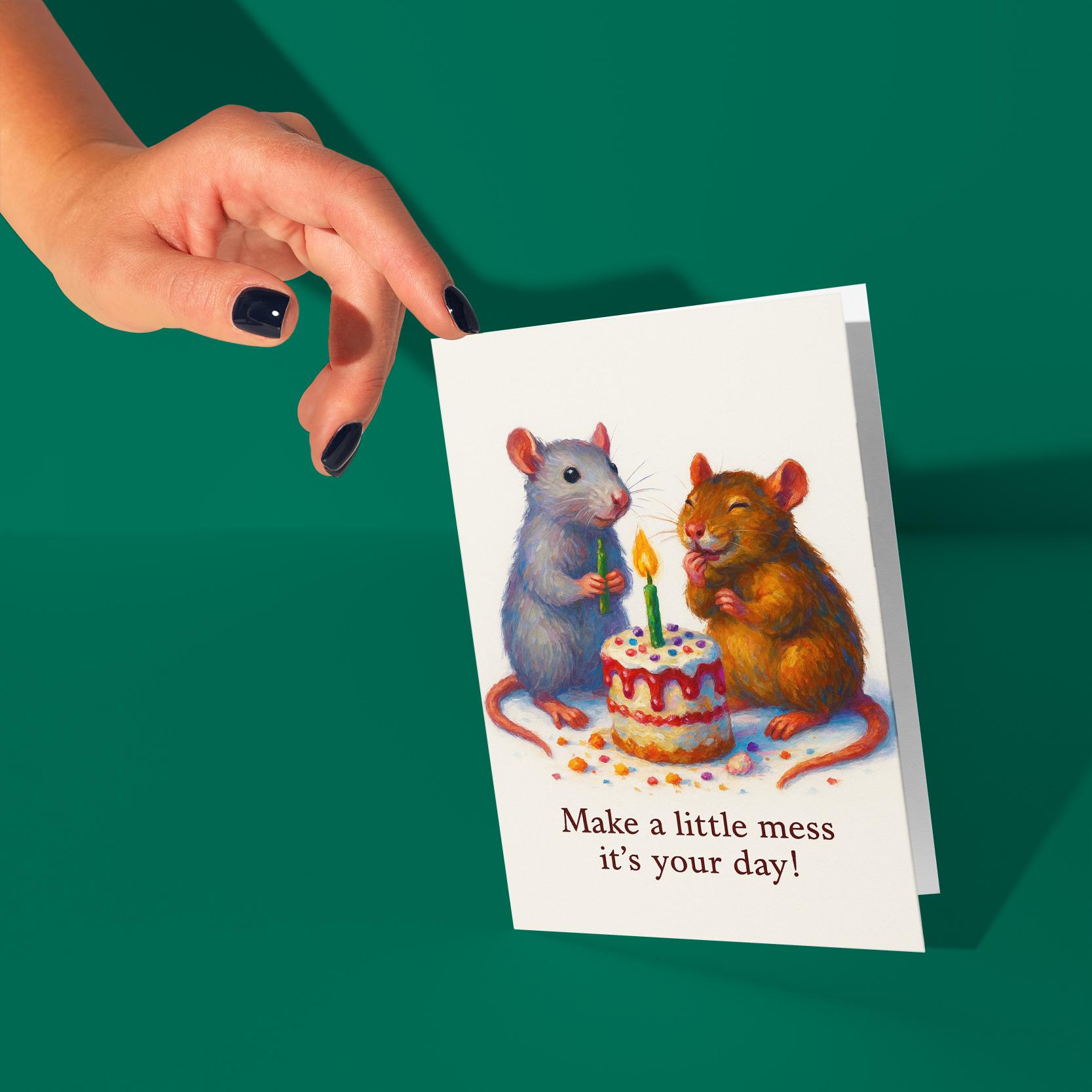 BLANK INTERIOR FOR A PERSONAL TOUCH: Our Rats collection - Two Happy Rats - Make a little mess it's your day! - Happy Birthday Card and other whimsical designs feature a blank interior, giving you ample space to write a personal message from the heart. Perfect for any occasion, each card comes with a matching white envelope, making it easy to send your unique sentiments to loved ones