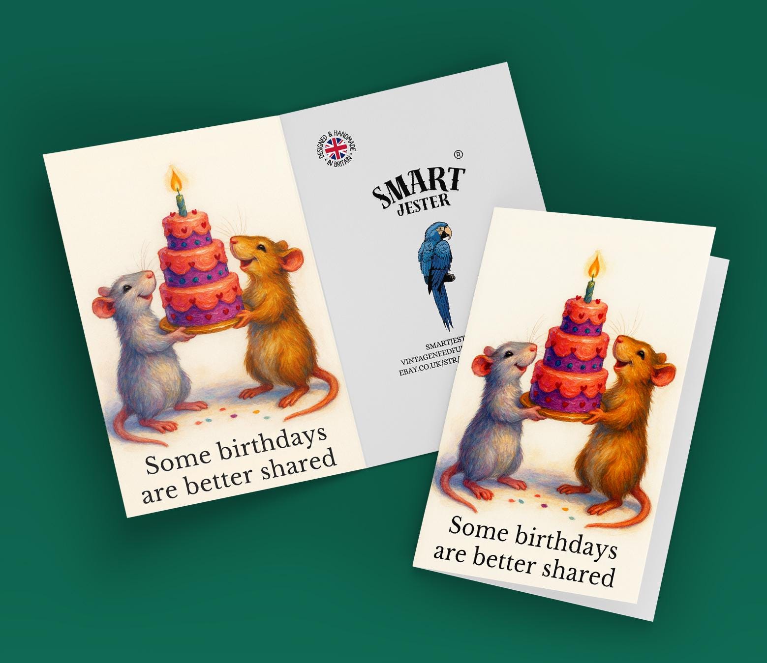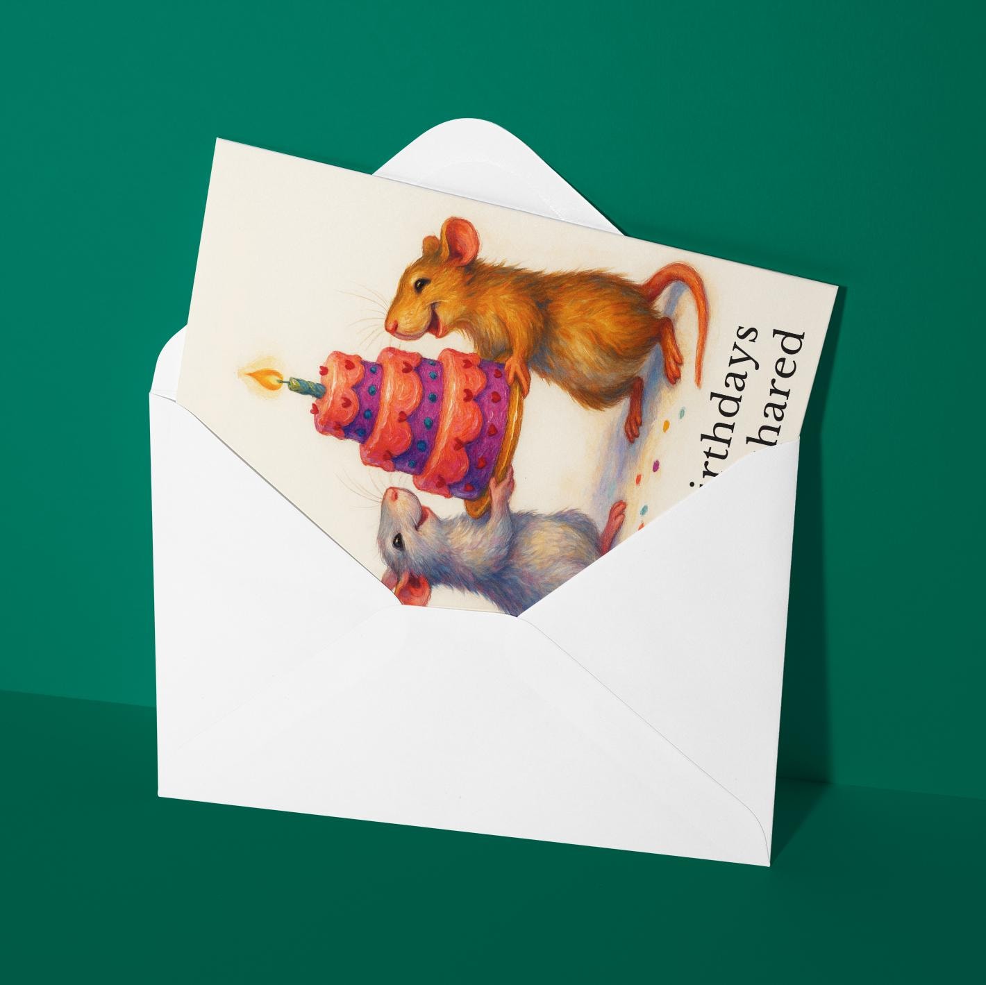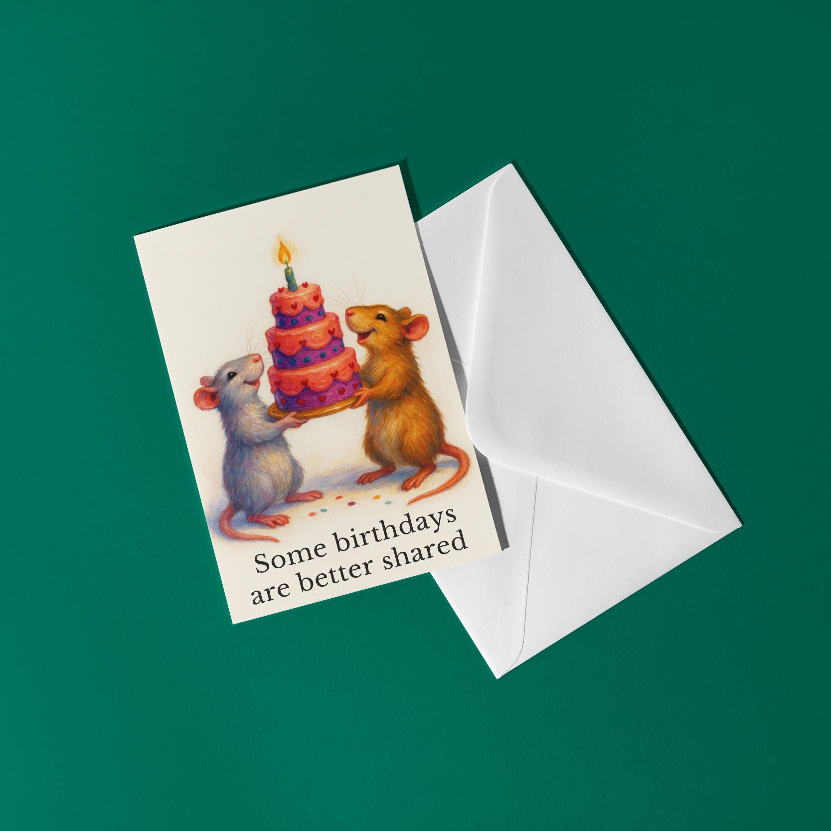BLANK INTERIOR FOR A PERSONAL TOUCH: Our Rats collection - Two Happy Rats - Some birthdays are better shared - Happy Birthday! Card and other whimsical designs feature a blank interior, giving you ample space to write a personal message from the heart. Perfect for any occasion, each card comes with a matching white envelope, making it easy to send your unique sentiments to loved ones