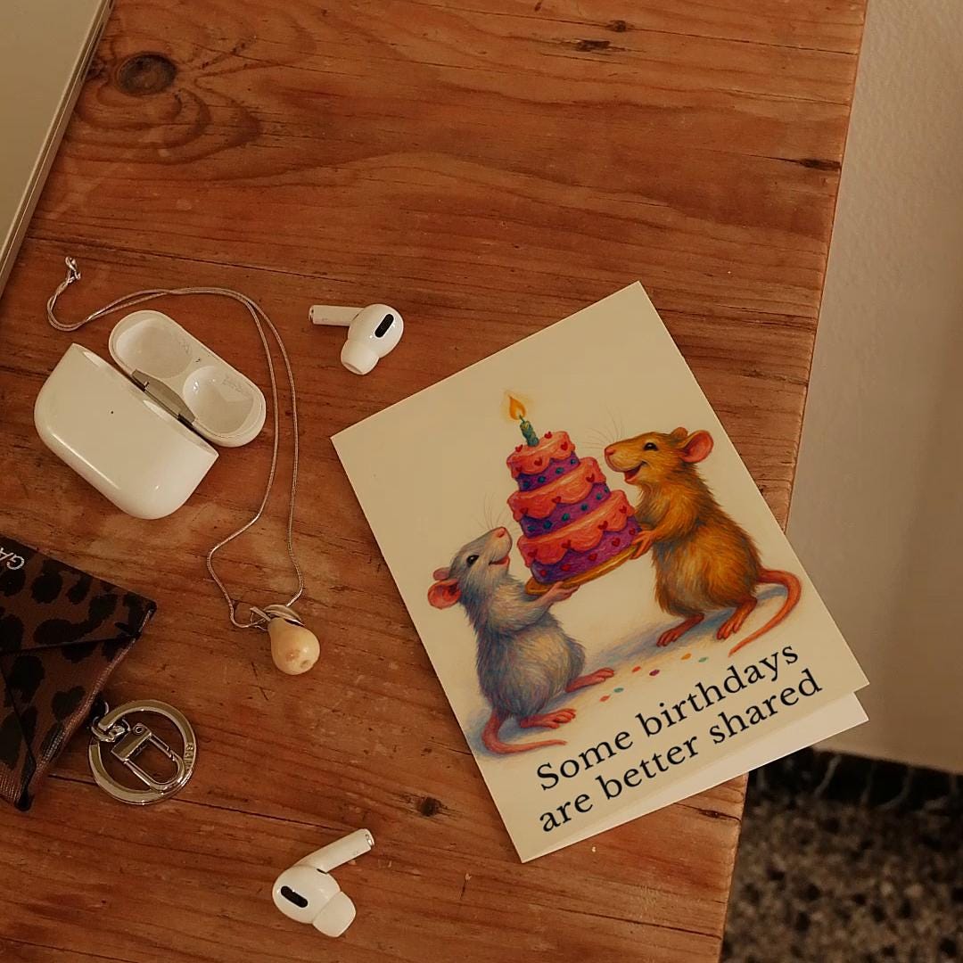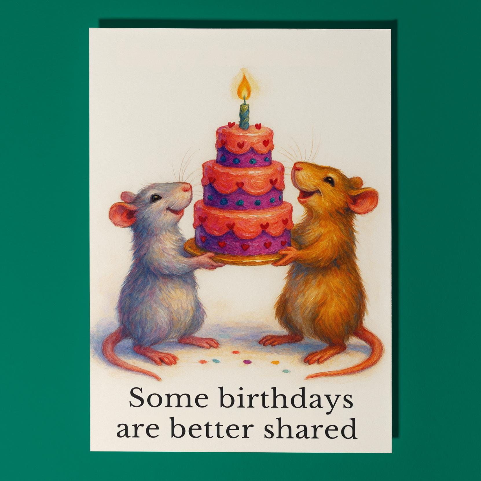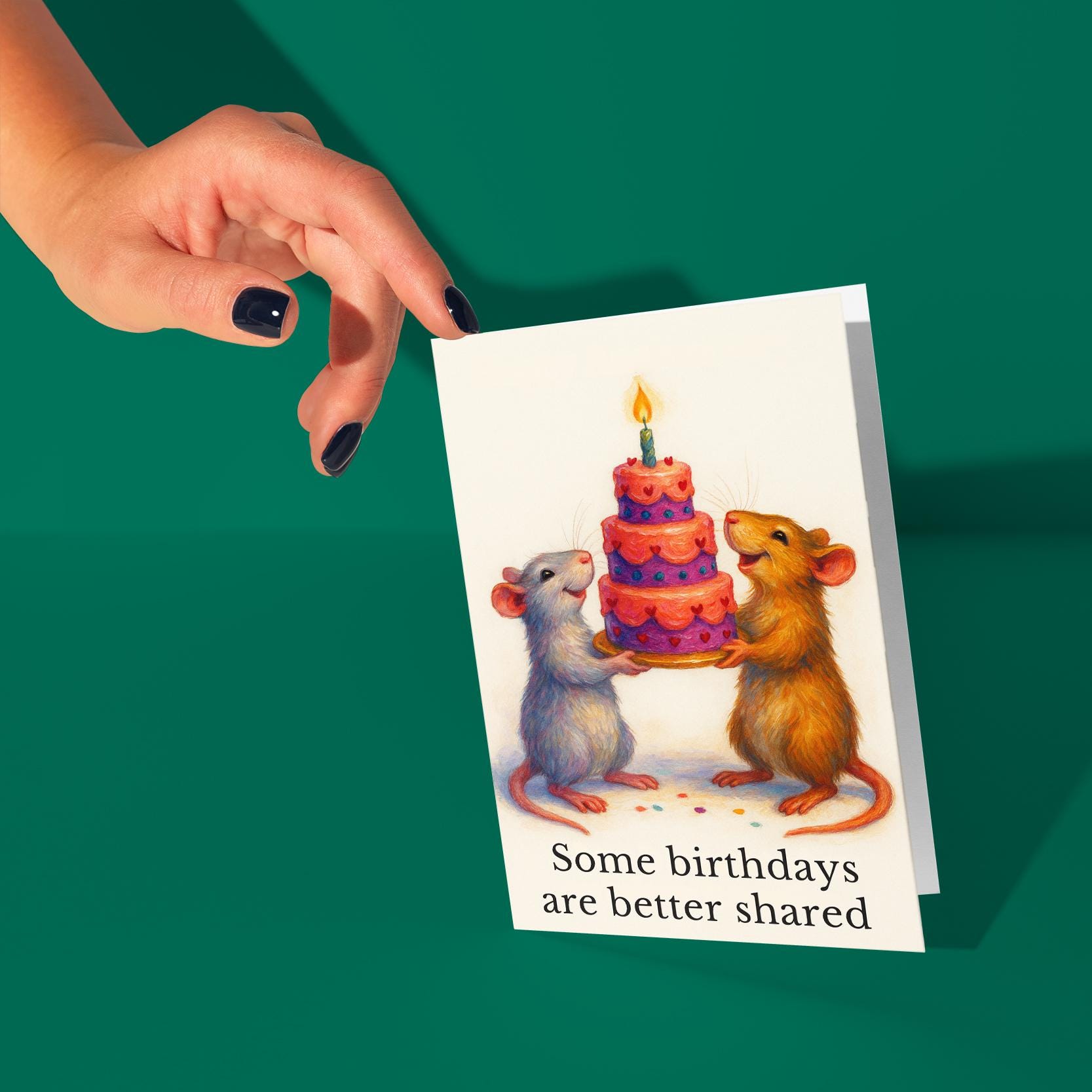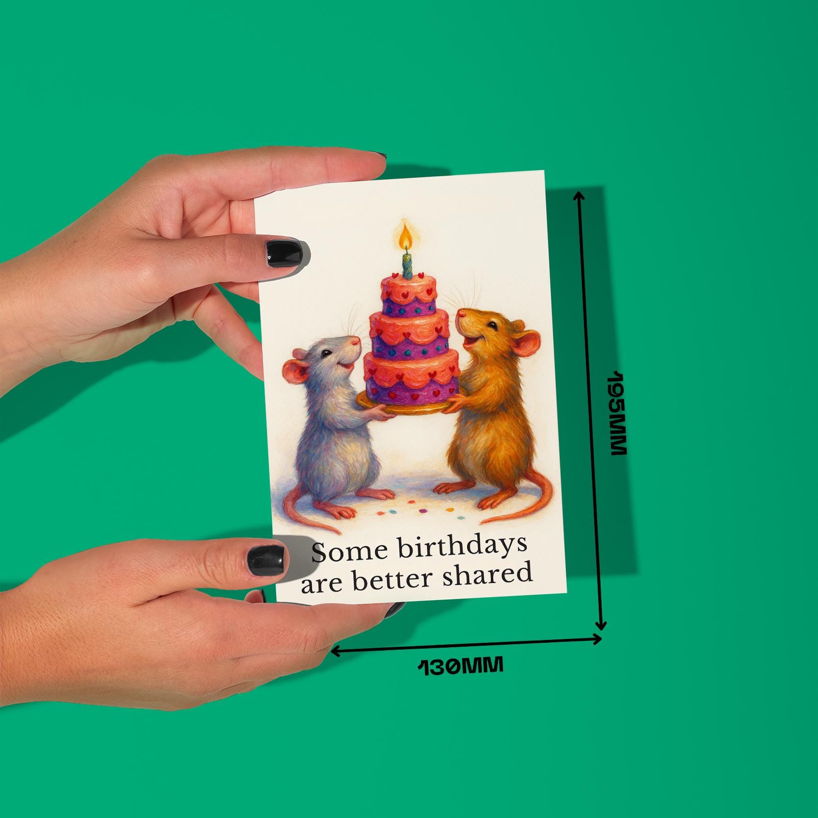 BLANK INTERIOR FOR A PERSONAL TOUCH: Our Rats collection - Two Happy Rats - Some birthdays are better shared - Happy Birthday! Card and other whimsical designs feature a blank interior, giving you ample space to write a personal message from the heart. Perfect for any occasion, each card comes with a matching white envelope, making it easy to send your unique sentiments to loved ones