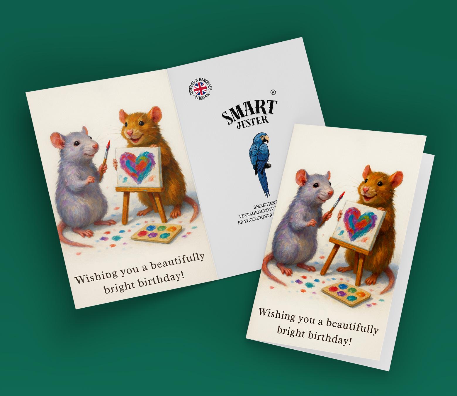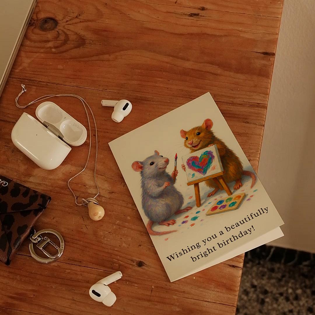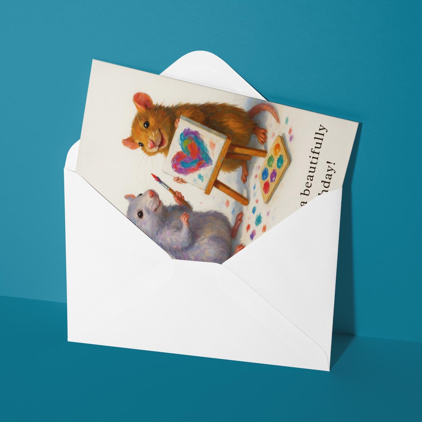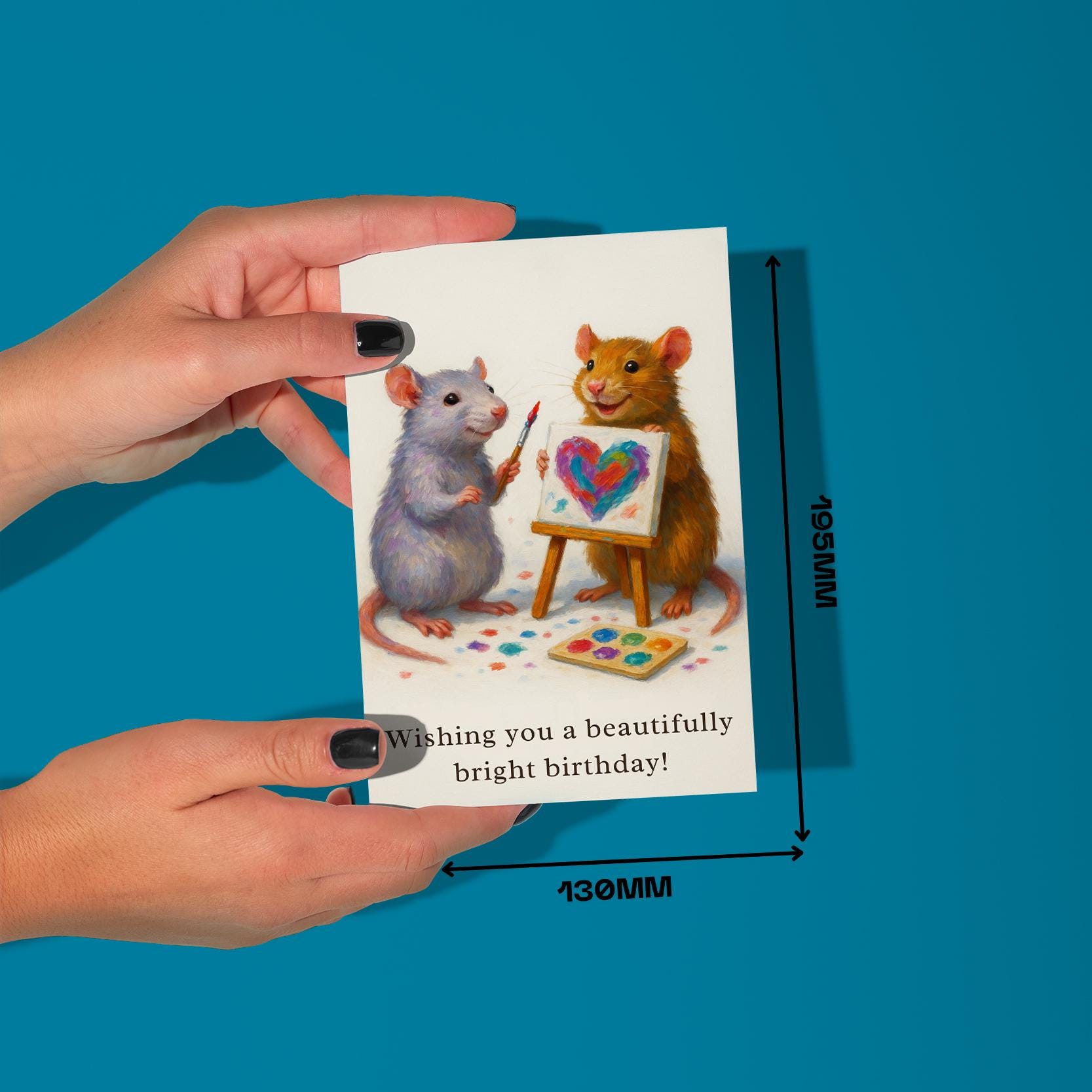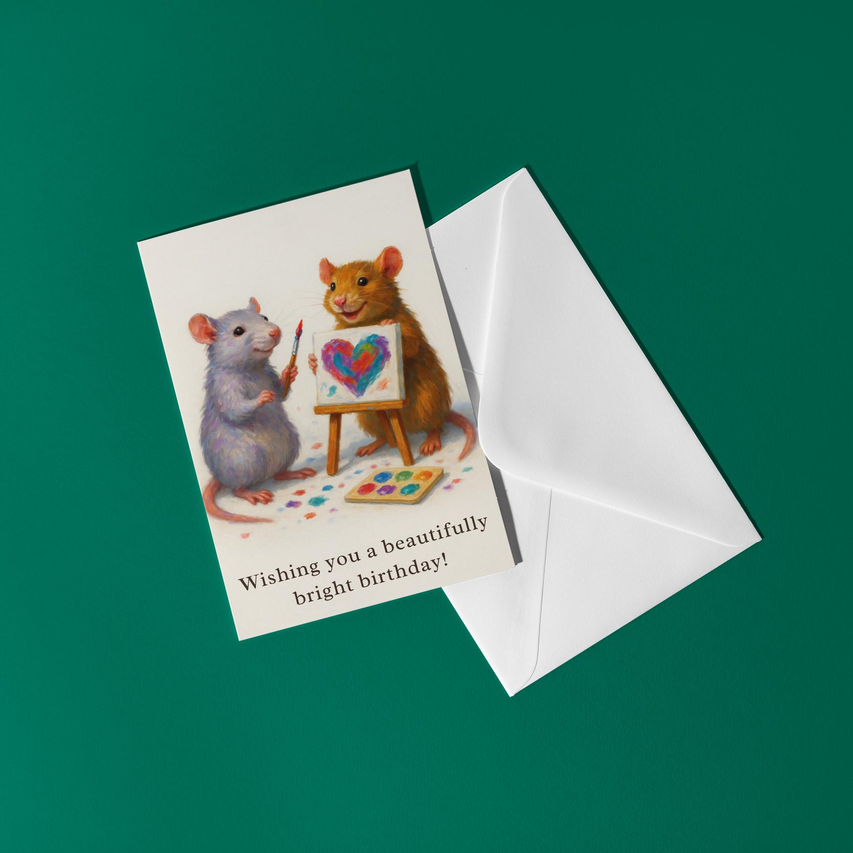 BLANK INTERIOR FOR A PERSONAL TOUCH: Our Rats collection - Two Happy Rats - Wishing you a beautifully bright birthday! Card and other whimsical designs feature a blank interior, giving you ample space to write a personal message from the heart. Perfect for any occasion, each card comes with a matching white envelope, making it easy to send your unique sentiments to loved ones