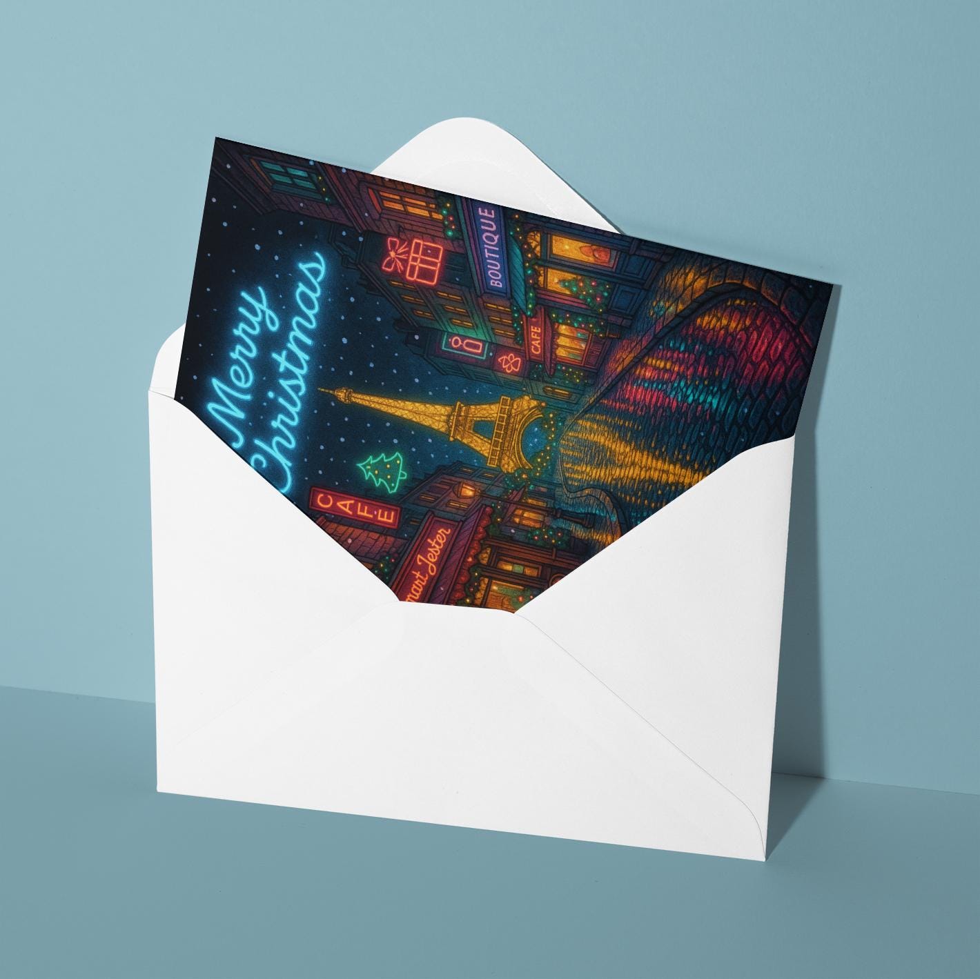 BLANK INTERIOR FOR A PERSONAL TOUCH: Part of the - Cities Collection - Festive Night in Paris - Eiffel Tower - Merry Christmas! Card and other whimsical designs feature a blank interior, giving you ample space to write a personal message from the heart. Perfect for any occasion, each card comes with a matching white envelope, making it easy to send your unique sentiments to loved ones.