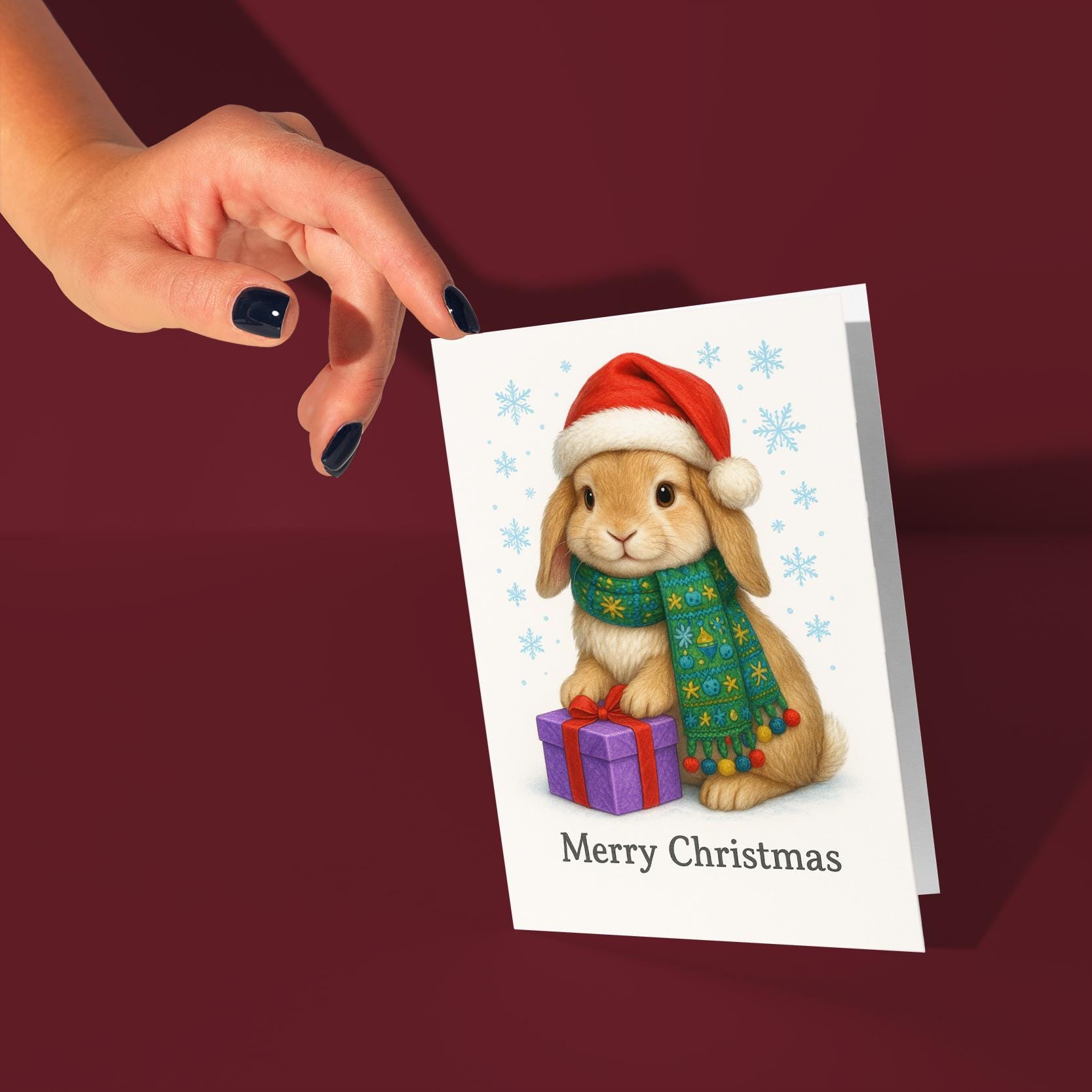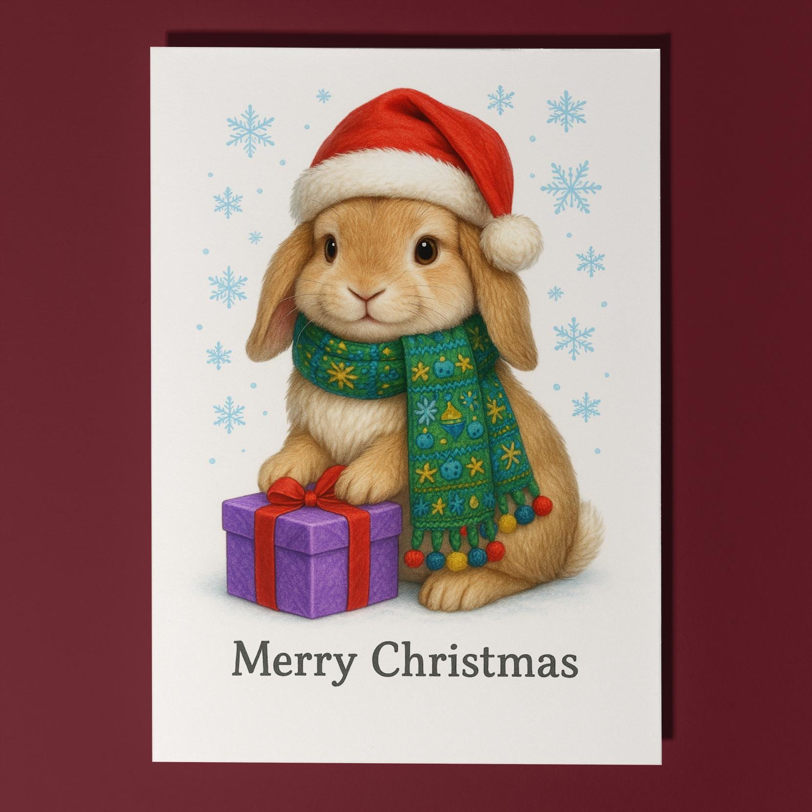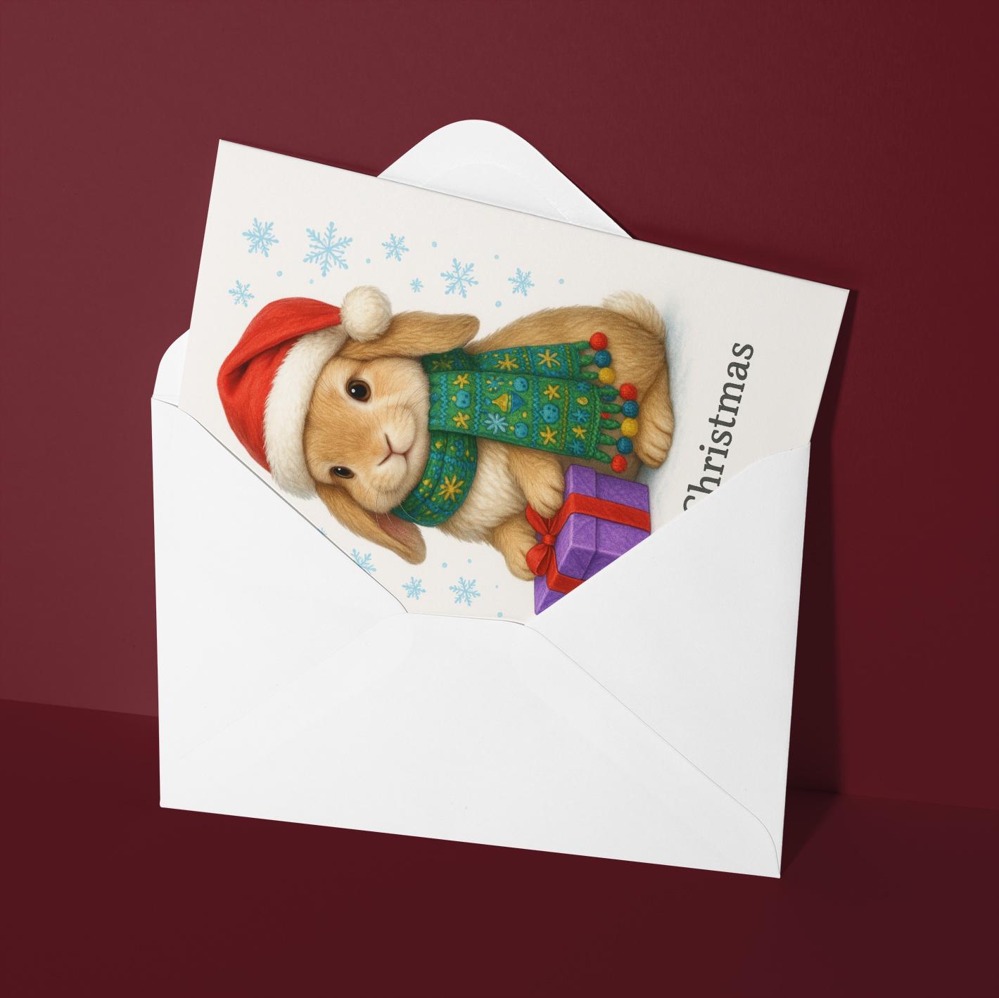 BLANK INTERIOR FOR A PERSONAL TOUCH: Part of the - Fluffy Christmas Crew Collection - Festive Bunny with a Gift - Merry Christmas! Card and other whimsical designs feature a blank interior, giving you ample space to write a personal message from the heart. Perfect for any occasion, each card comes with a matching white envelope, making it easy to send your unique sentiments to loved ones.