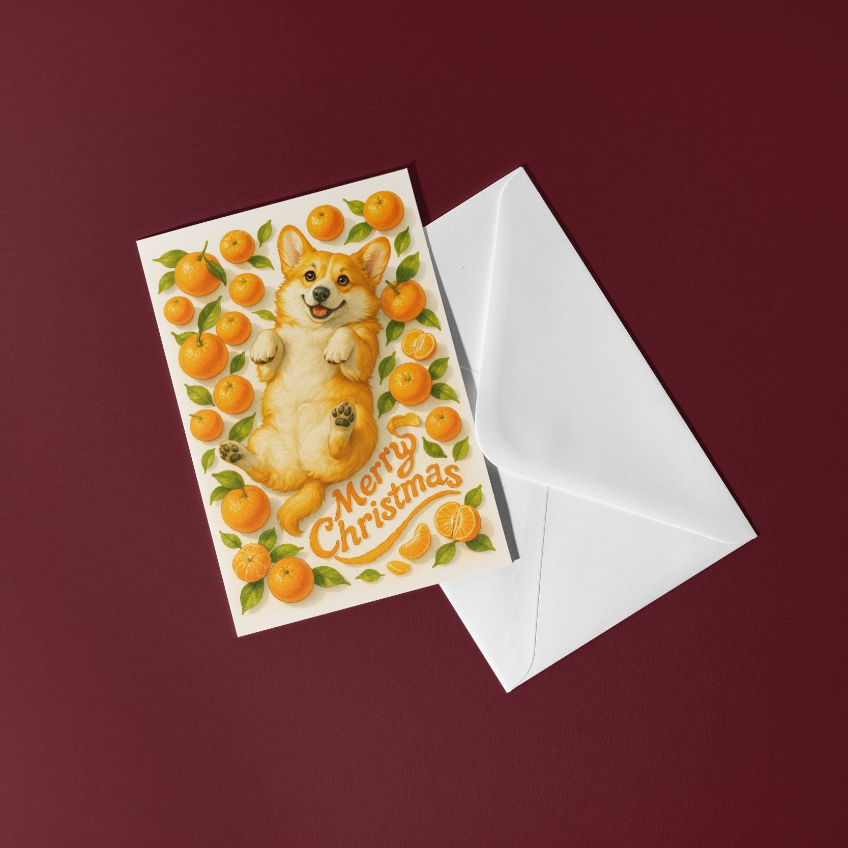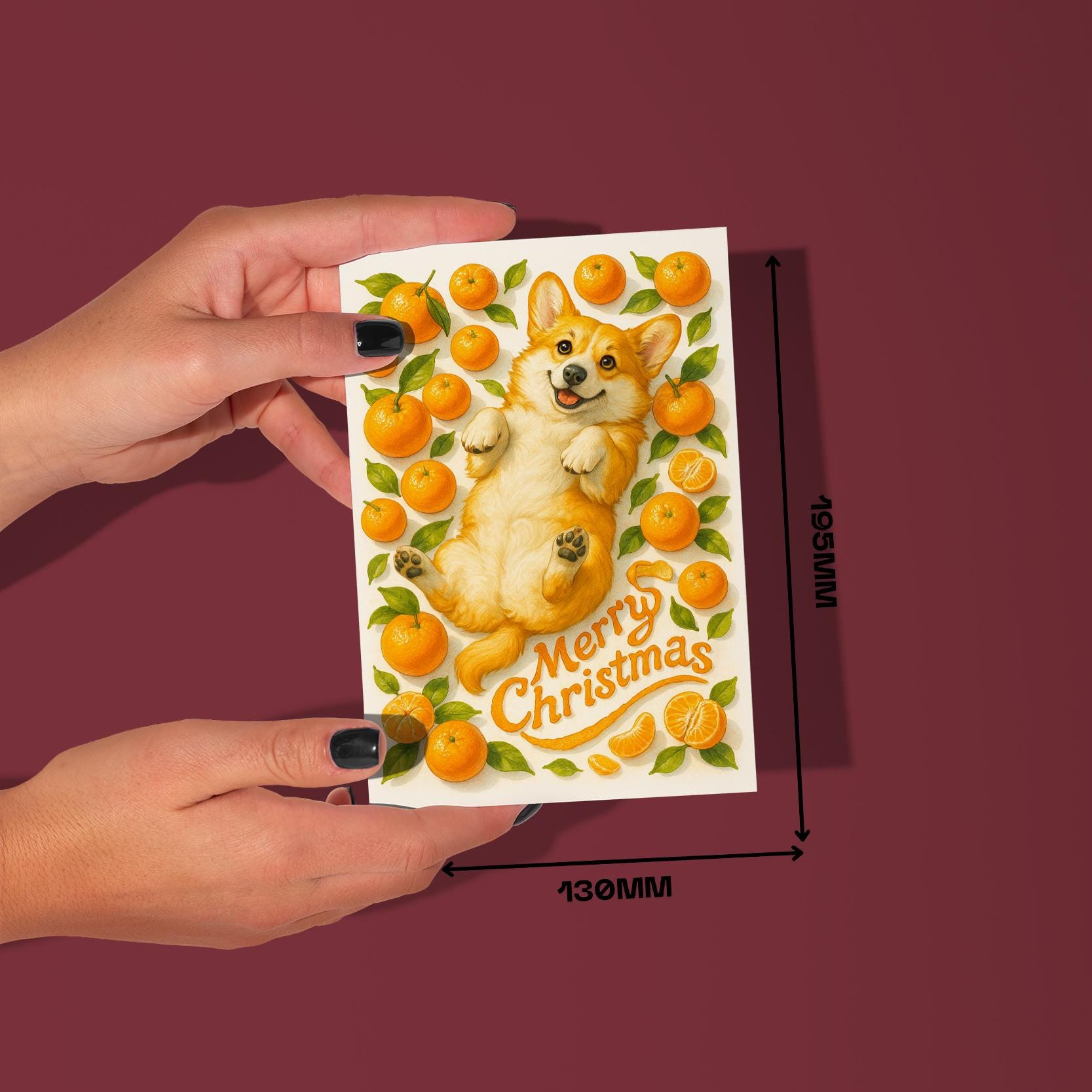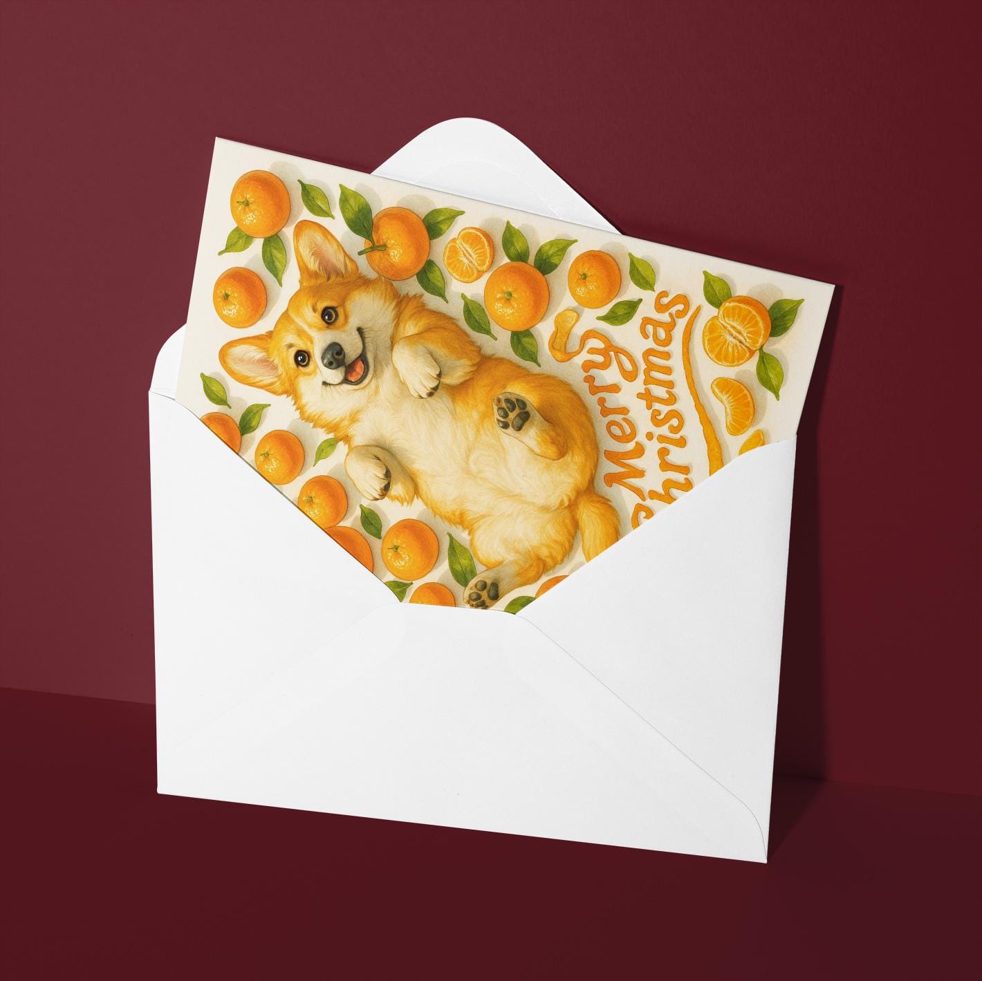 BLANK INTERIOR FOR A PERSONAL TOUCH: Our Fruity Friends Collection – Sweet Clementine Corgi dog - Merry Christmas! card and other whimsical designs feature a blank interior, giving you ample space to write a personal message from the heart. Perfect for any occasion, each card comes with a matching white envelope, making it easy to send your unique sentiments to loved ones.