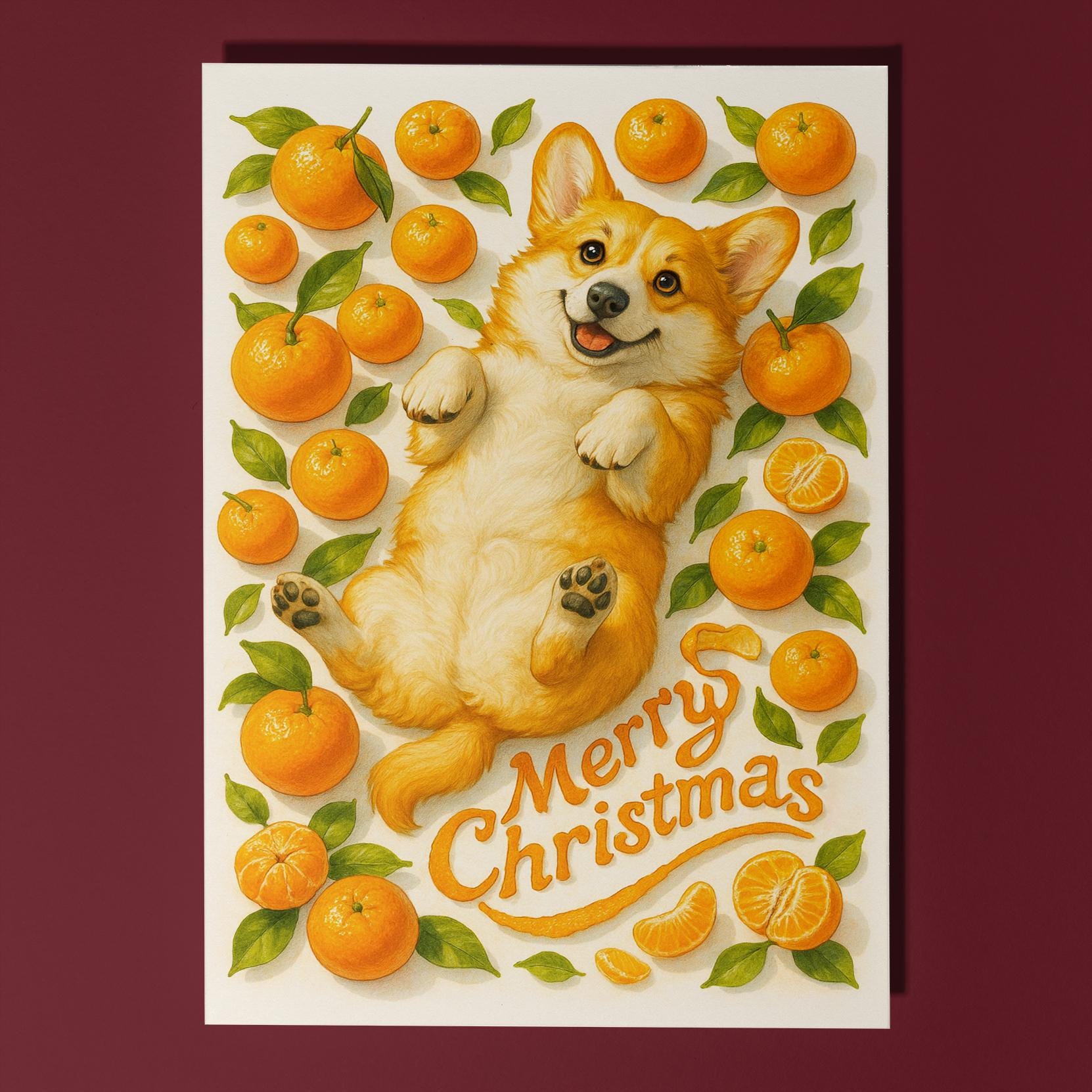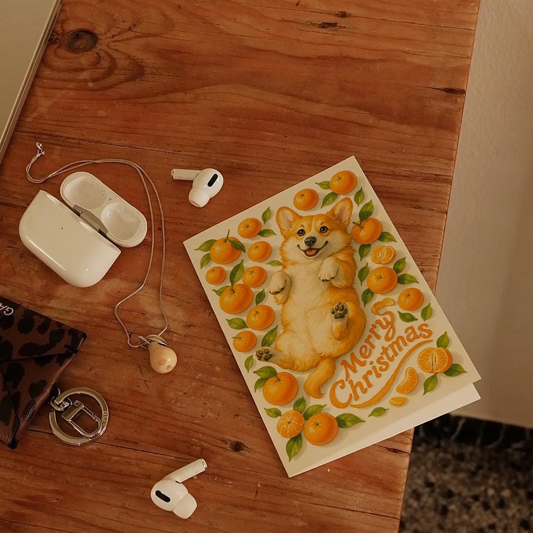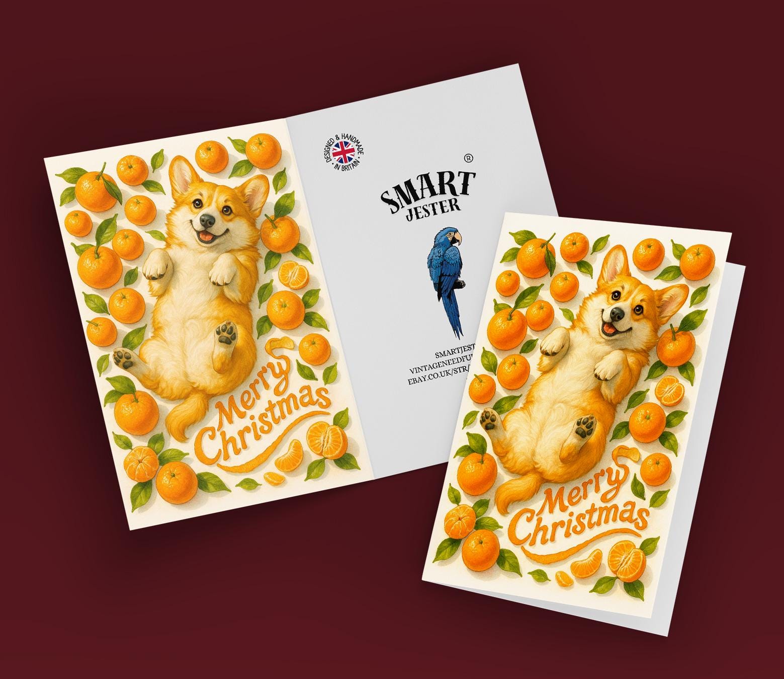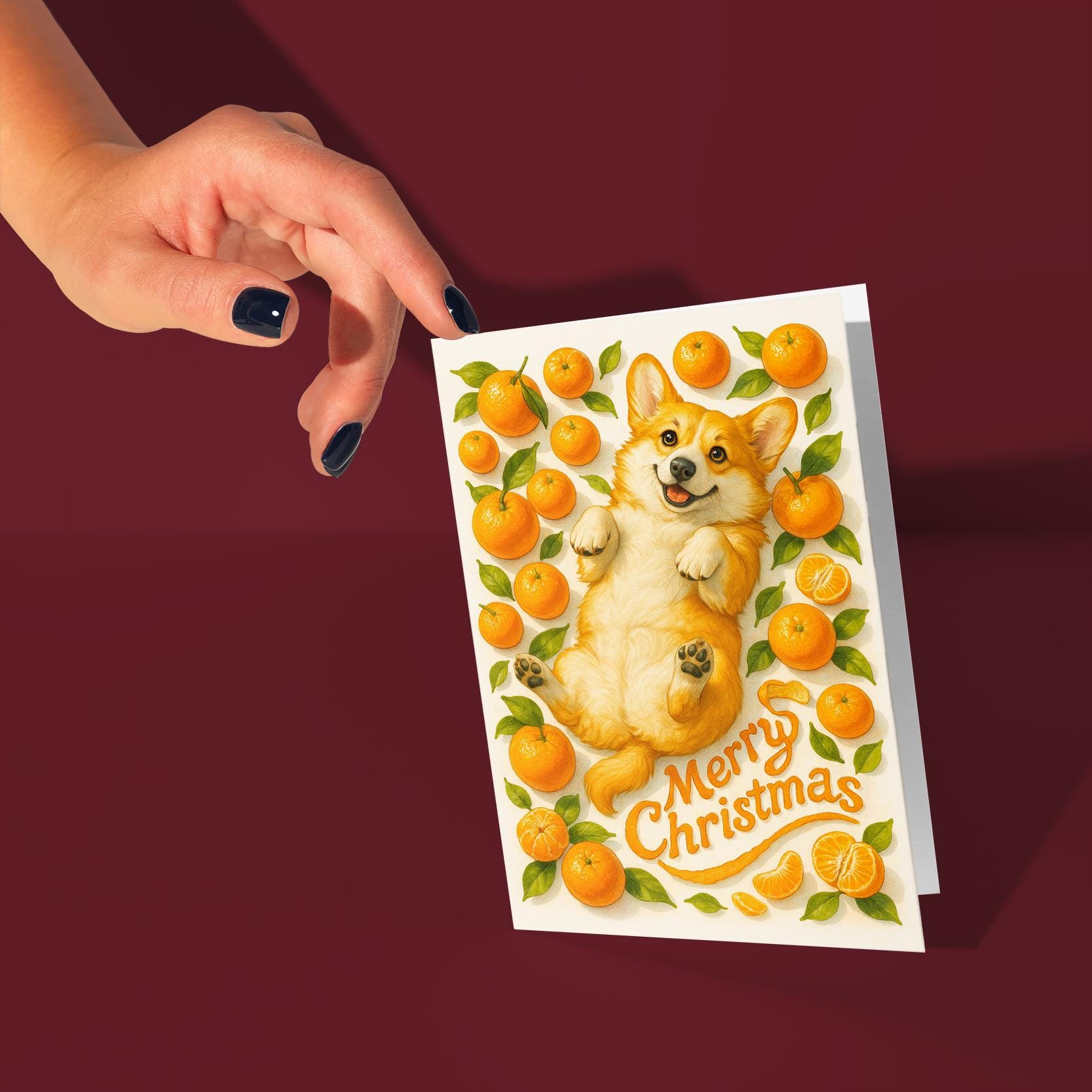 BLANK INTERIOR FOR A PERSONAL TOUCH: Our Fruity Friends Collection – Sweet Clementine Corgi dog - Merry Christmas! card and other whimsical designs feature a blank interior, giving you ample space to write a personal message from the heart. Perfect for any occasion, each card comes with a matching white envelope, making it easy to send your unique sentiments to loved ones.
