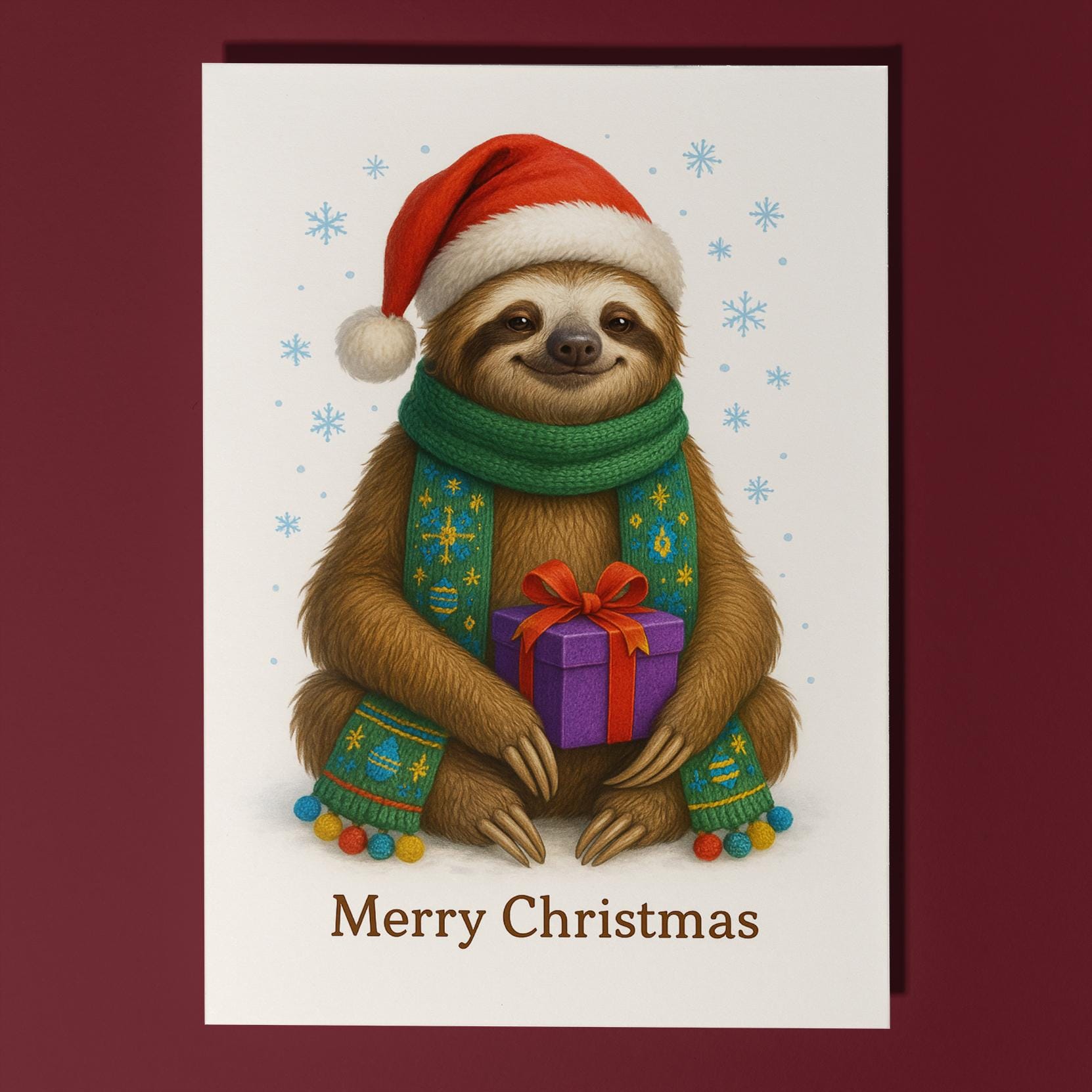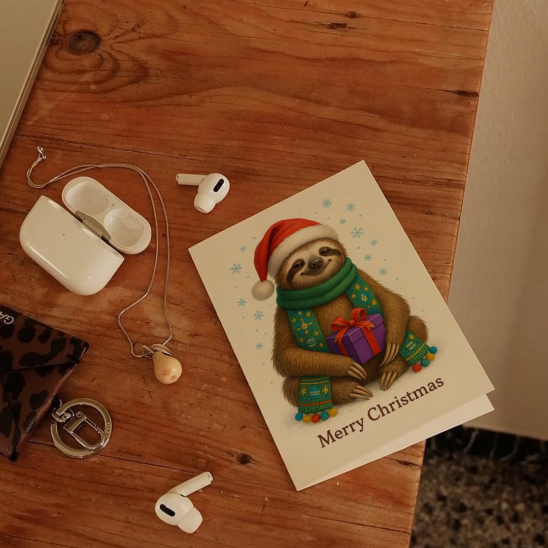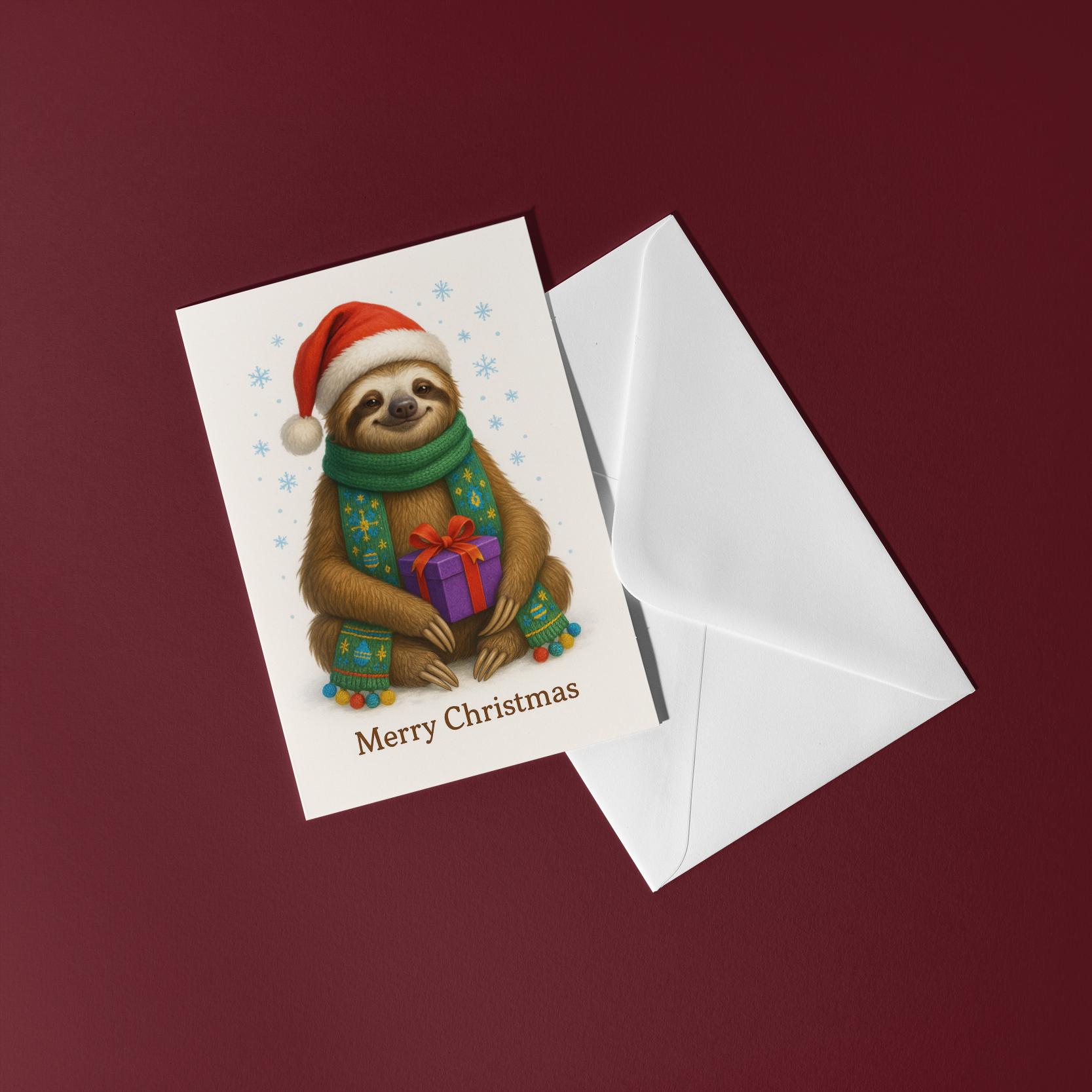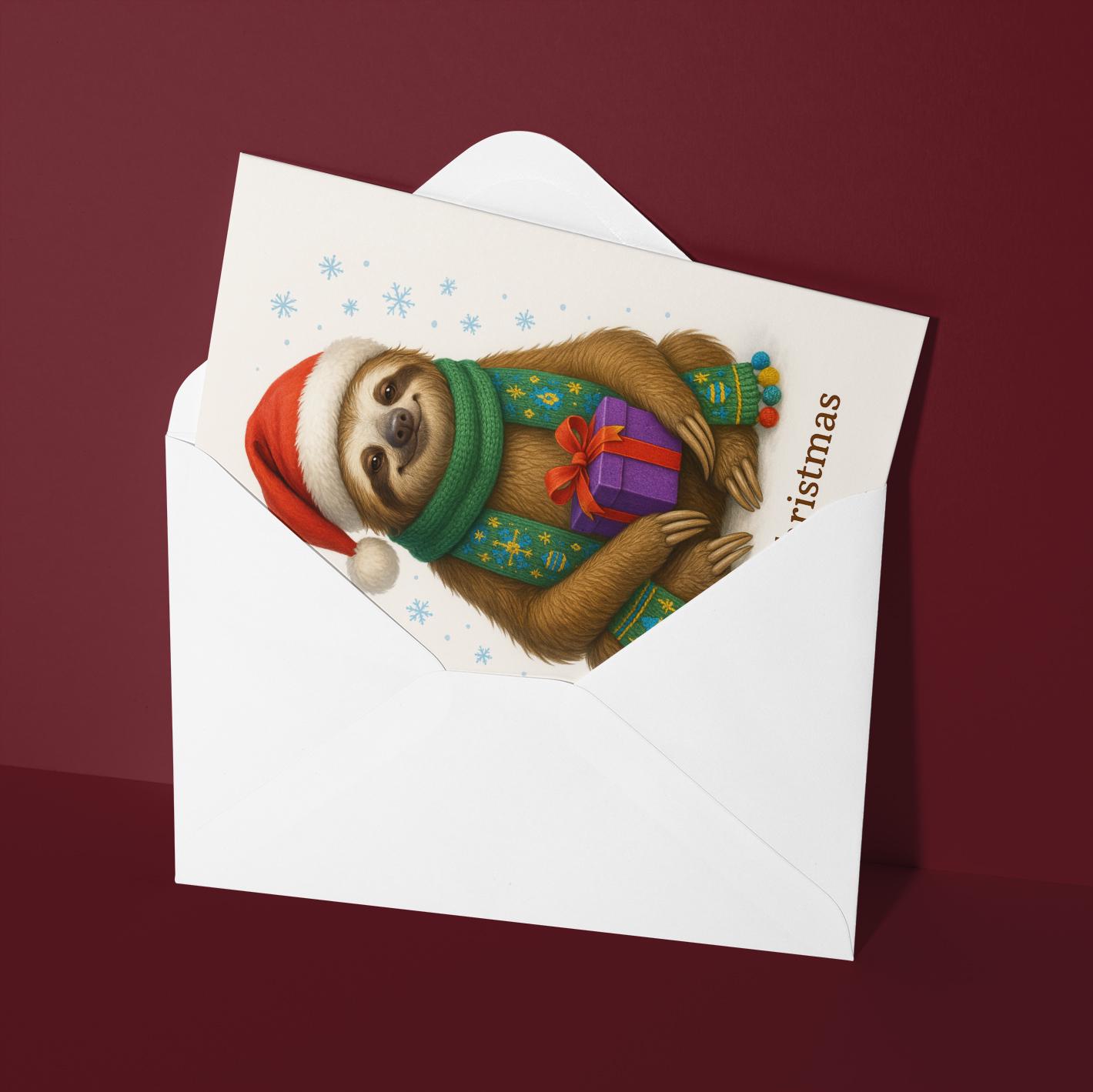 BLANK INTERIOR FOR A PERSONAL TOUCH: Part of the - Fluffy Christmas Crew Collection - Santa’s Slowest Helper Sloth with a Gift - Merry Christmas! Card and other whimsical designs feature a blank interior, giving you ample space to write a personal message from the heart. Perfect for any occasion, each card comes with a matching white envelope, making it easy to send your unique sentiments to loved ones.