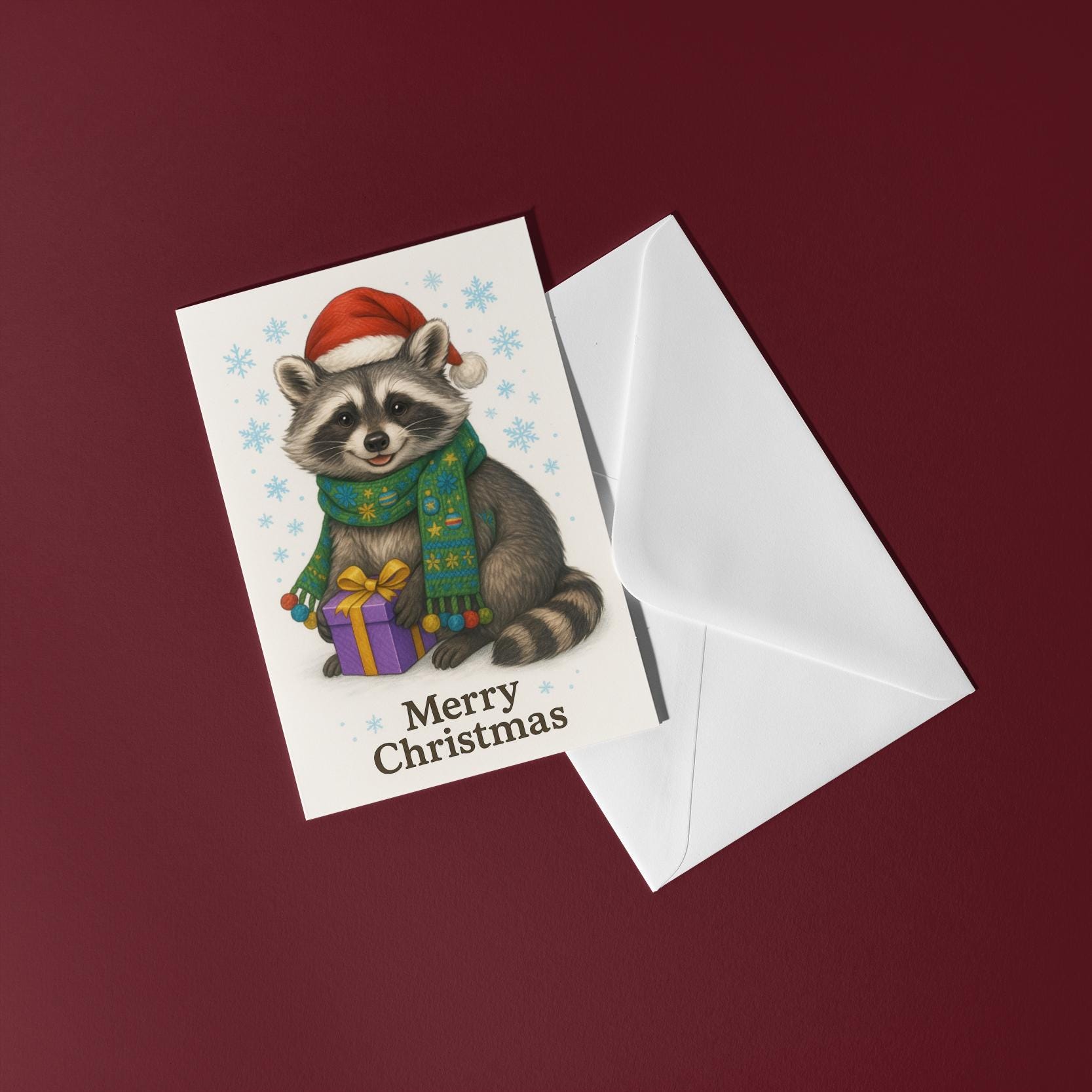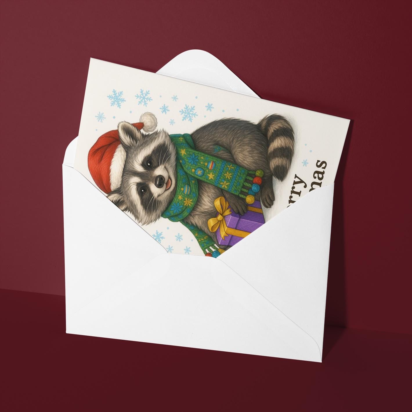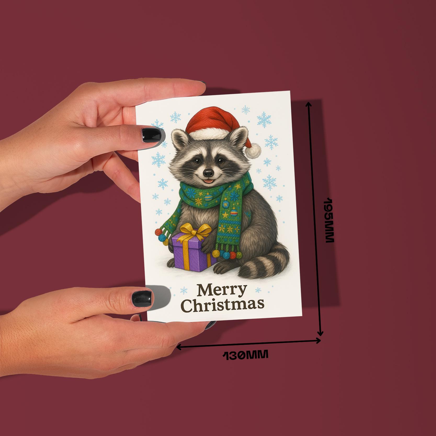BLANK INTERIOR FOR A PERSONAL TOUCH: Part of the - Fluffy Christmas Crew Collection - Santa’s Little Bandit Racoon with a Gift - Merry Christmas! Card and other whimsical designs feature a blank interior, giving you ample space to write a personal message from the heart. Perfect for any occasion, each card comes with a matching white envelope, making it easy to send your unique sentiments to loved ones.