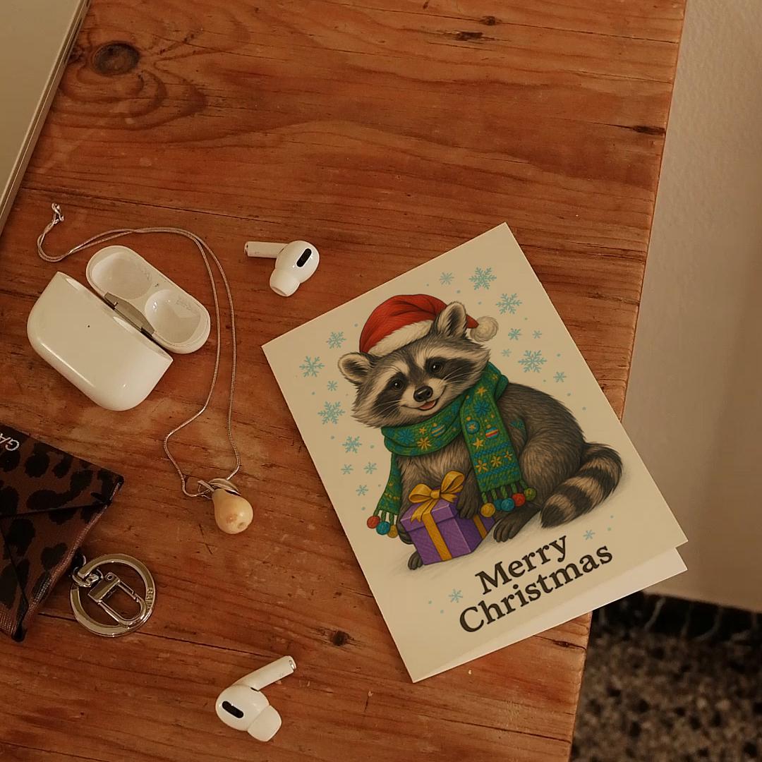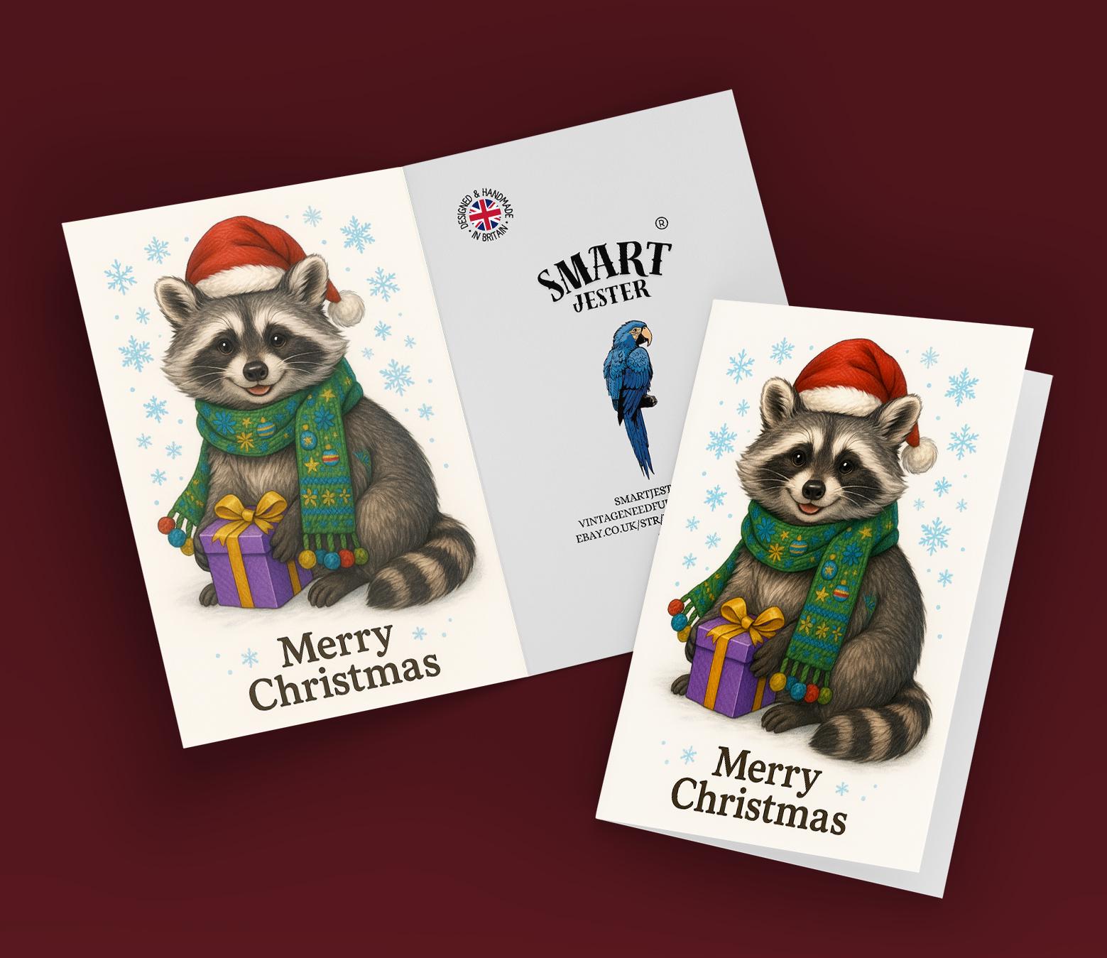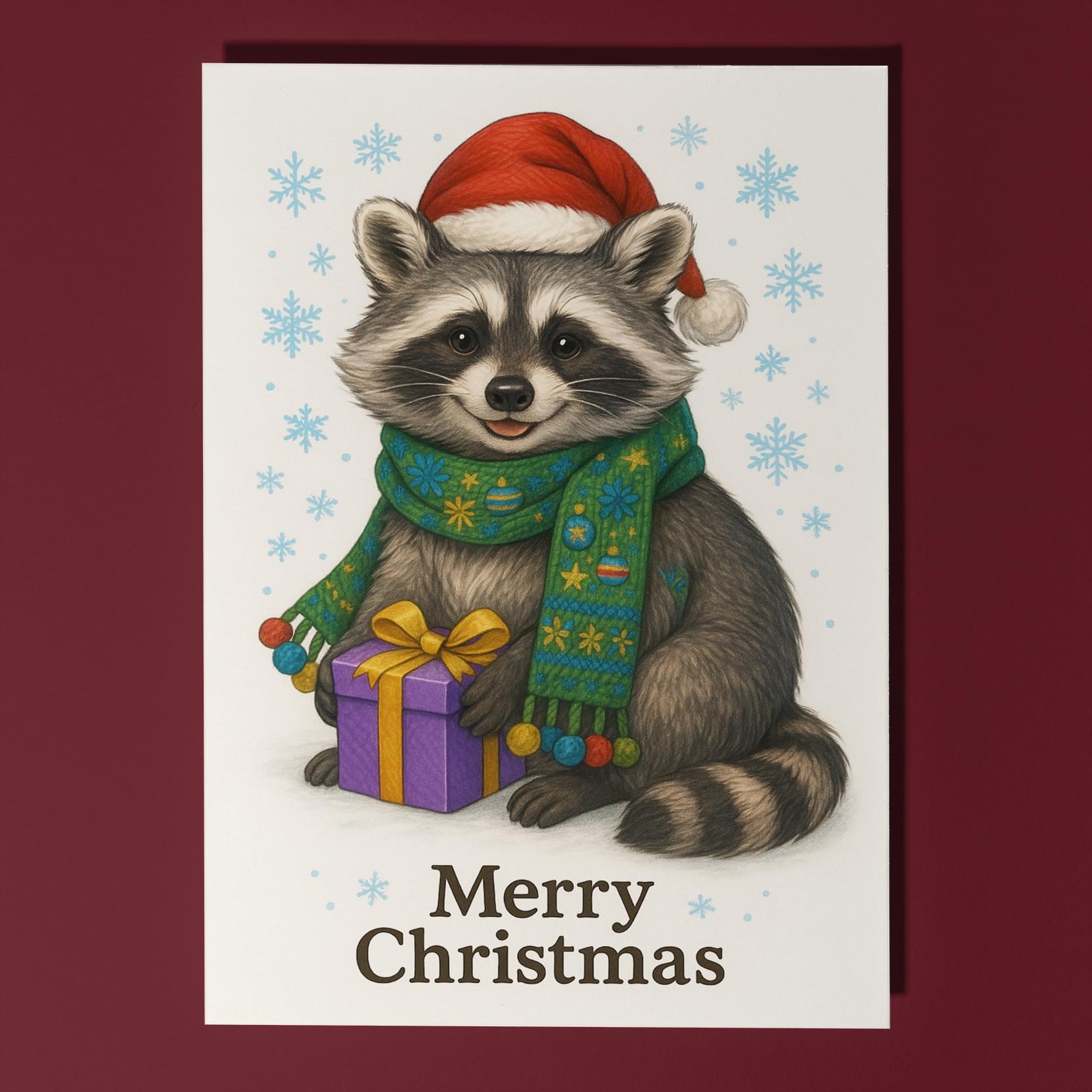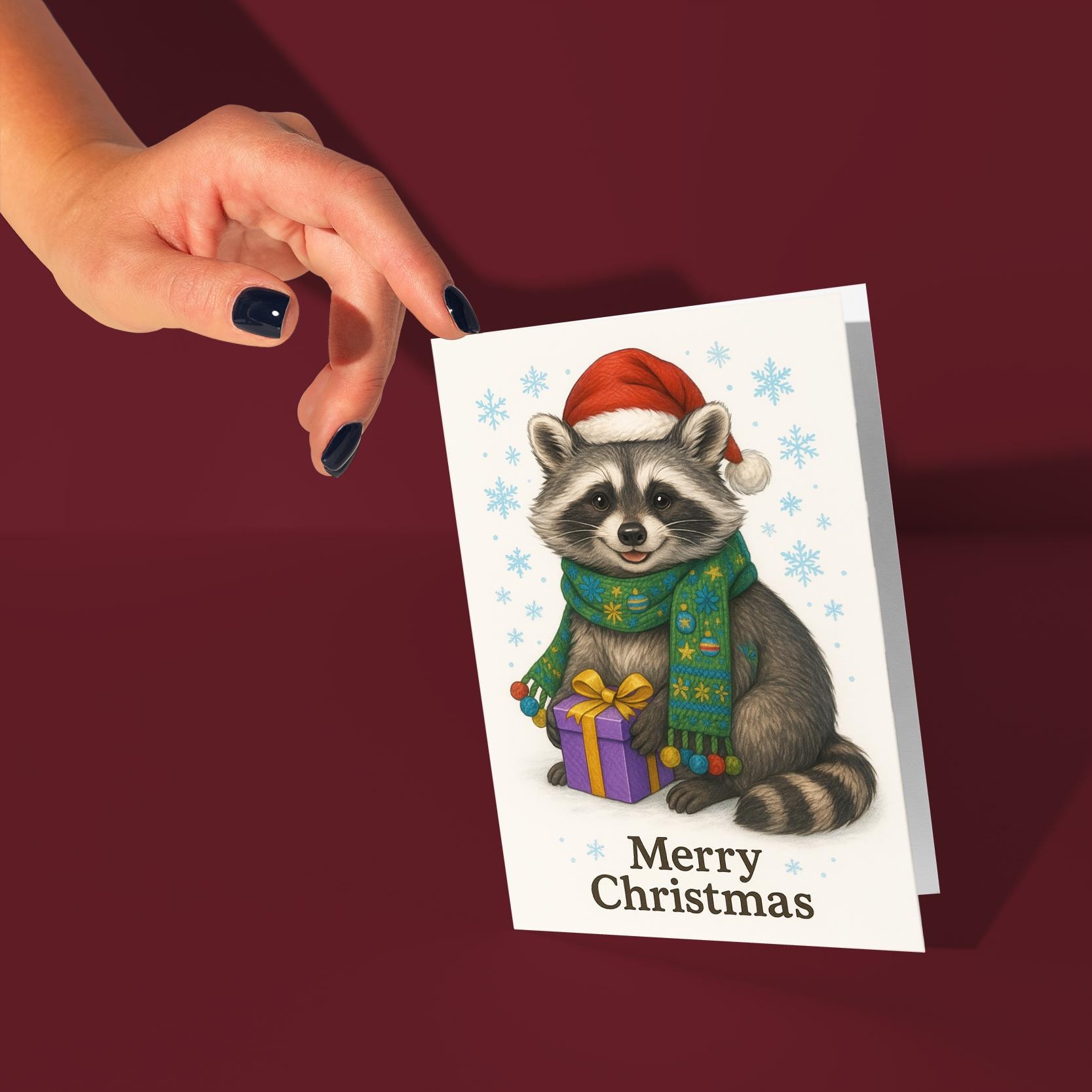BLANK INTERIOR FOR A PERSONAL TOUCH: Part of the - Fluffy Christmas Crew Collection - Santa’s Little Bandit Racoon with a Gift - Merry Christmas! Card and other whimsical designs feature a blank interior, giving you ample space to write a personal message from the heart. Perfect for any occasion, each card comes with a matching white envelope, making it easy to send your unique sentiments to loved ones.