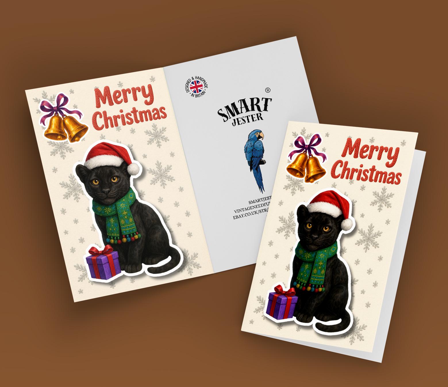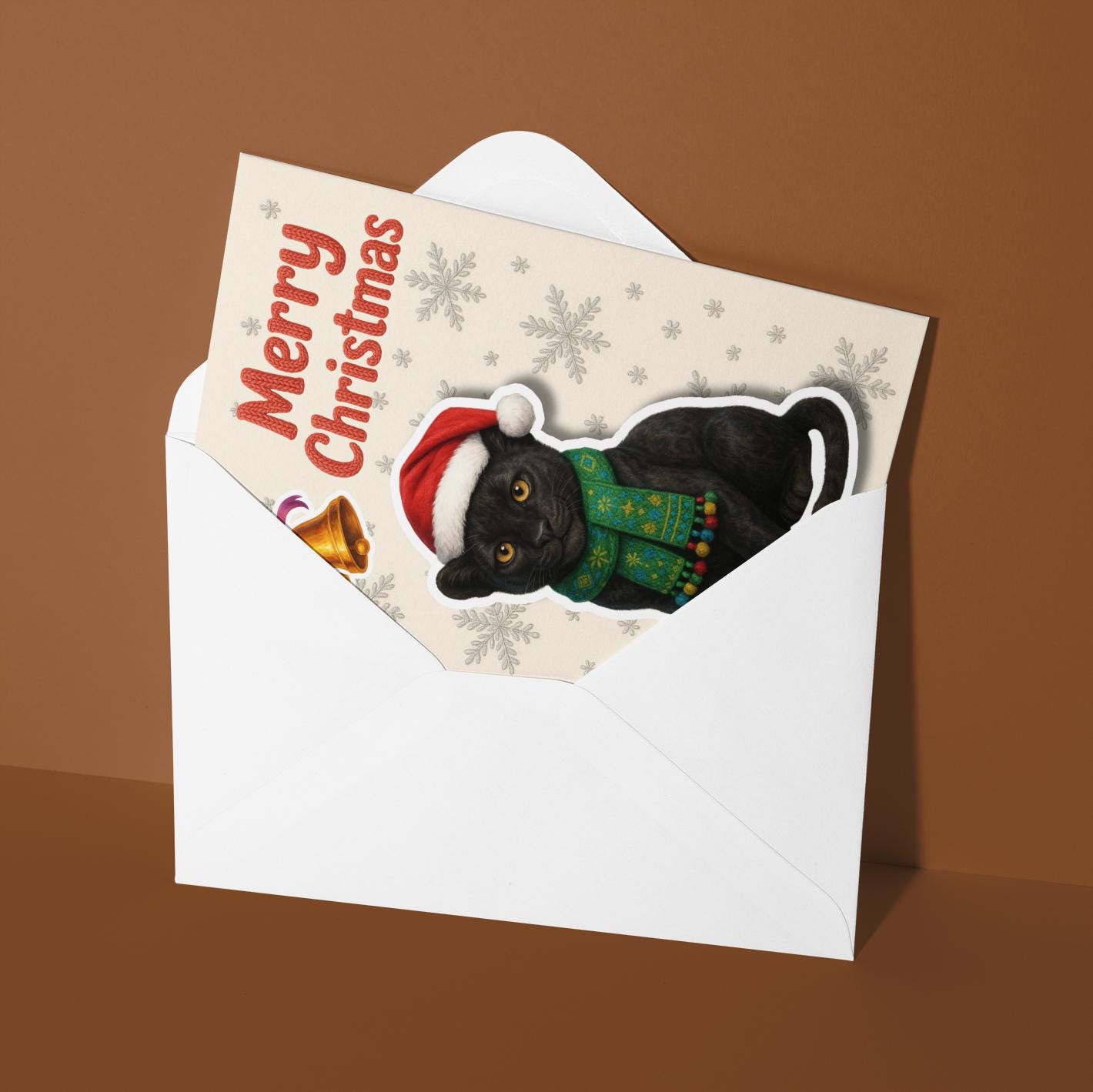 BLANK INTERIOR FOR A PERSONAL TOUCH: Part of the Pop Pets Collection – Fluffy Christmas Crew Collection - Festive Panther Cub with a Gift - Merry Christmas! - card and other whimsical designs feature a blank interior, giving you ample space to write (front or inside) a personal message from the heart. Perfect for any occasion, each card comes with a matching white envelope, making it easy to send your unique sentiments to loved ones.