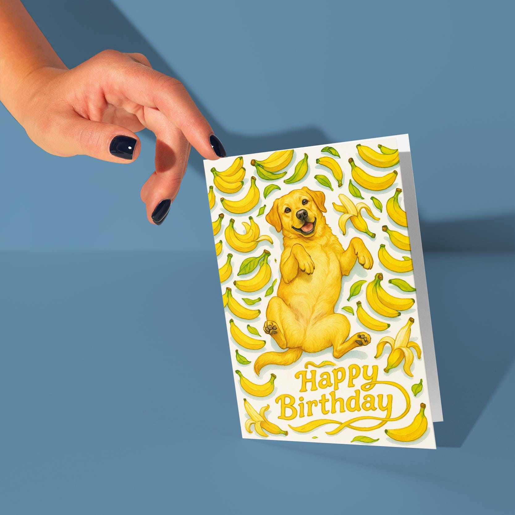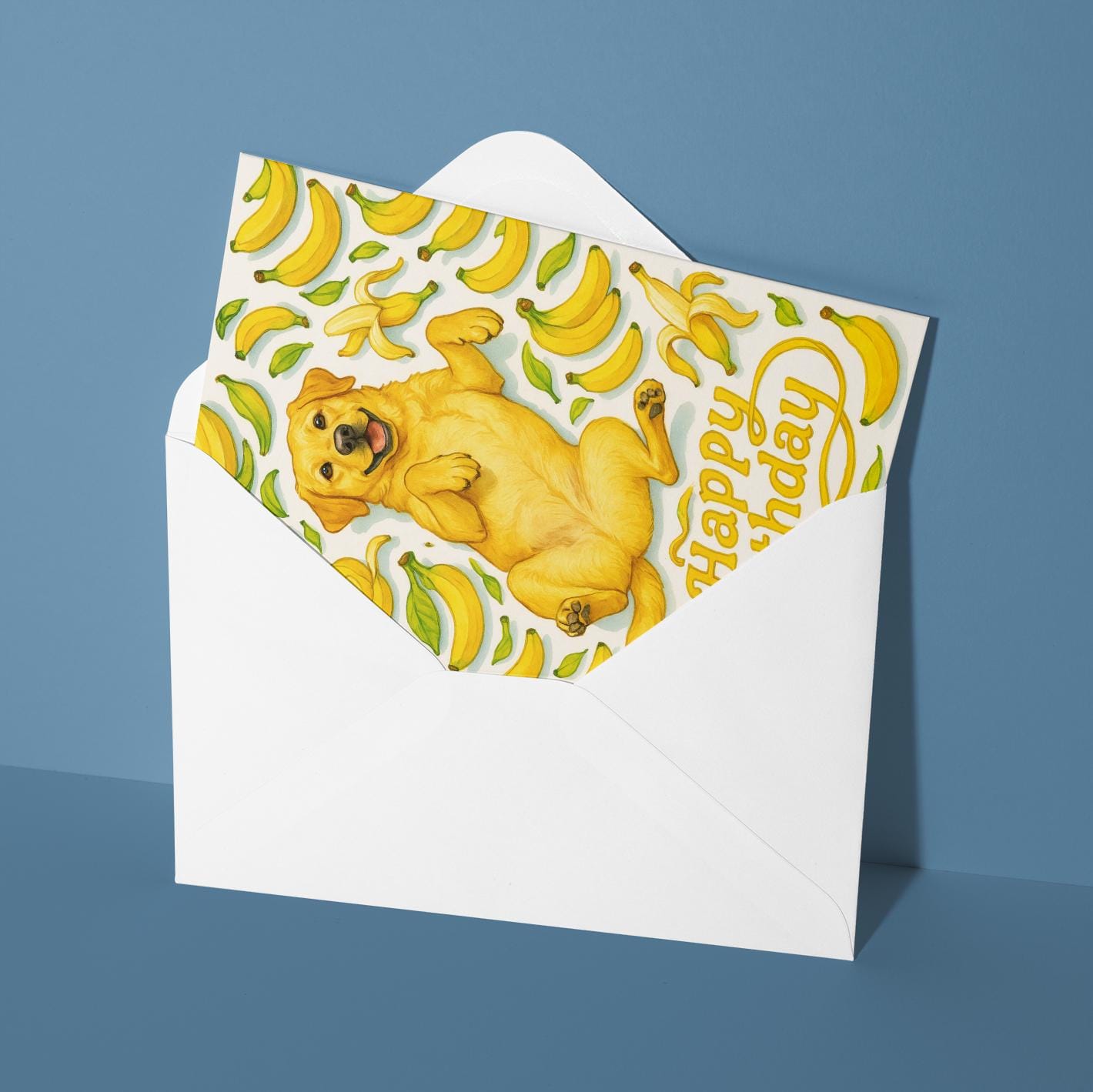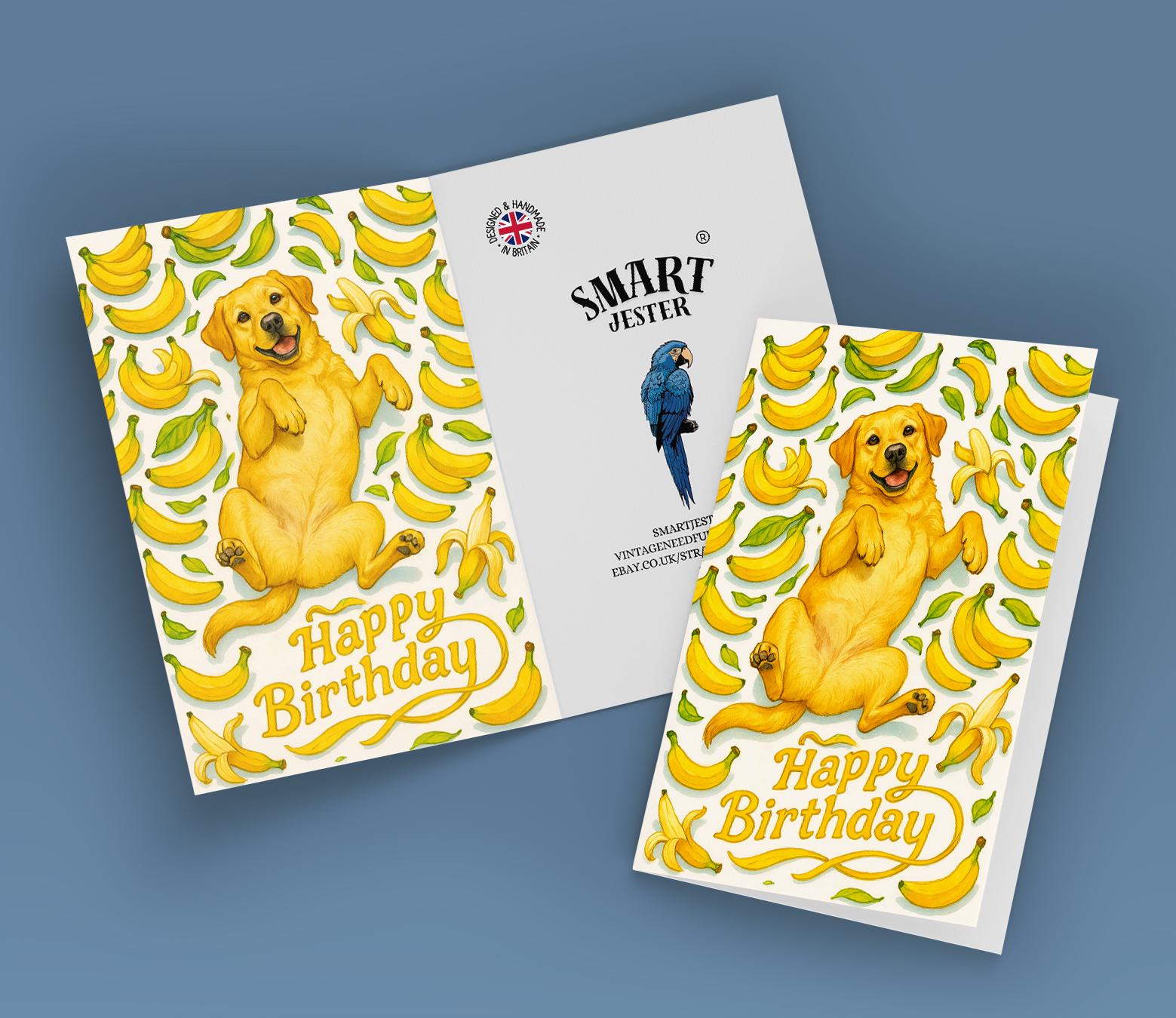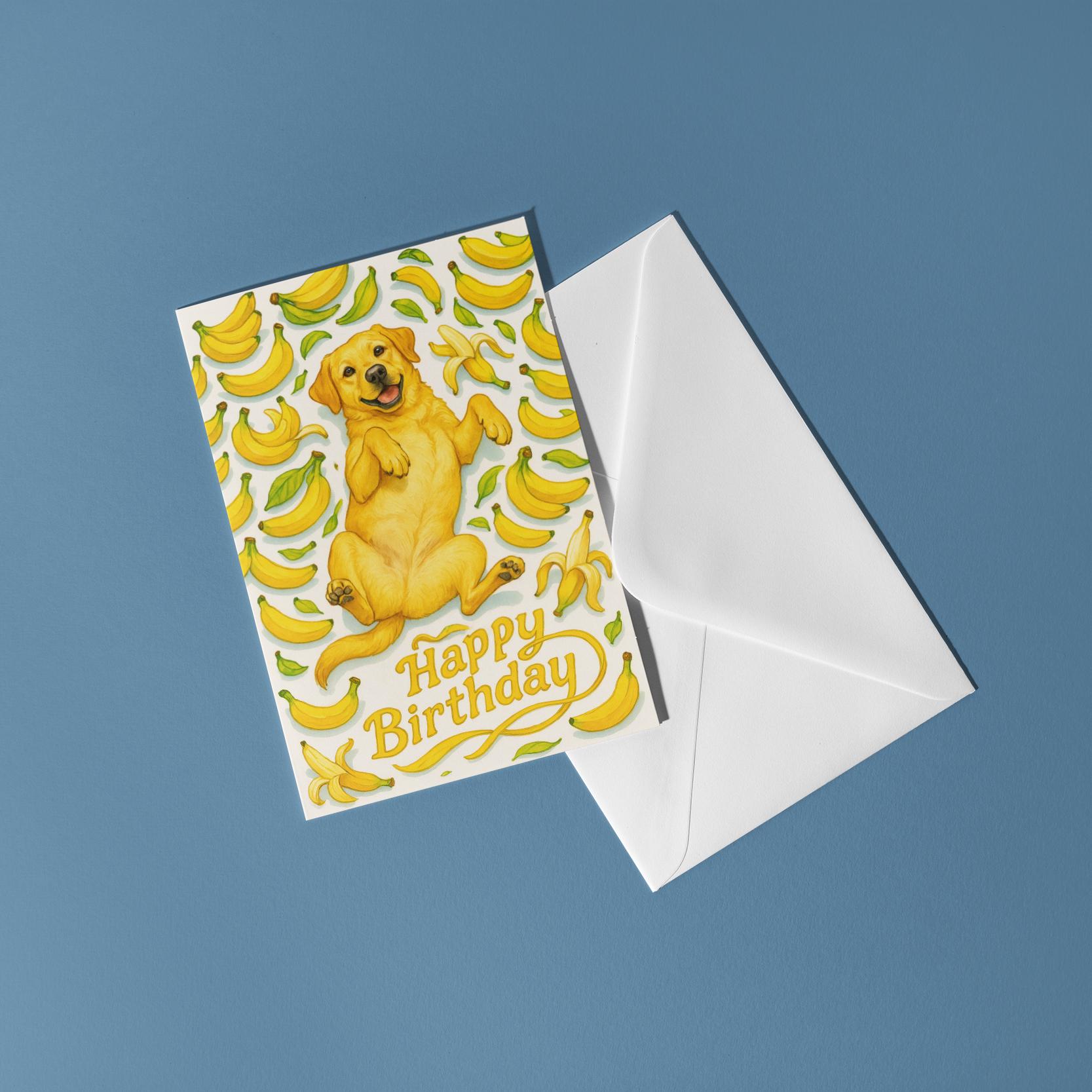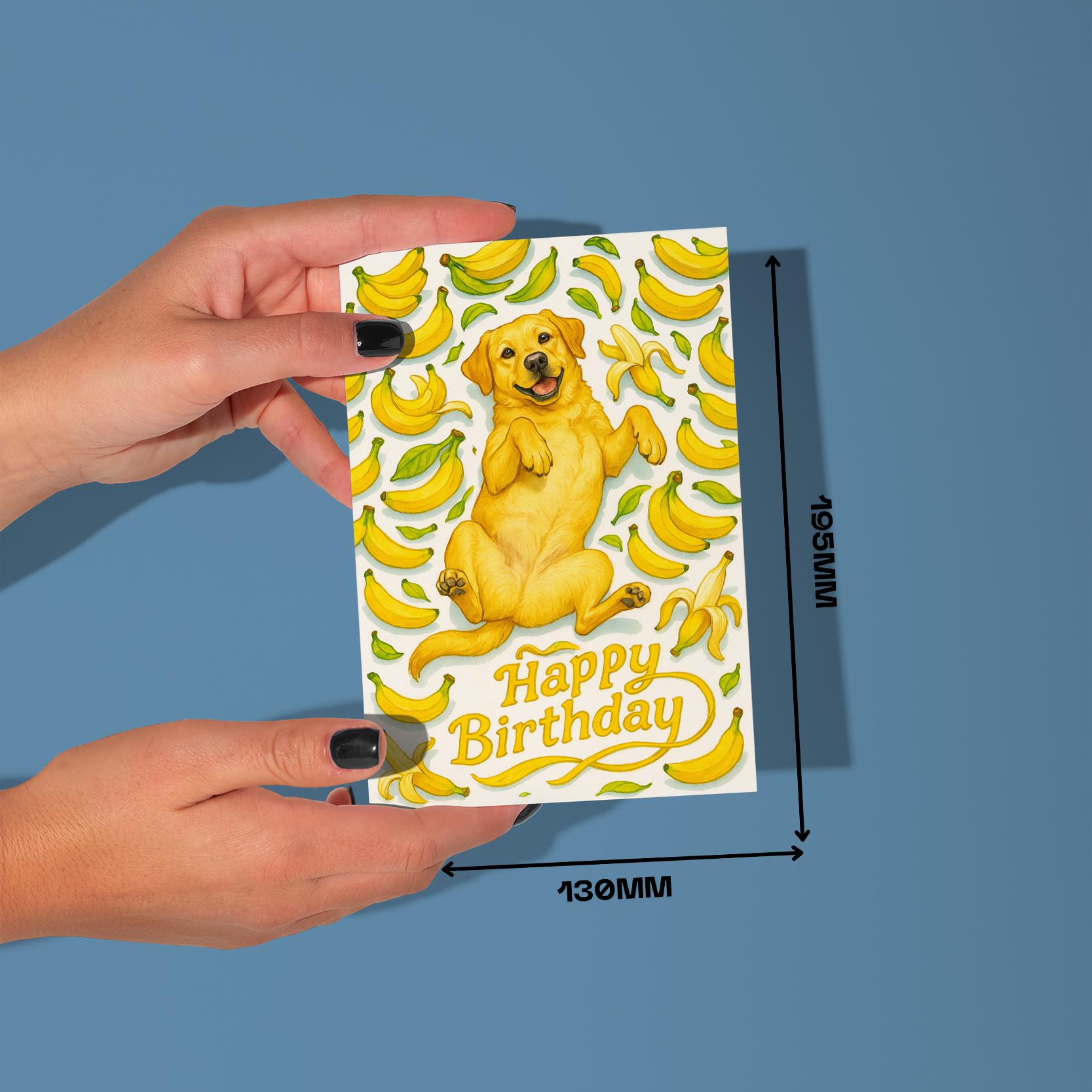 BLANK INTERIOR FOR A PERSONAL TOUCH: Our Fruity Friends Collection – Joyful Banana Labrador Dog - Happy Birthday! card and other whimsical designs feature a blank interior, giving you ample space to write a personal message from the heart. Perfect for any occasion, each card comes with a matching white envelope, making it easy to send your unique sentiments to loved ones.