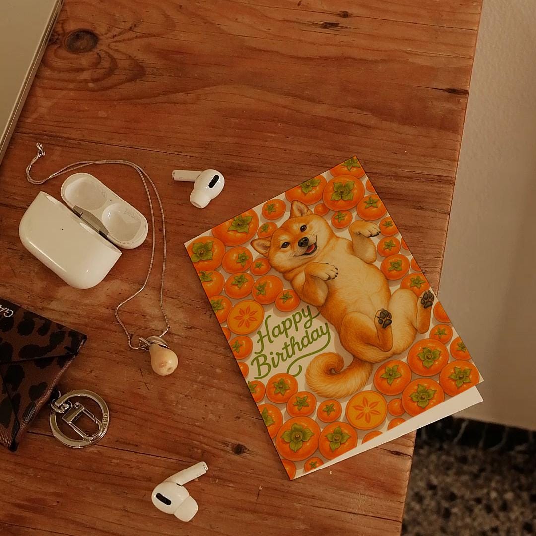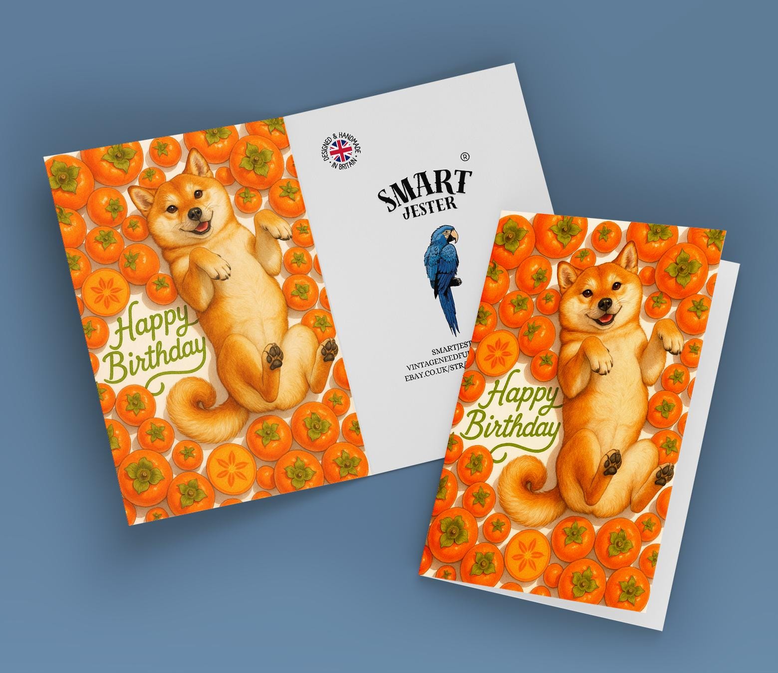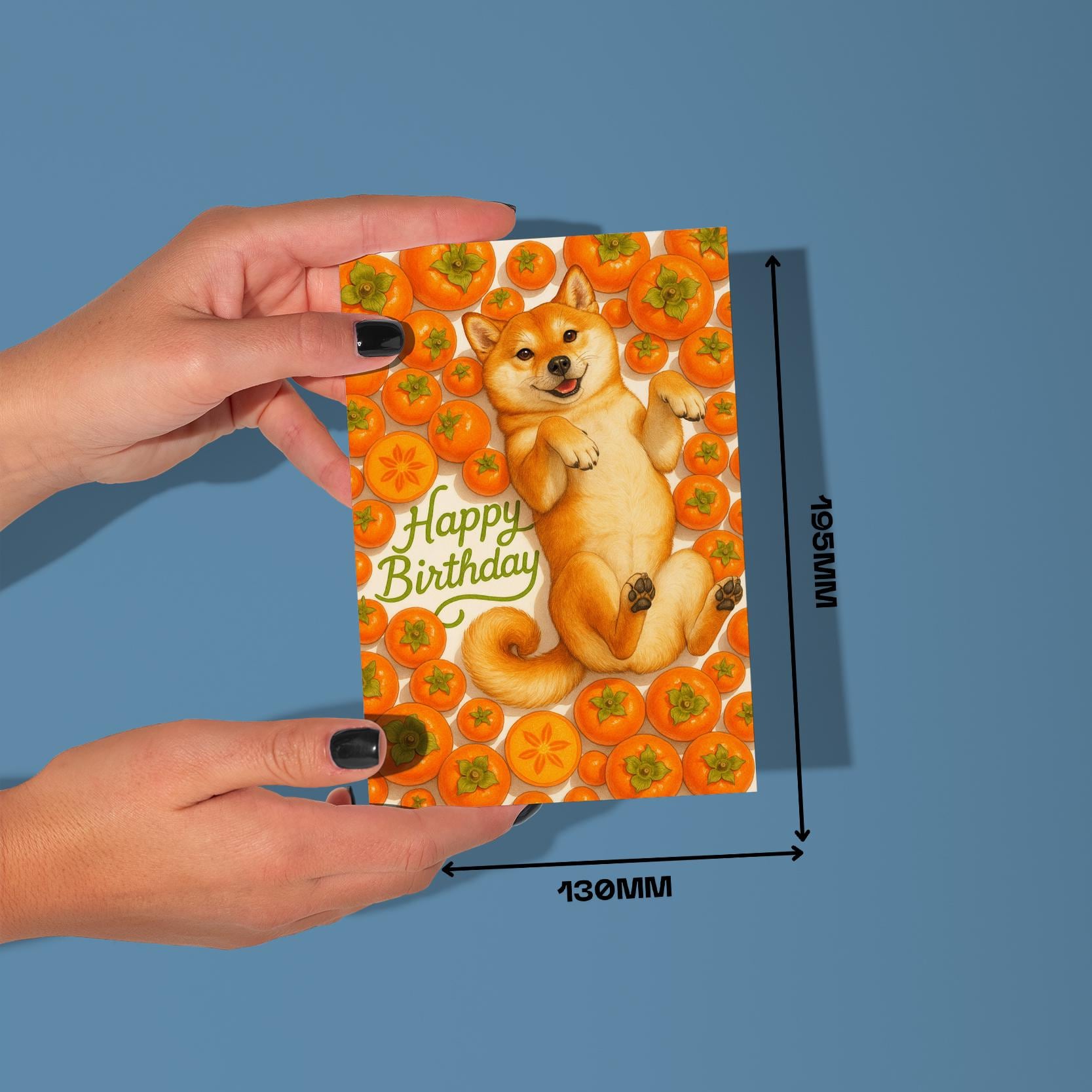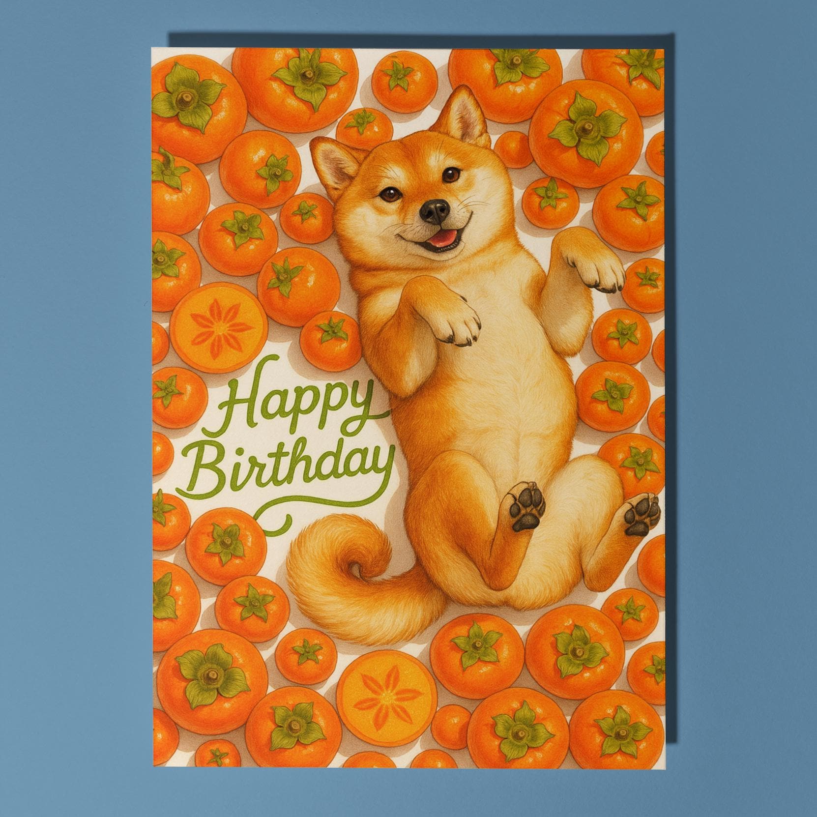 BLANK INTERIOR FOR A PERSONAL TOUCH: Our Fruity Friends Collection – Sweet Persimmon Shiba Inu Dog - Happy Birthday! card and other whimsical designs feature a blank interior, giving you ample space to write a personal message from the heart. Perfect for any occasion, each card comes with a matching white envelope, making it easy to send your unique sentiments to loved ones.