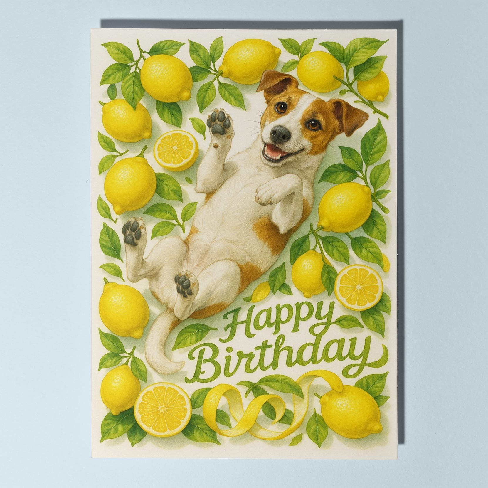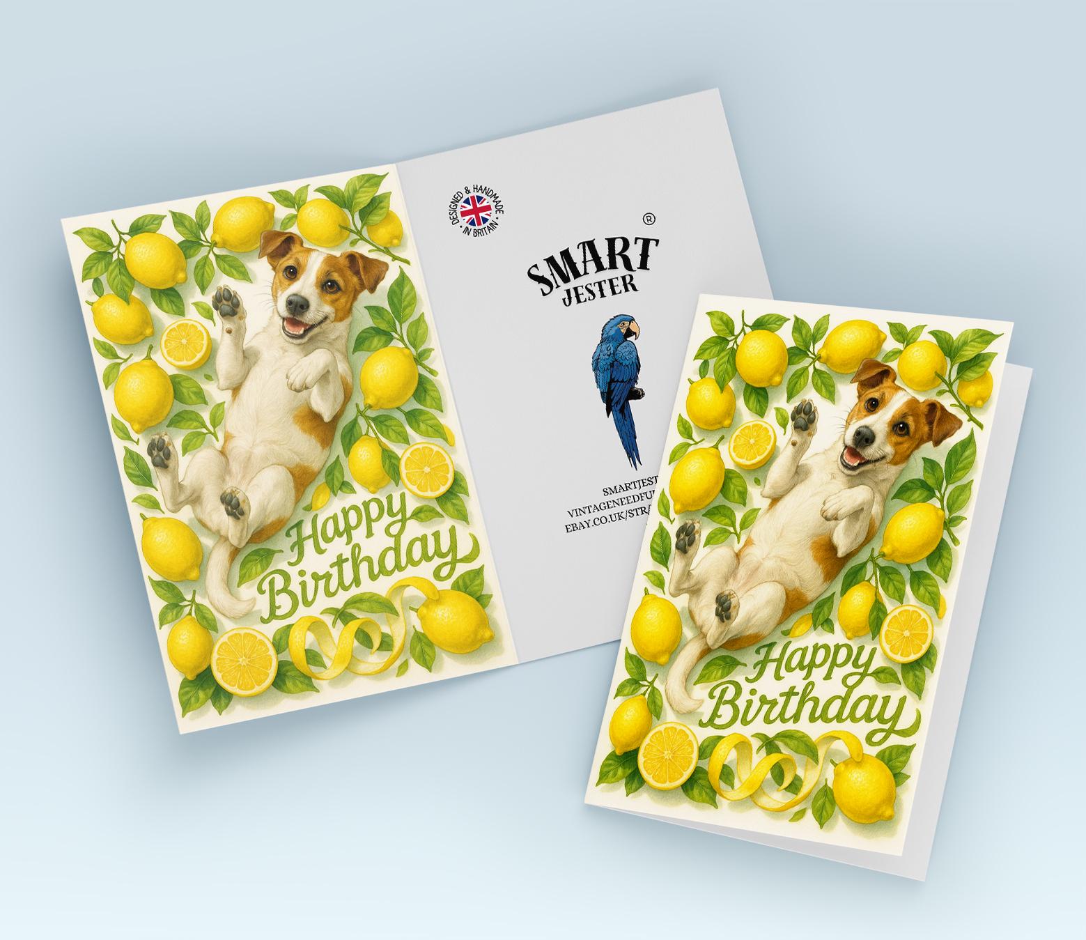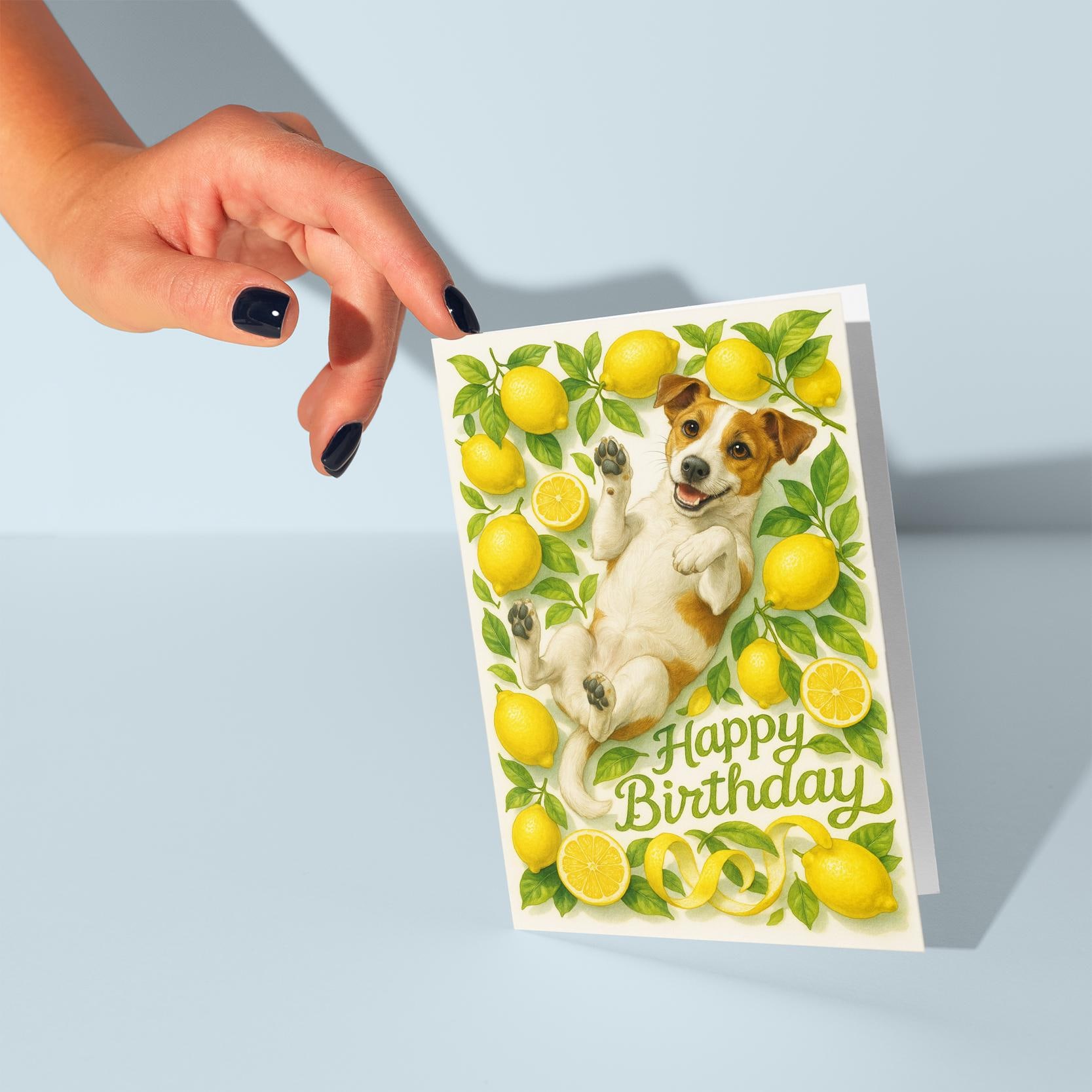BLANK INTERIOR FOR A PERSONAL TOUCH: Our Fruity Friends Collection – Sunny Lemon Jack Russell Terrier Dog - Happy Birthday! card and other whimsical designs feature a blank interior, giving you ample space to write a personal message from the heart. Perfect for any occasion, each card comes with a matching white envelope, making it easy to send your unique sentiments to loved ones.