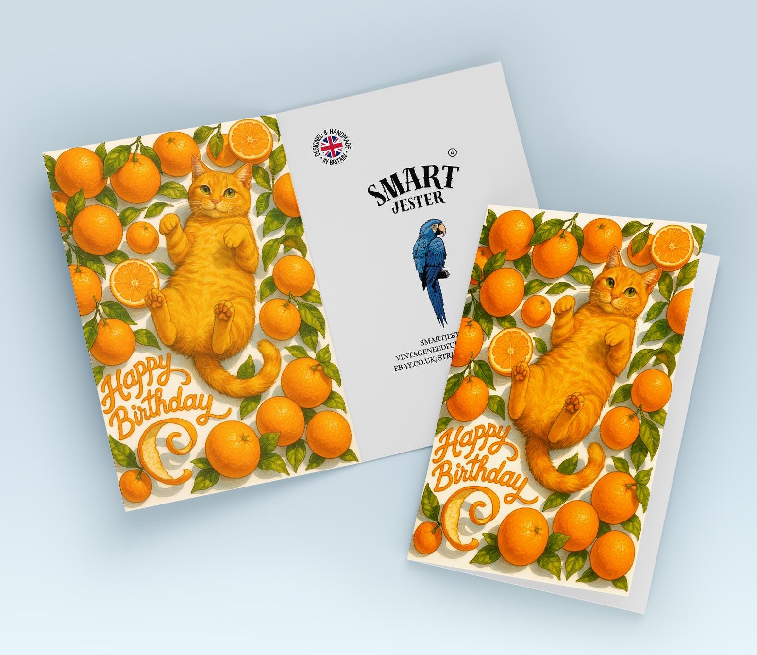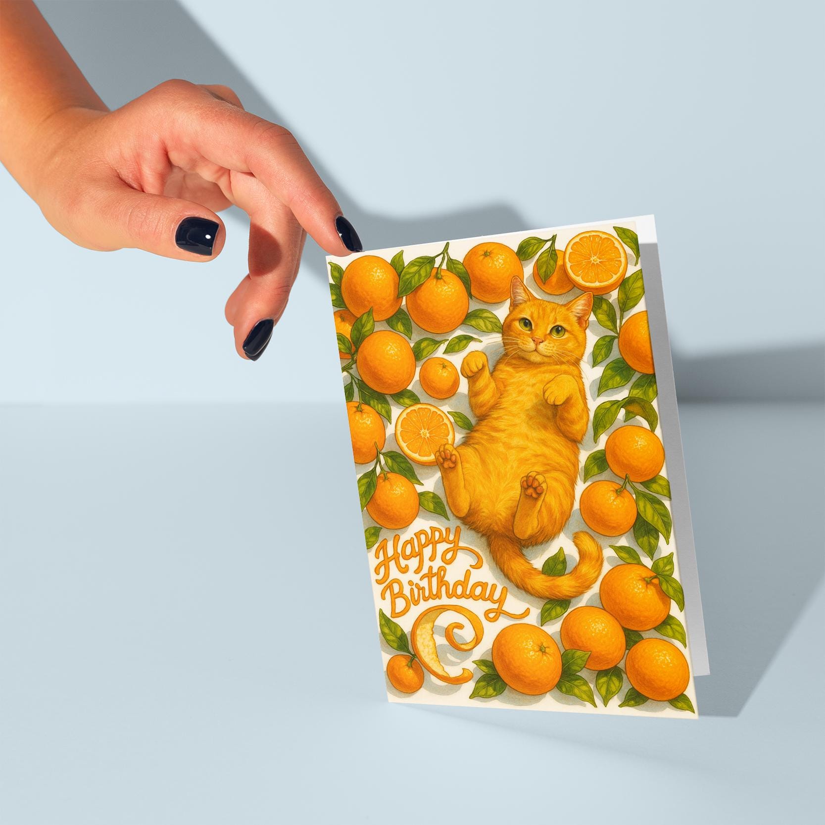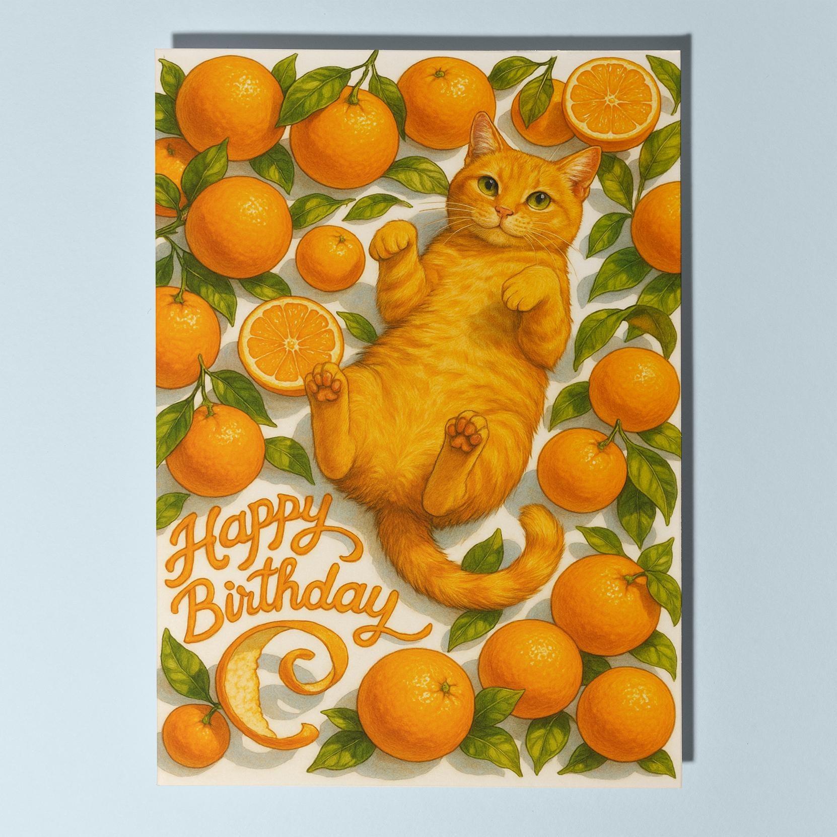 BLANK INTERIOR FOR A PERSONAL TOUCH: Our Fruity Friends Collection – Sunny Orange Ginger Cat - Happy Birthday! card and other whimsical designs feature a blank interior, giving you ample space to write a personal message from the heart. Perfect for any occasion, each card comes with a matching white envelope, making it easy to send your unique sentiments to loved ones.