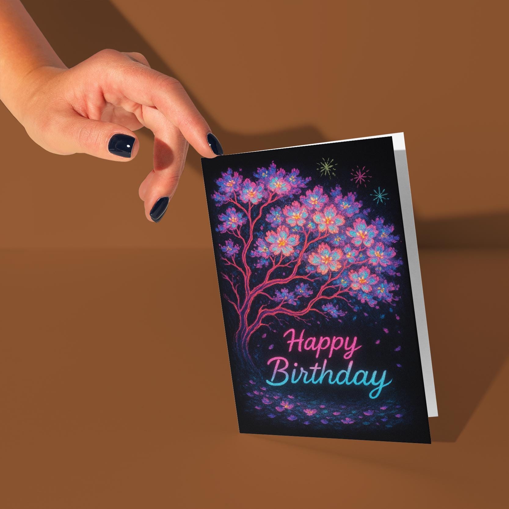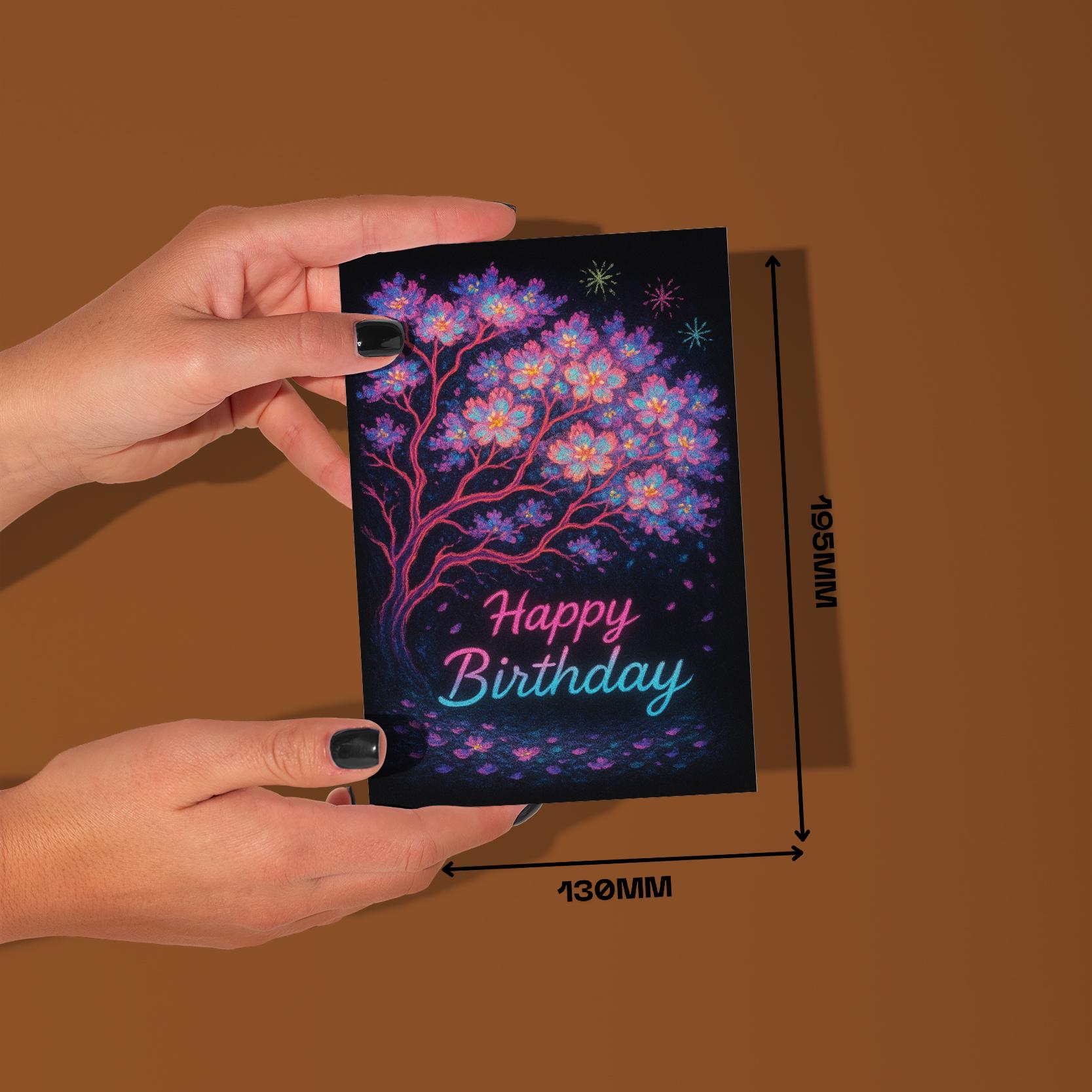 BLANK INTERIOR FOR A PERSONAL TOUCH: Our Neon Blossom – Bright Sakura Tree Art - Happy Birthday Card and other whimsical designs feature a blank interior, giving you ample space to write a personal message from the heart. Perfect for any occasion, each card comes with a matching white envelope, making it easy to send your unique sentiments to loved ones