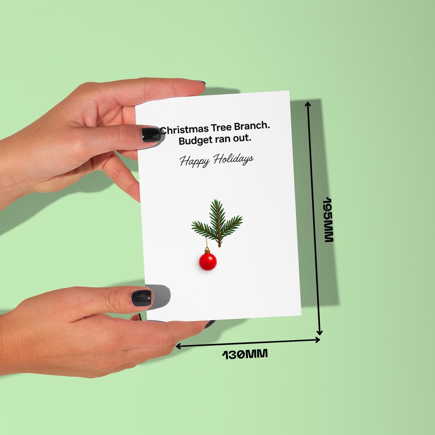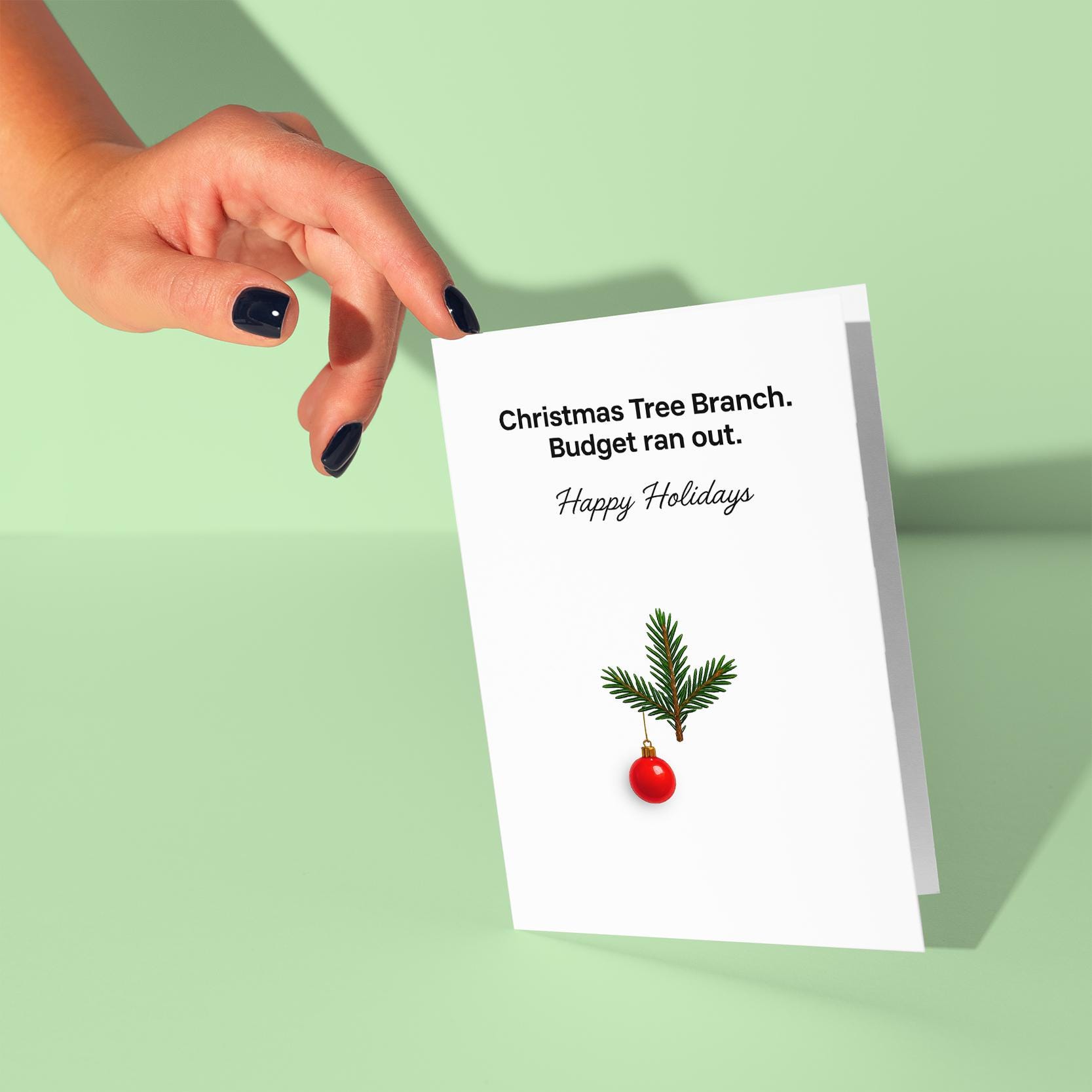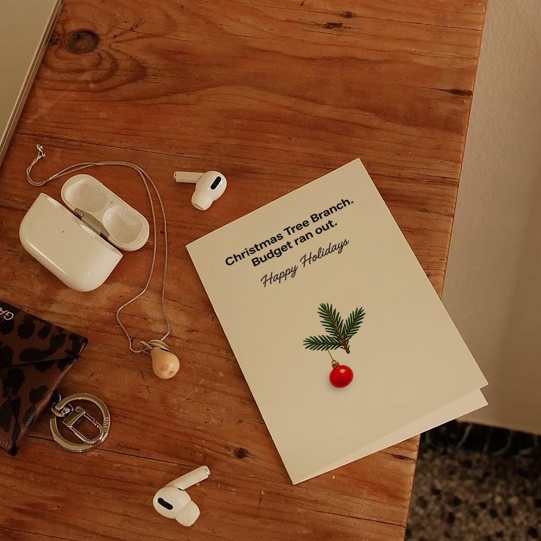BLANK INTERIOR FOR A PERSONAL TOUCH: Budget Holiday Greetings - Christmas tree branch. Budget run out. Happy Holidays - Christmas Card and other whimsical designs feature a blank interior, giving you ample space to write a personal message from the heart. Perfect for any occasion, each card comes with a matching white envelope, making it easy to send your unique sentiments to loved ones.