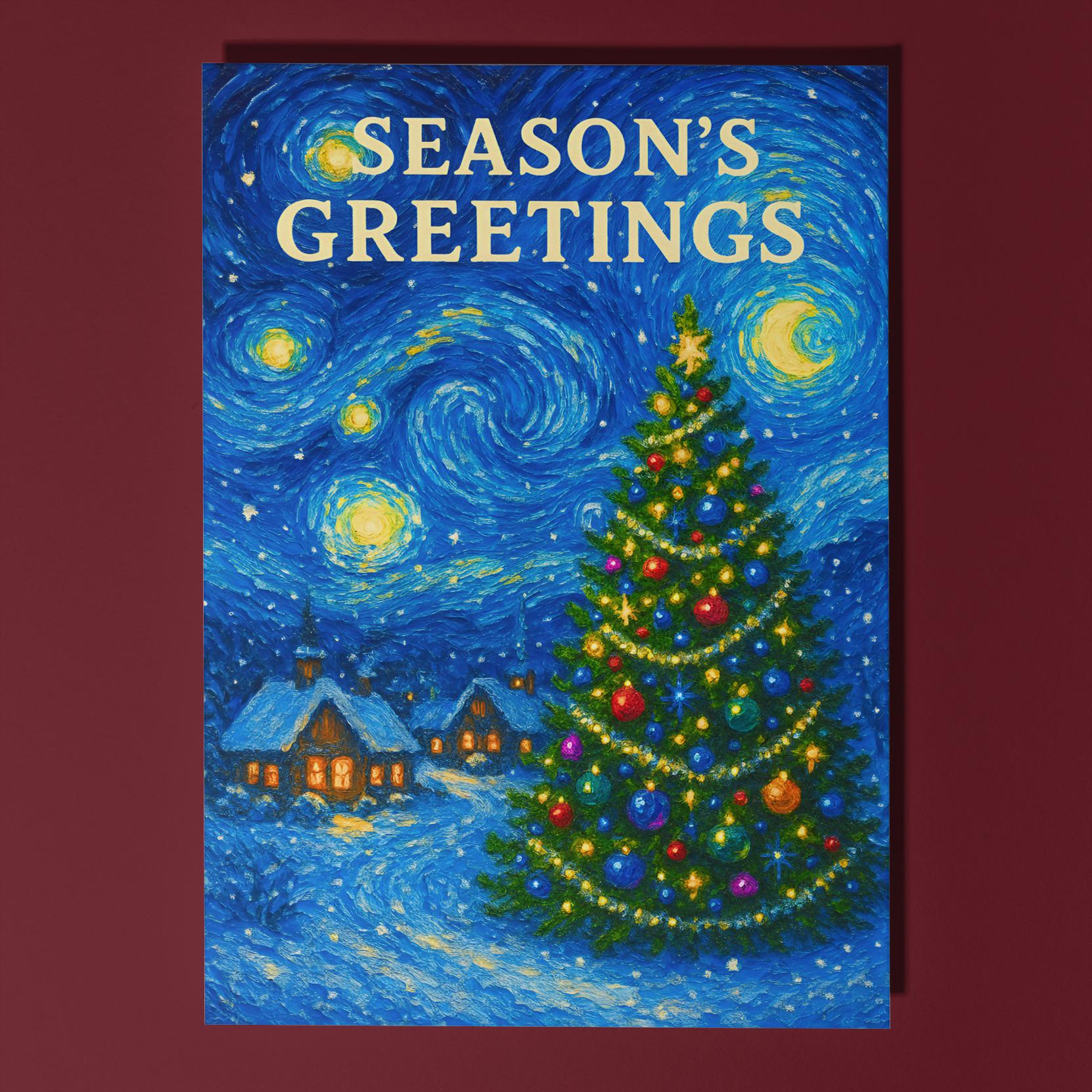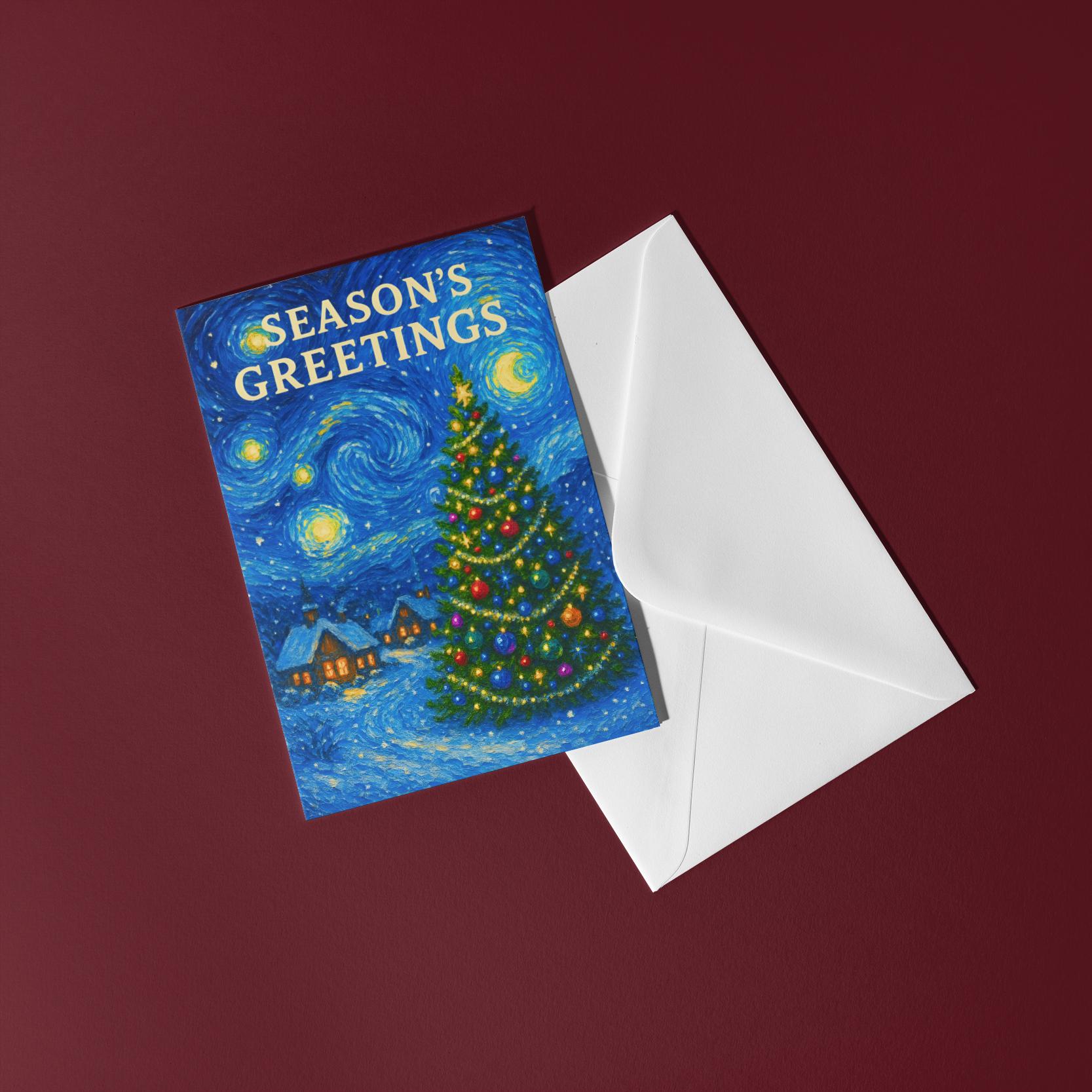BLANK INTERIOR FOR A PERSONAL TOUCH: Festive Starry Night - Van Gogh - Season's Greetings Card and other whimsical designs feature a blank interior, giving you ample space to write a personal message from the heart. Perfect for any occasion, each card comes with a matching white envelope, making it easy to send your unique sentiments to loved ones.