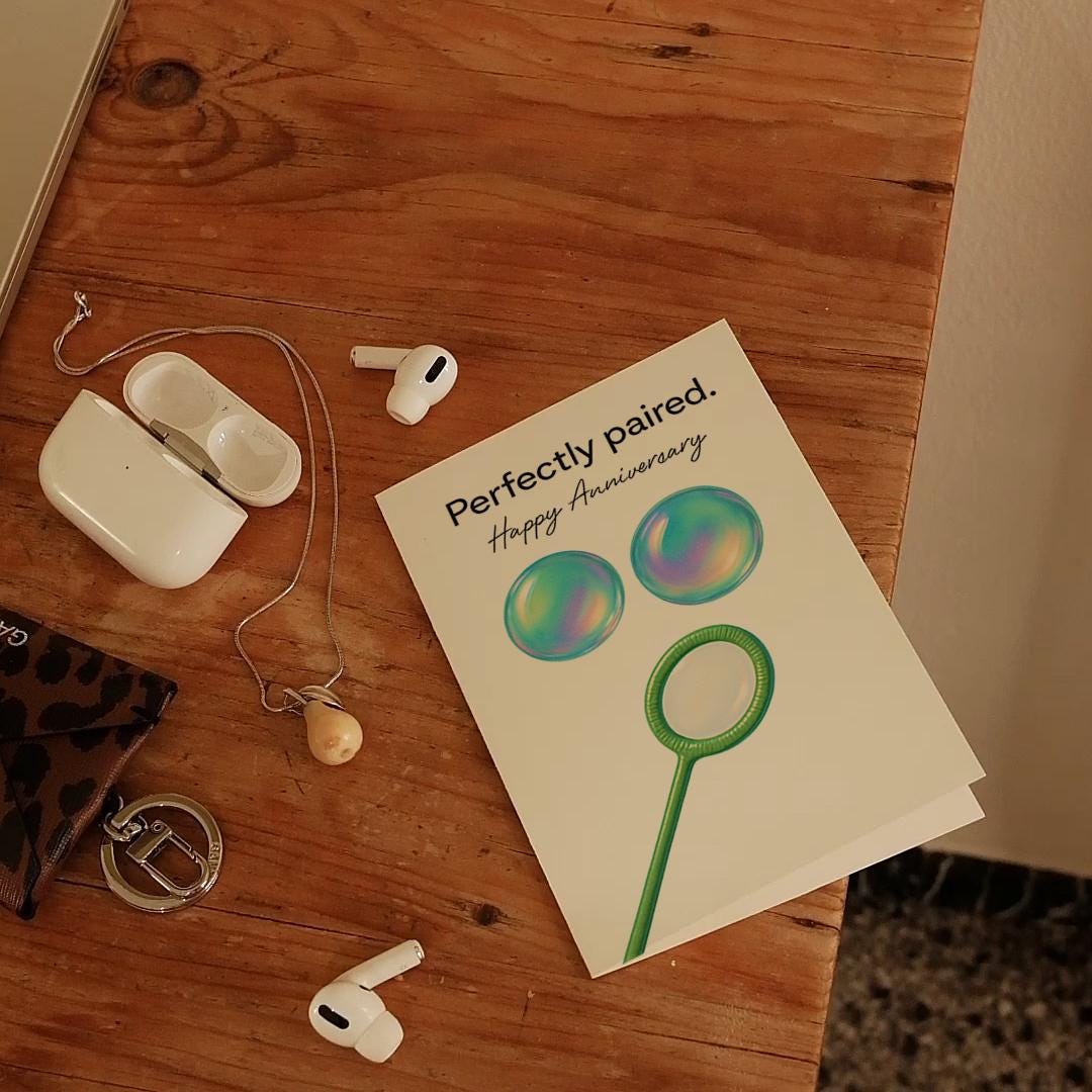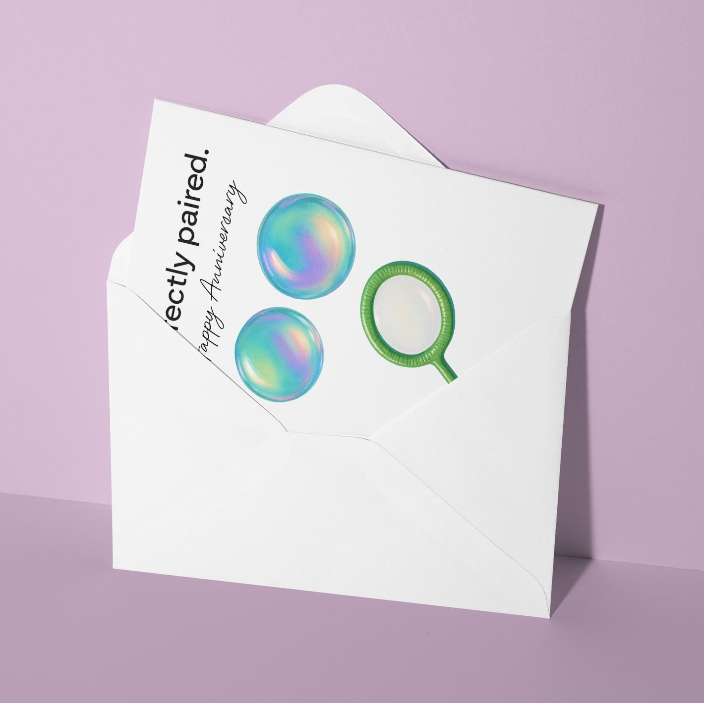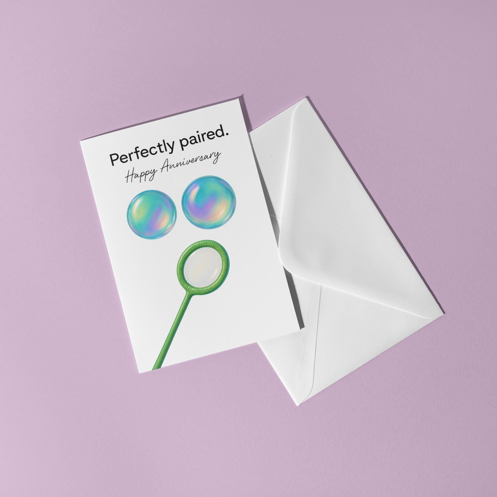 BLANK INTERIOR FOR A PERSONAL TOUCH: Our The Bubble Couple Perfectly Paired - Happy Anniversary Card and other whimsical designs feature a blank interior, giving you ample space to write a personal message from the heart. Perfect for any occasion, each card comes with a matching white envelope, making it easy to send your unique sentiments to loved ones
