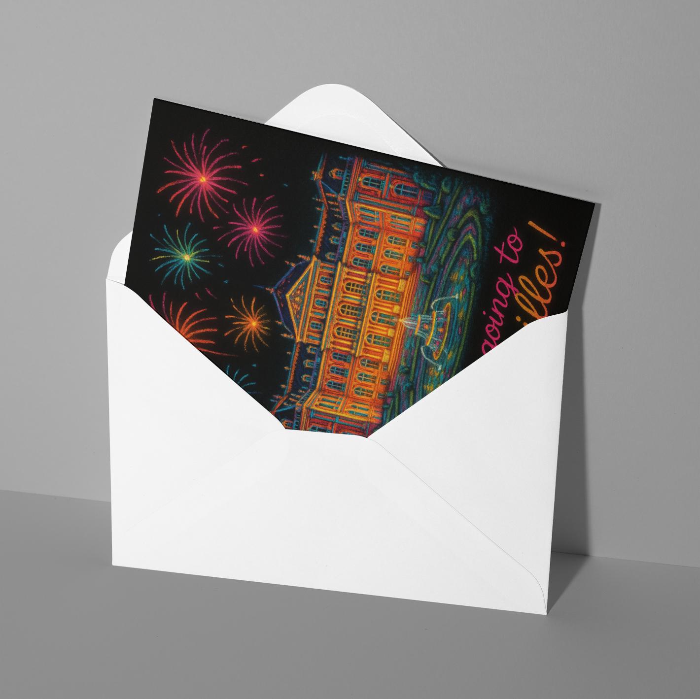 BLANK INTERIOR FOR A PERSONAL TOUCH: Our Cities Collection - Palace of Versailles - France - We're going to Versailles! card and other whimsical designs feature a blank interior, giving you ample space to write a personal message from the heart. Perfect for any occasion, each card comes with a matching white envelope, making it easy to send your unique sentiments to loved ones.