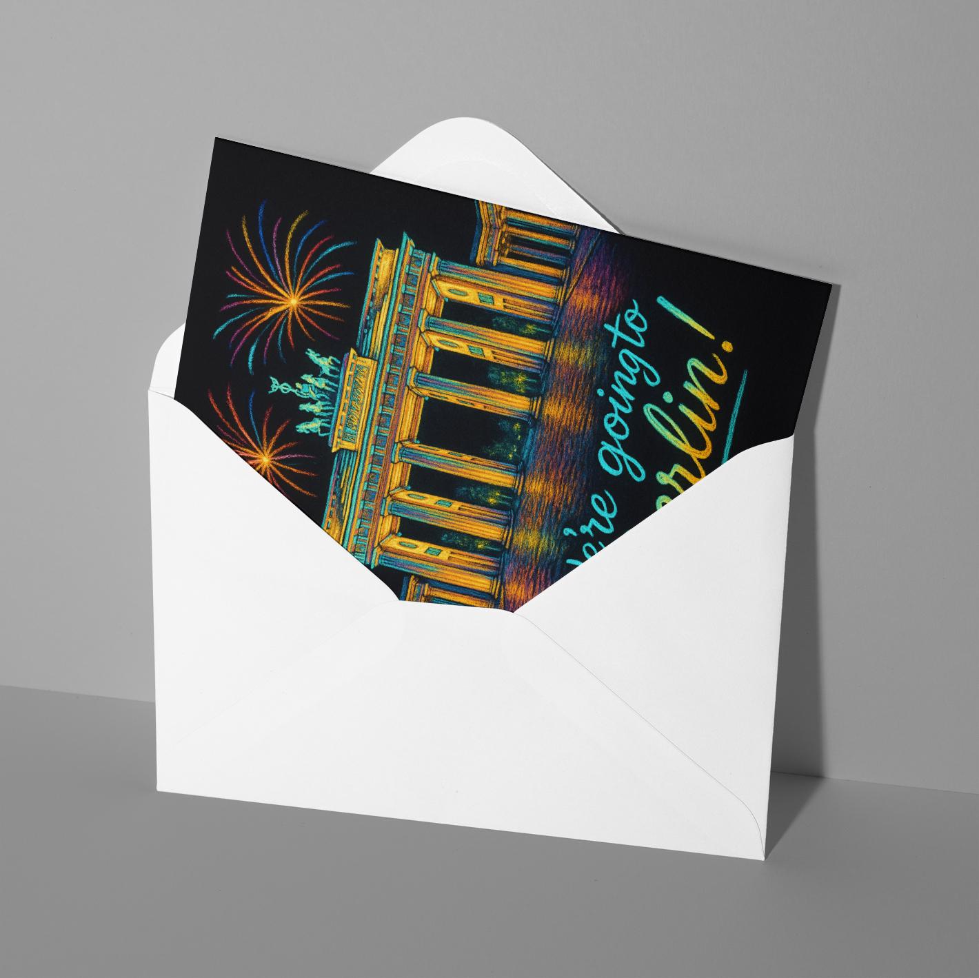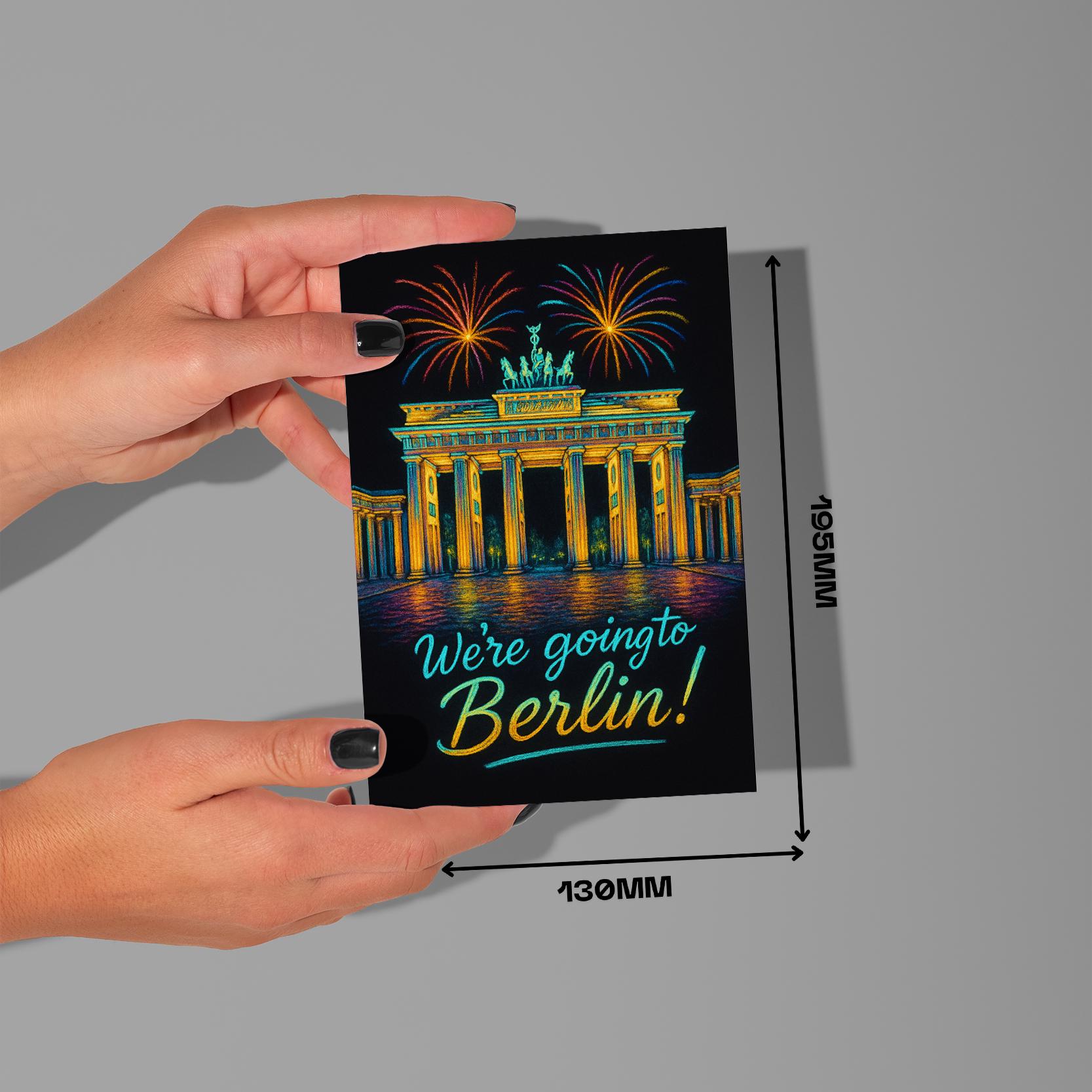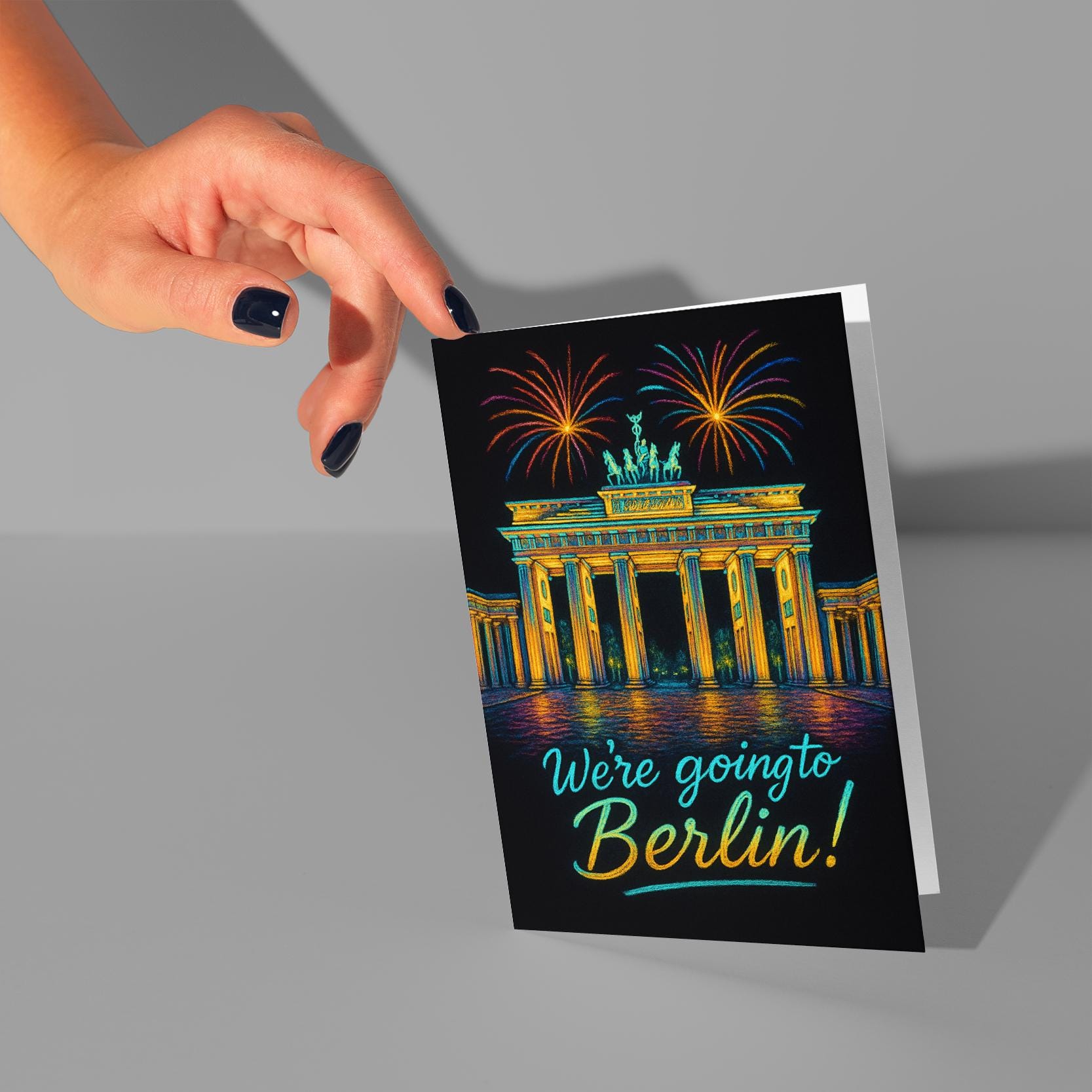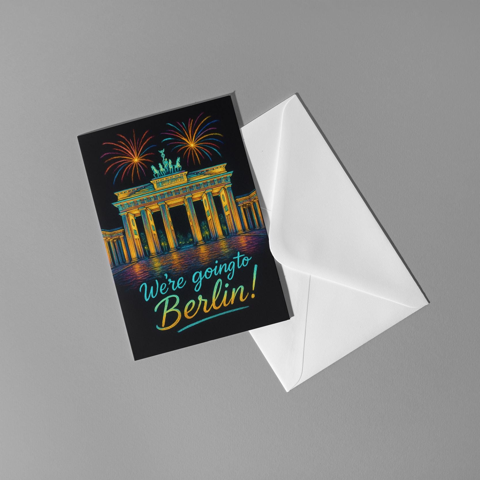 BLANK INTERIOR FOR A PERSONAL TOUCH: Our Cities Collection - Brandenburg Gate - We're going to Berlin Germany! card and other whimsical designs feature a blank interior, giving you ample space to write a personal message from the heart. Perfect for any occasion, each card comes with a matching white envelope, making it easy to send your unique sentiments to loved ones.