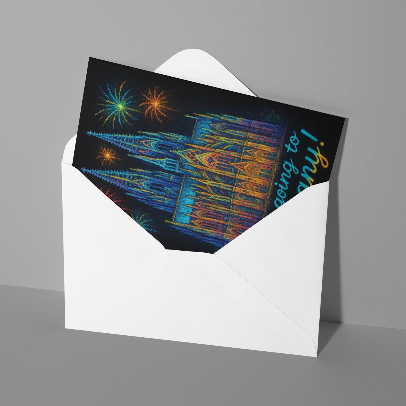 BLANK INTERIOR FOR A PERSONAL TOUCH: Our Cities Collection - Cologne Cathedral - We're going to Germany! card and other whimsical designs feature a blank interior, giving you ample space to write a personal message from the heart. Perfect for any occasion, each card comes with a matching white envelope, making it easy to send your unique sentiments to loved ones.