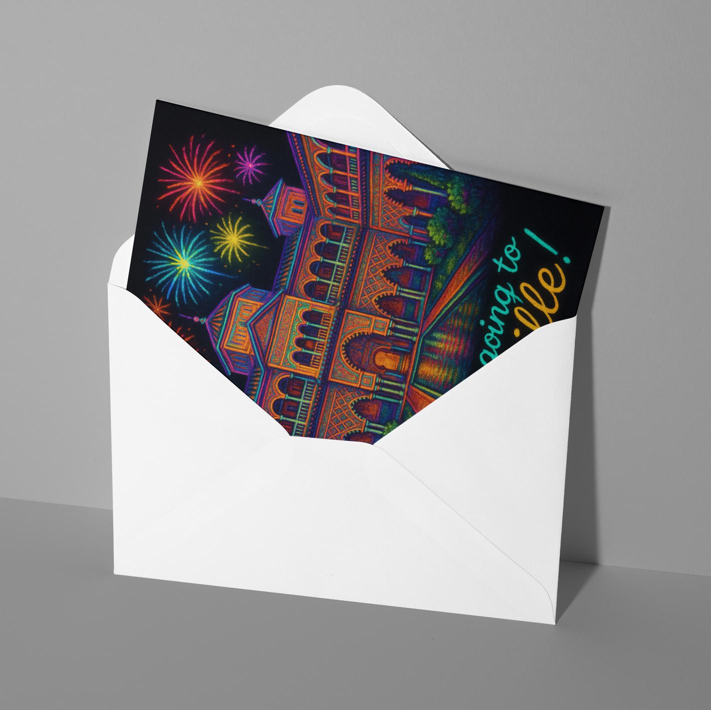 BLANK INTERIOR FOR A PERSONAL TOUCH: Our Cities Collection - Spain Royal Alcázar of Seville - We're going to Seville! card and other whimsical designs feature a blank interior, giving you ample space to write a personal message from the heart. Perfect for any occasion, each card comes with a matching white envelope, making it easy to send your unique sentiments to loved ones.