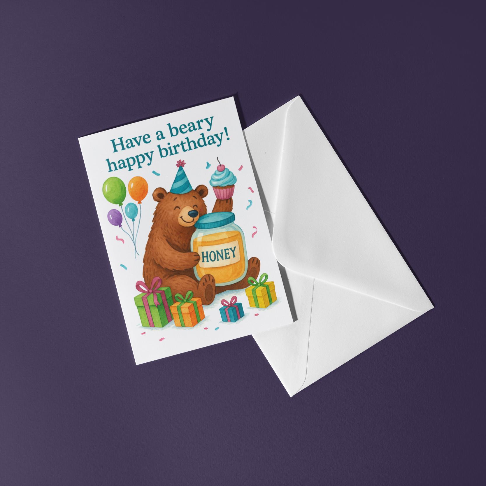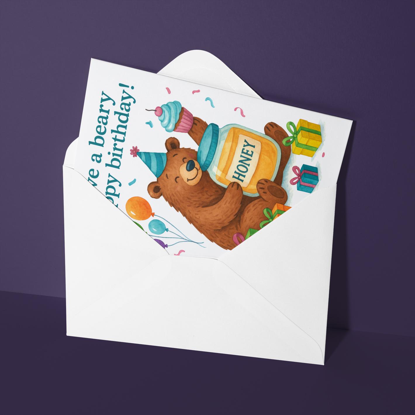 BLANK INTERIOR FOR A PERSONAL TOUCH: Our Honey Bear - Have a beary Happy Birthday! card and other whimsical designs feature a blank interior, giving you ample space to write a personal message from the heart. Perfect for any occasion, each card comes with a matching white envelope, making it easy to send your unique sentiments to loved ones.