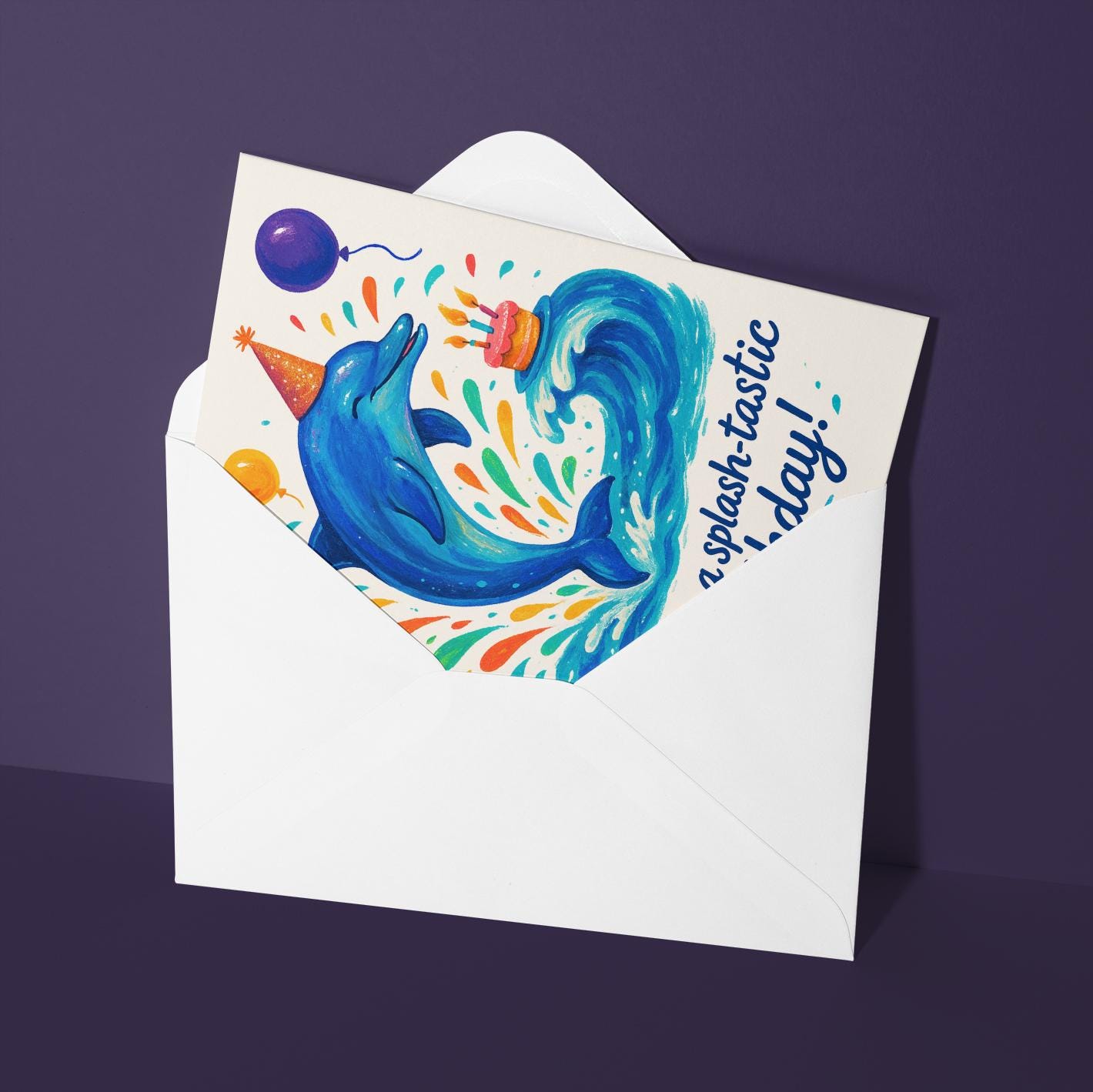 BLANK INTERIOR FOR A PERSONAL TOUCH: Our Happy Dolphin - Have a Splash-tastic Birthday card and other whimsical designs feature a blank interior, giving you ample space to write a personal message from the heart. Perfect for any occasion, each card comes with a matching white envelope, making it easy to send your unique sentiments to loved ones.