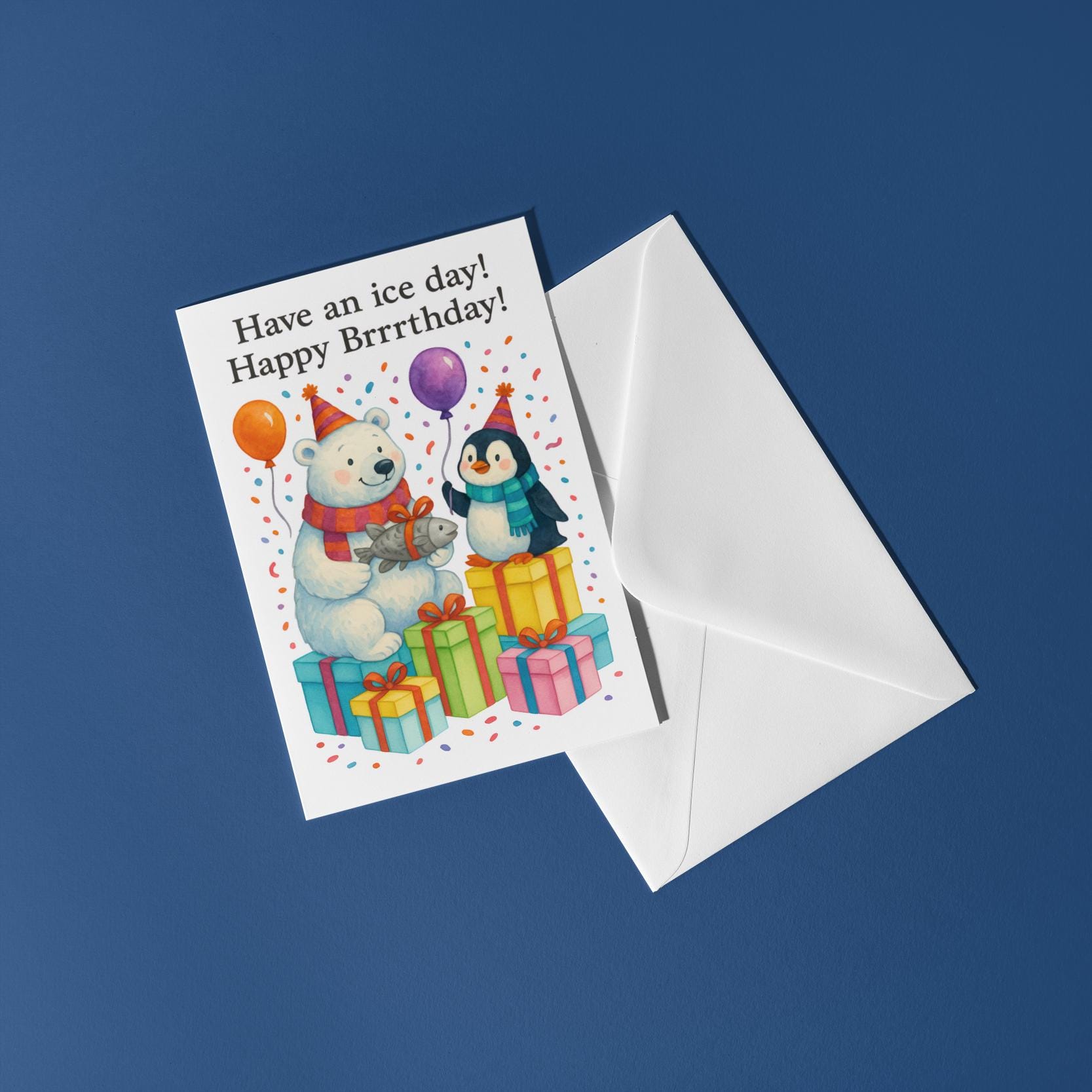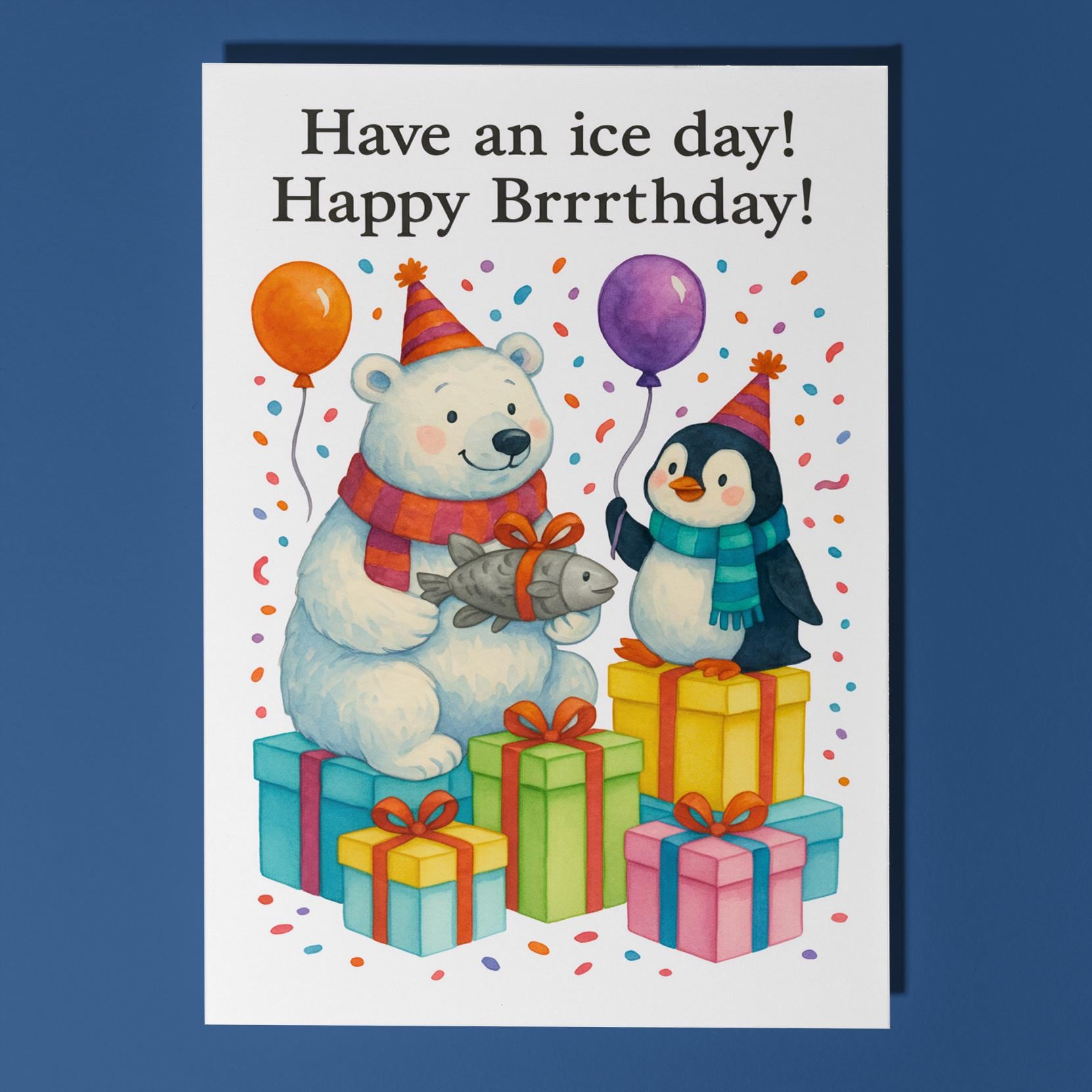 BLANK INTERIOR FOR A PERSONAL TOUCH: Our Polar Bear & Penguin - Have an ice day Happy Brrrthday! Birthday card and other whimsical designs feature a blank interior, giving you ample space to write a personal message from the heart. Perfect for any occasion, each card comes with a matching white envelope, making it easy to send your unique sentiments to loved ones.