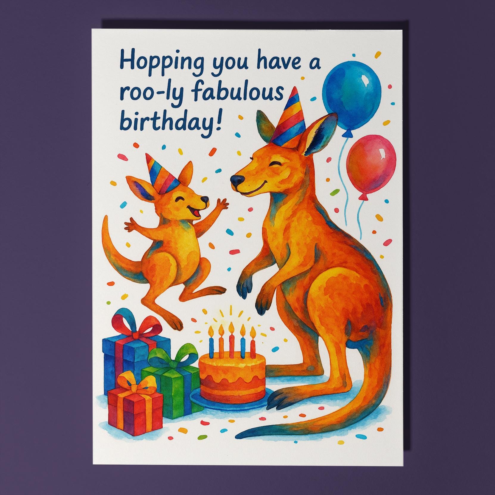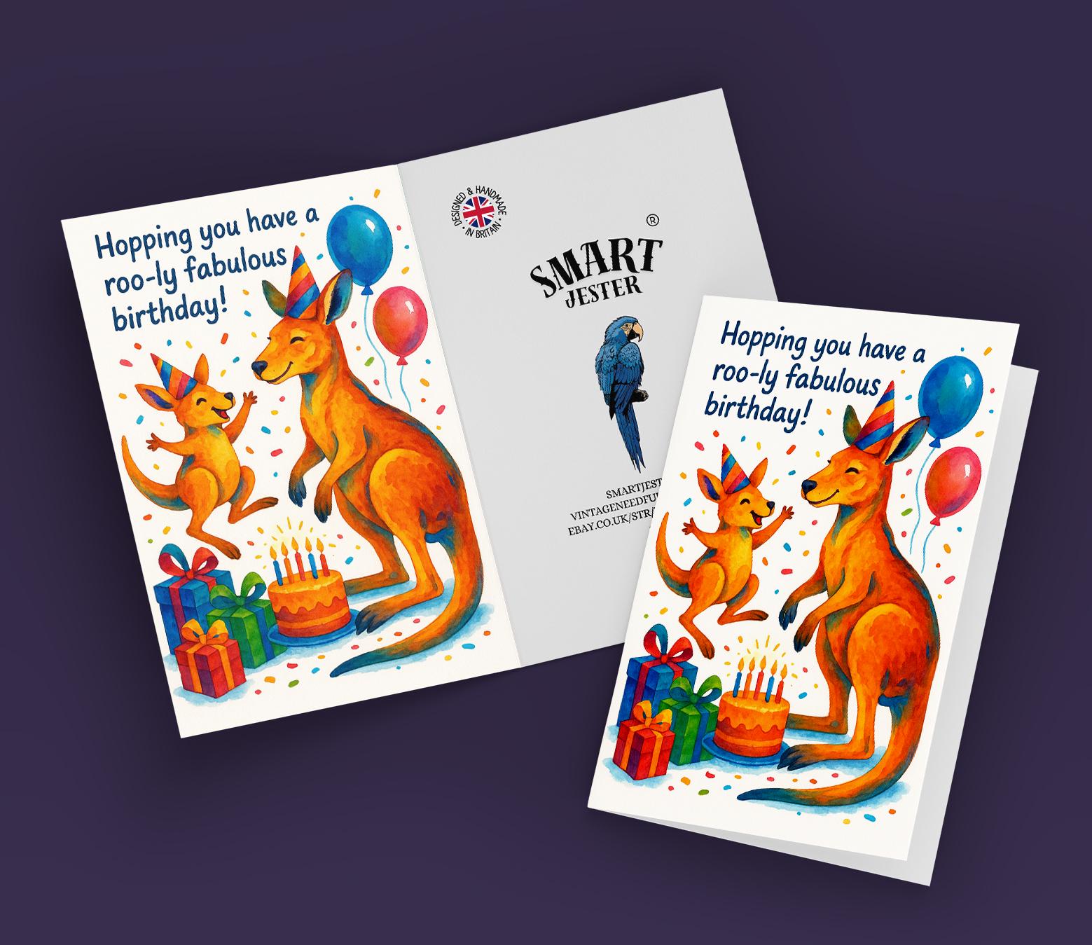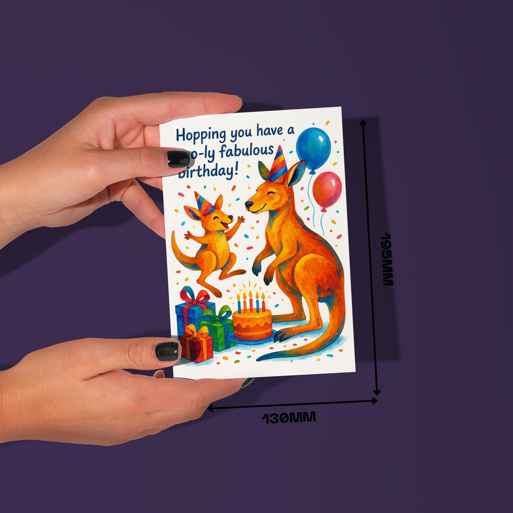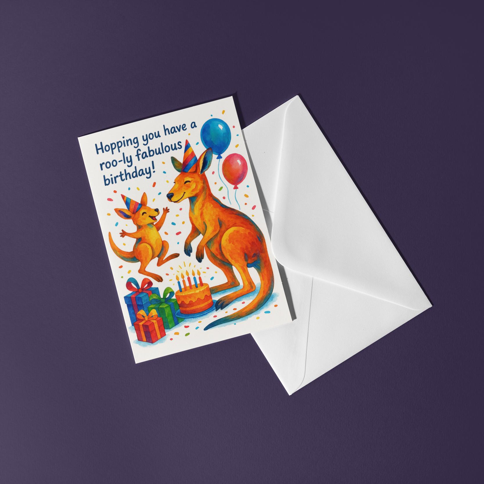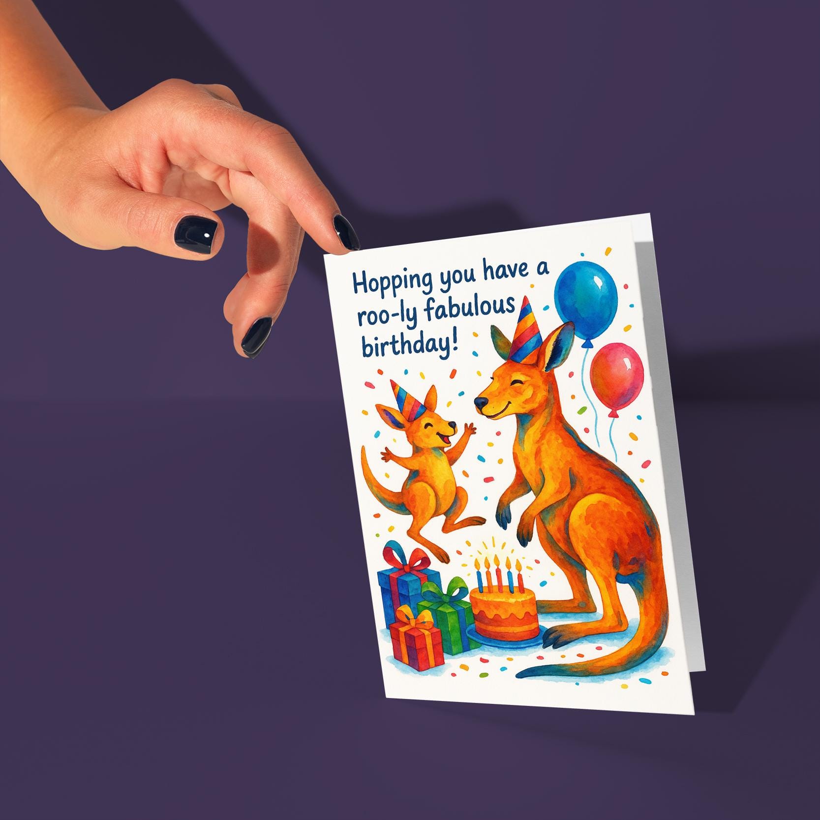 BLANK INTERIOR FOR A PERSONAL TOUCH: Our Jumping Kangaroo Joy - Hopping you have a roo-ly fabulous birthday! Birthday card and other whimsical designs feature a blank interior, giving you ample space to write a personal message from the heart. Perfect for any occasion, each card comes with a matching white envelope, making it easy to send your unique sentiments to loved ones.